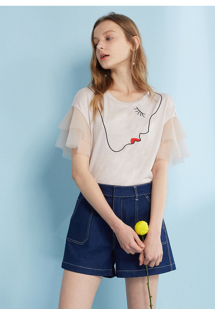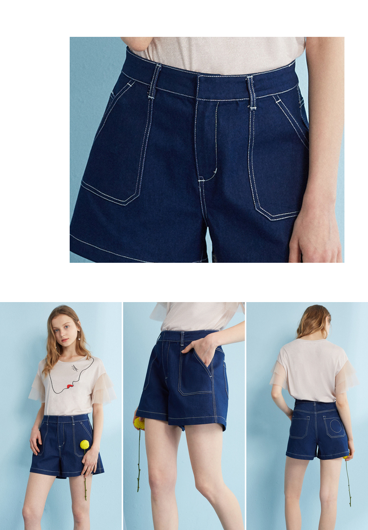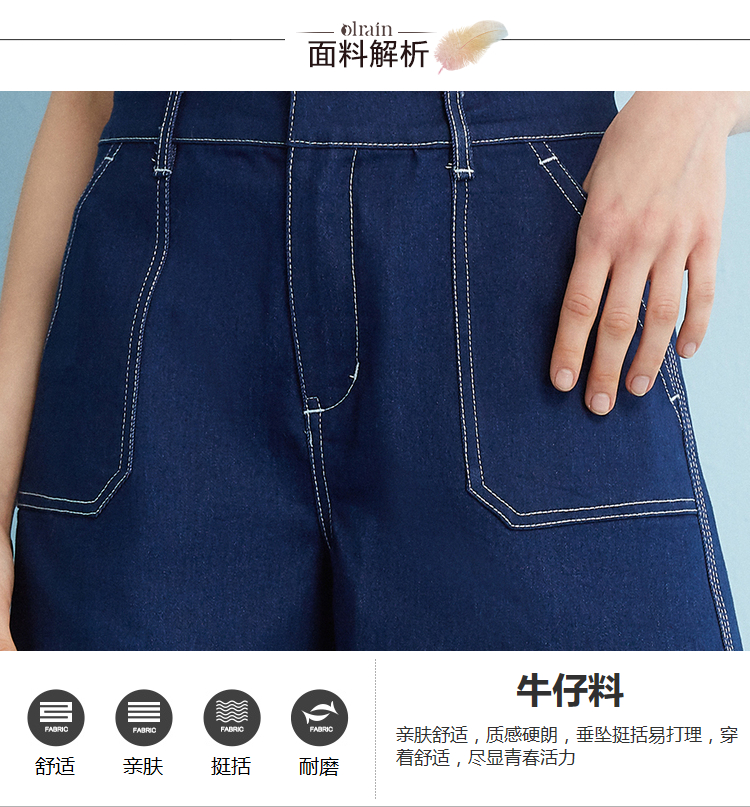 欧芮儿 2018夏装新款韩版显瘦直筒高腰阔腿热裤女牛仔短裤女夏
