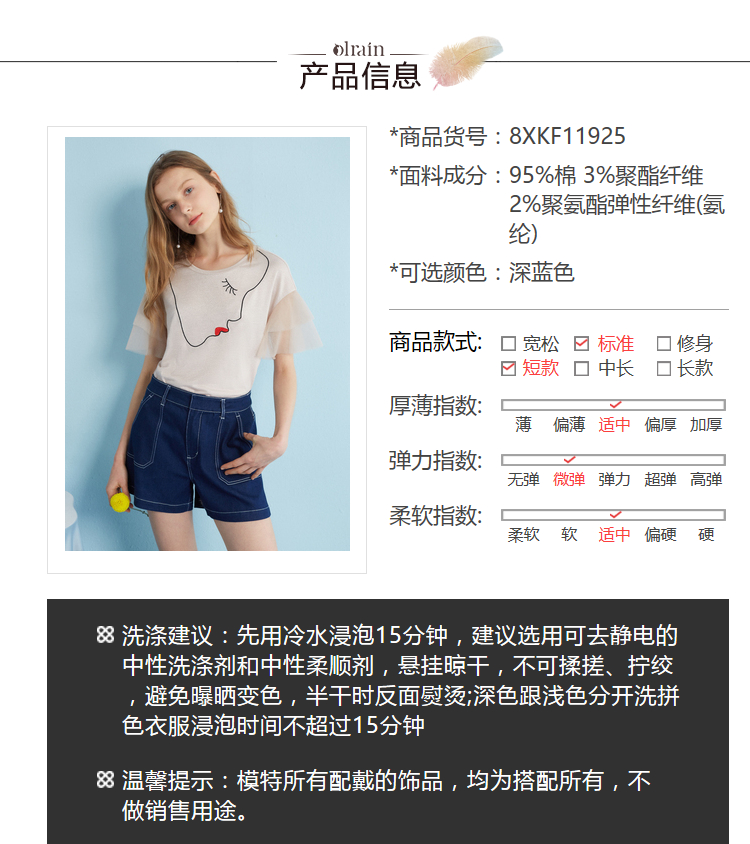 - “精致”是欧芮儿olrain品牌文化的核心,欧芮儿认为,精致的女人,不但要外在动人,更要内在迷人,内外兼修,有魅力、有气质、有内涵,自信而不自傲,优雅而不矫揉,自有万种风情而不轻浮,更不故作矜持。