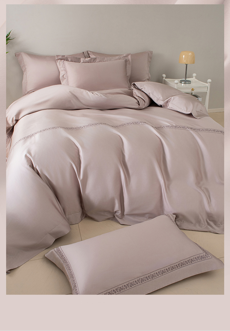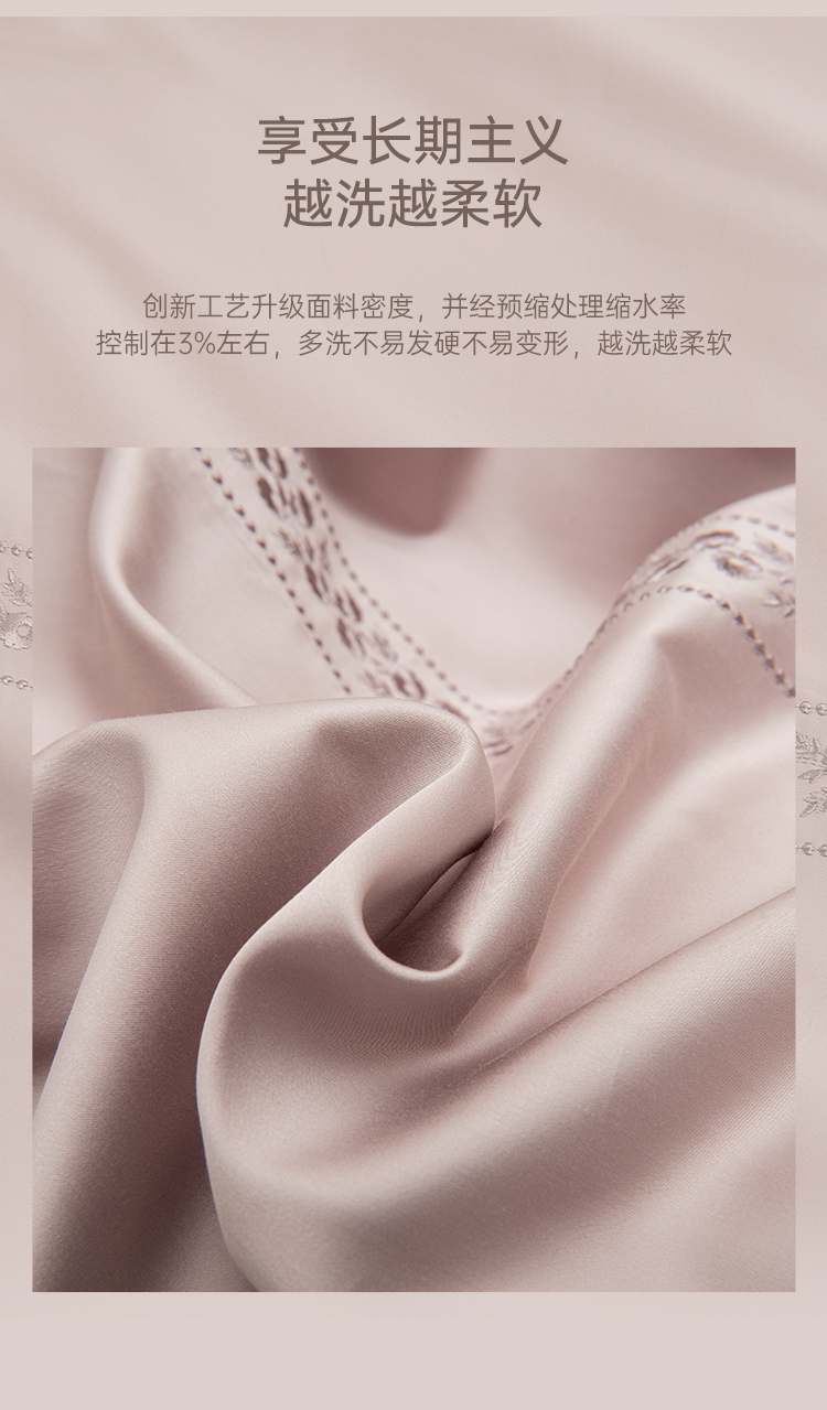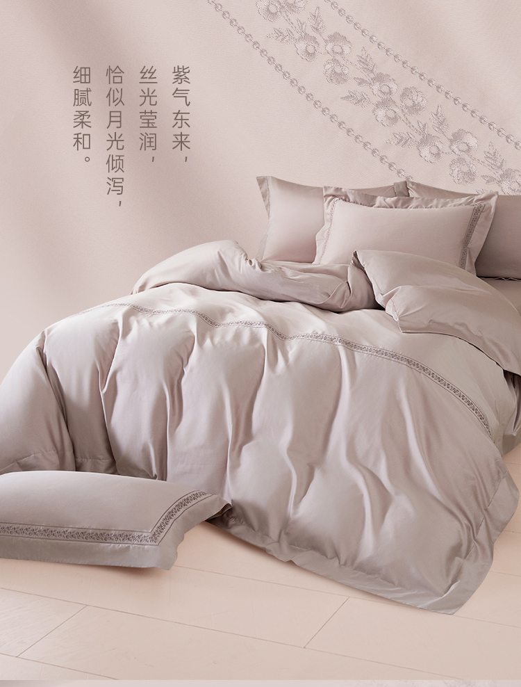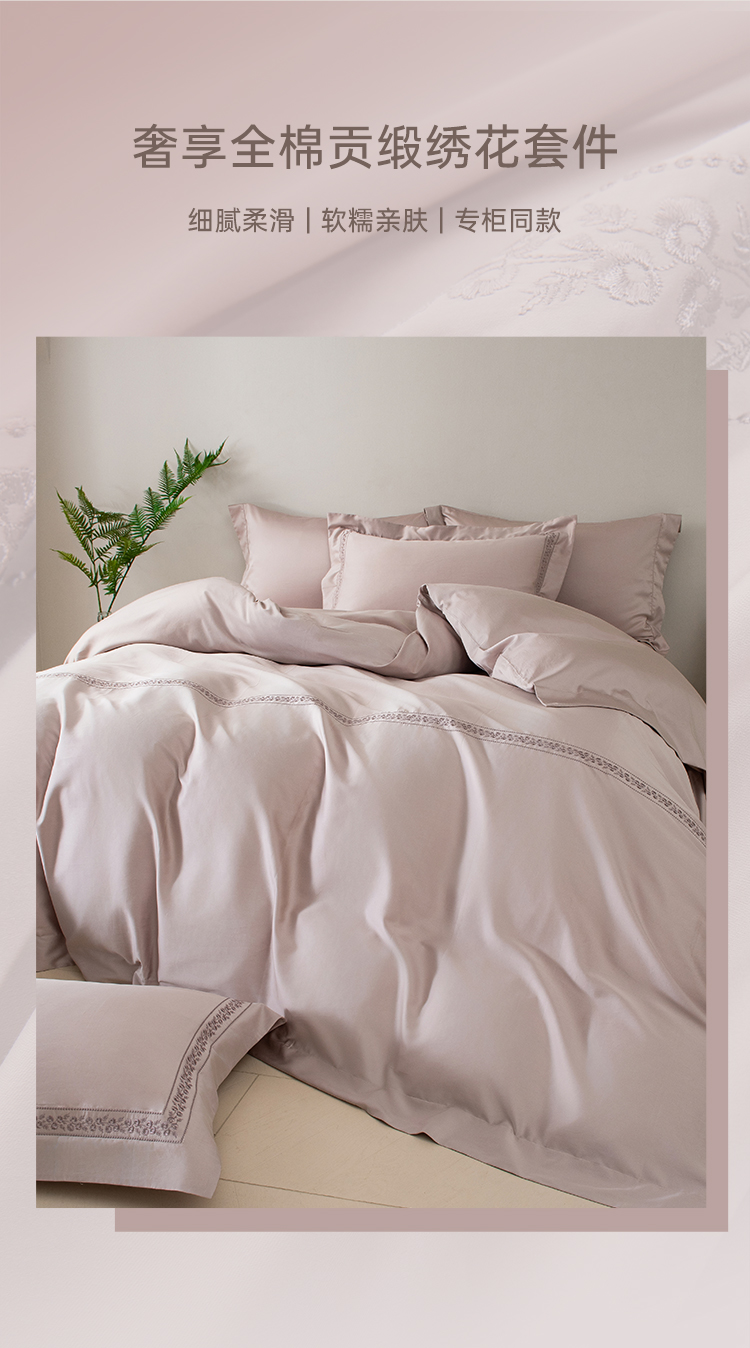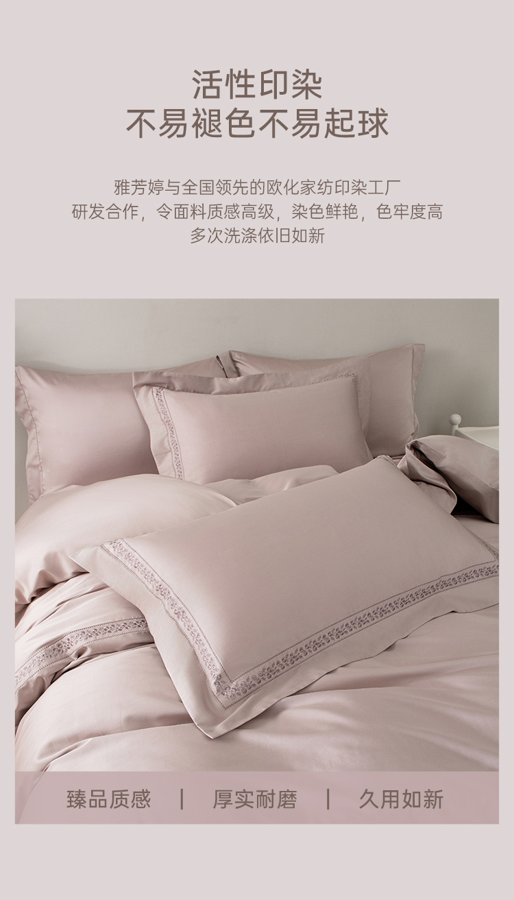 雅芳婷奢享全棉床上四件套床笠款简约轻奢高级感被套贡缎绣花套件