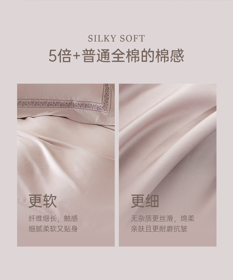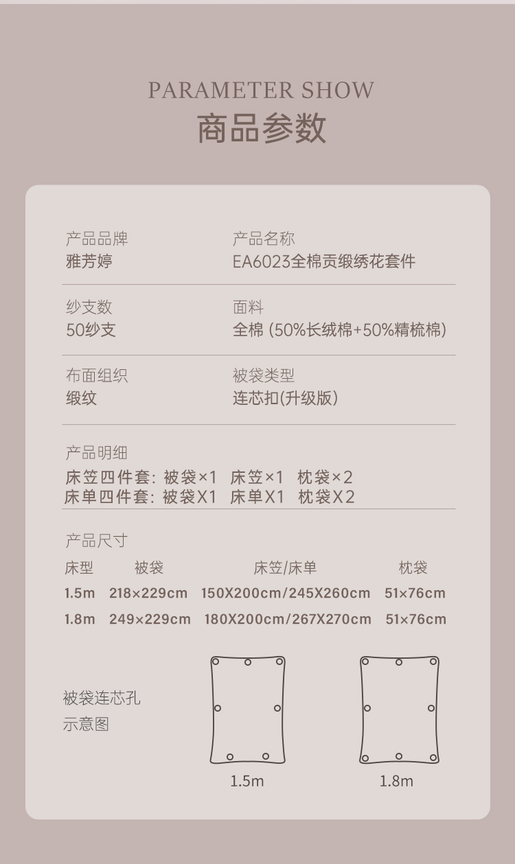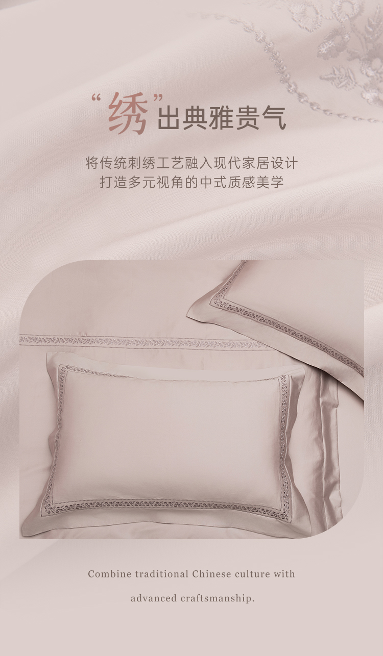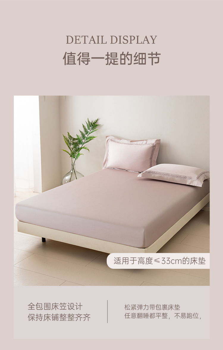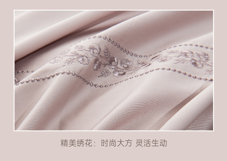 雅芳婷奢享全棉床上四件套床笠款简约轻奢高级感被套贡缎绣花套件