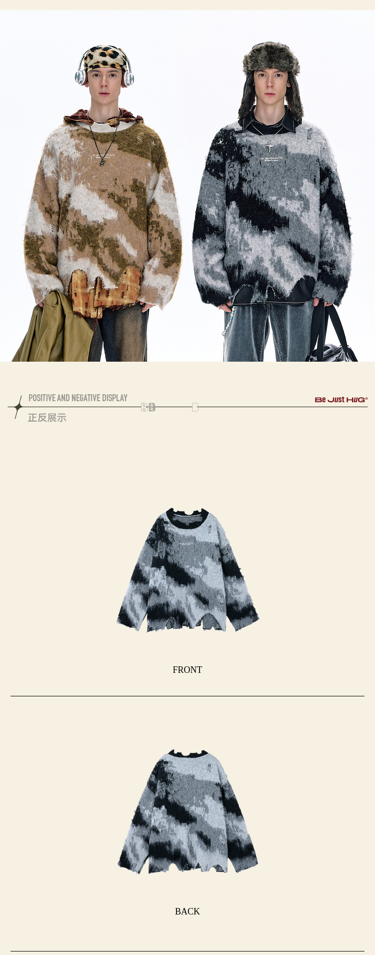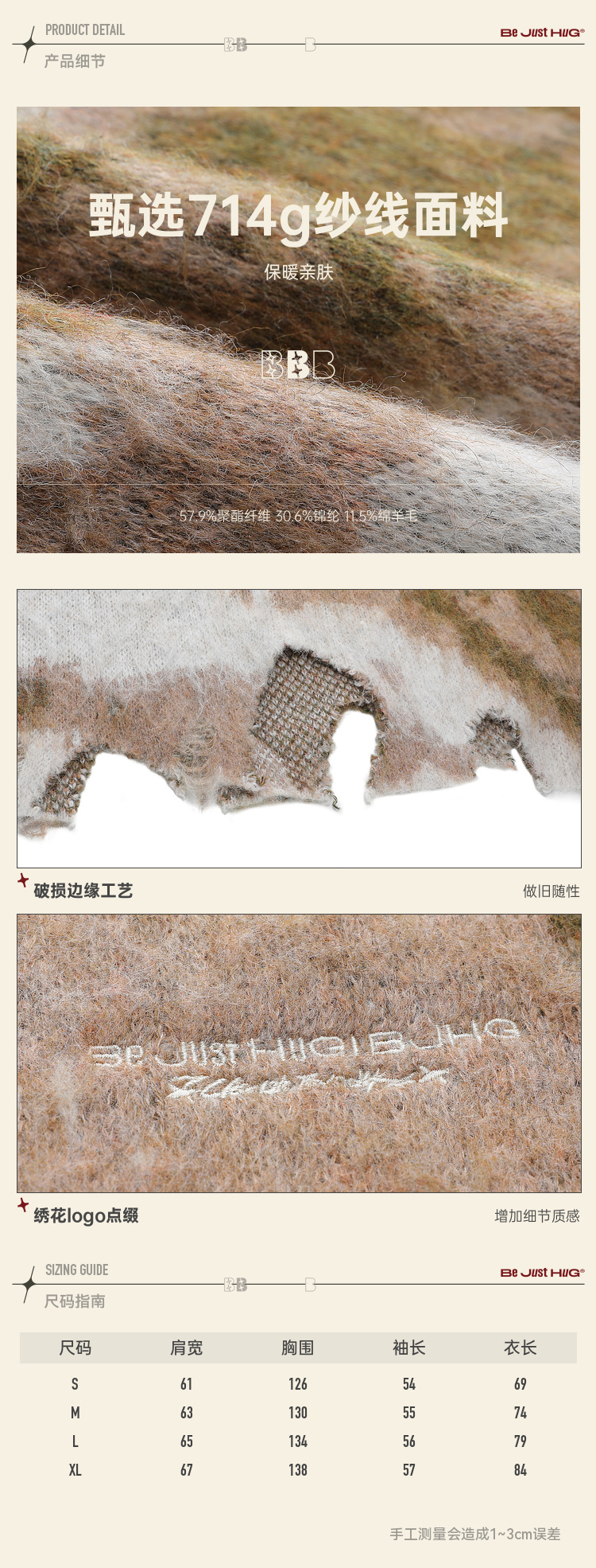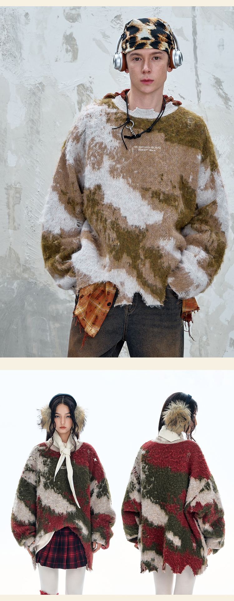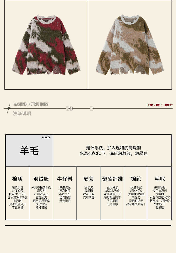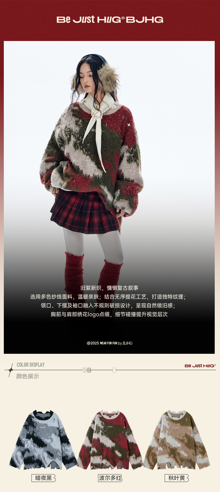 BJHG不计后果复古战损风毛衣男款秋2025新款羊毛针织衫情侣毛衣女