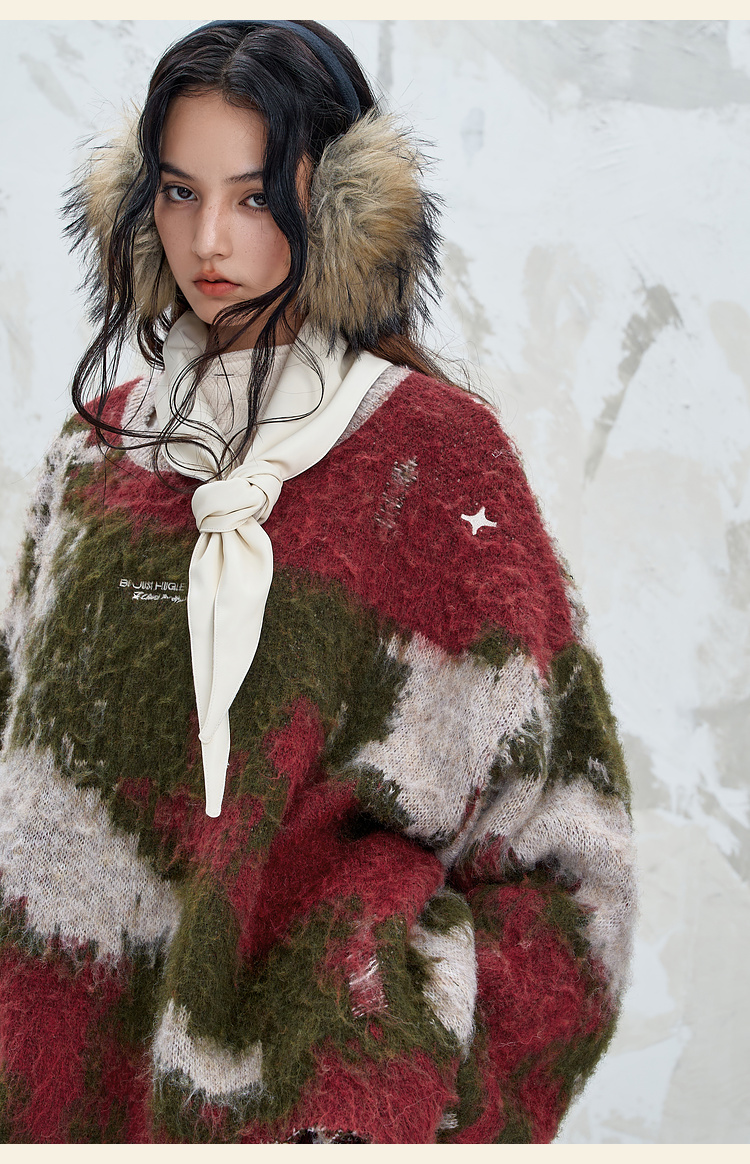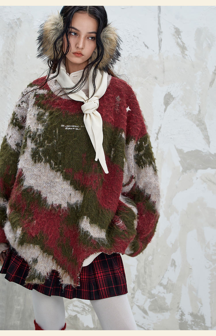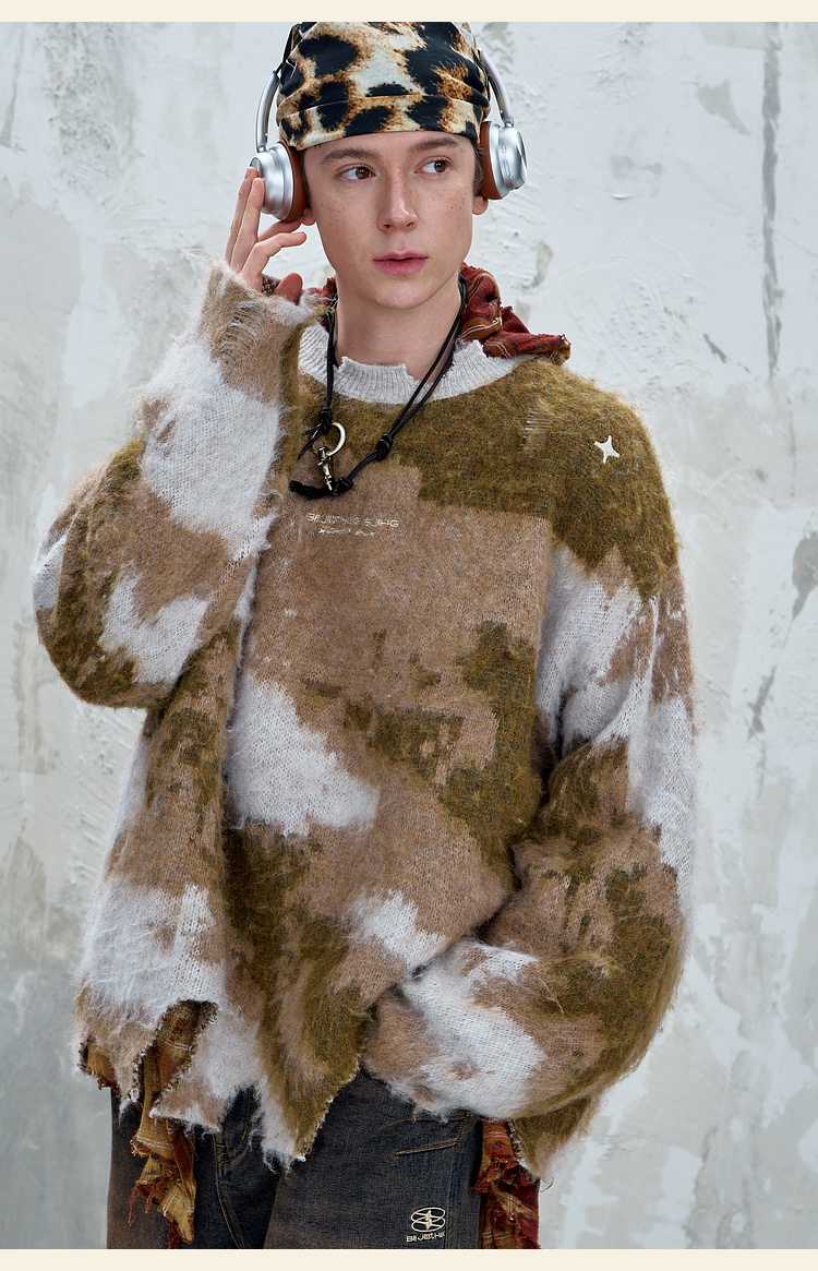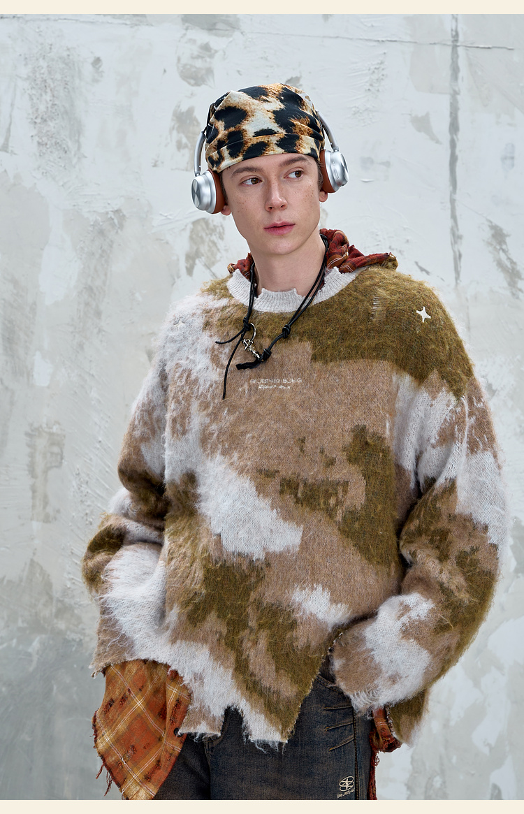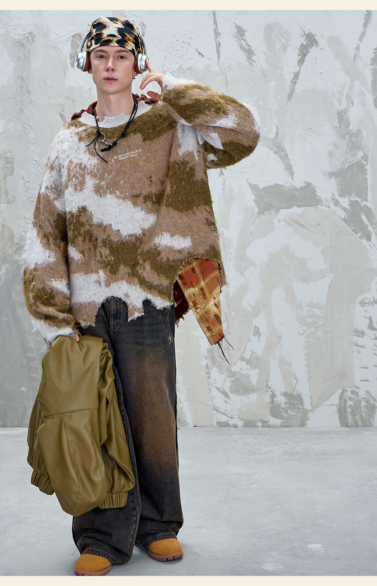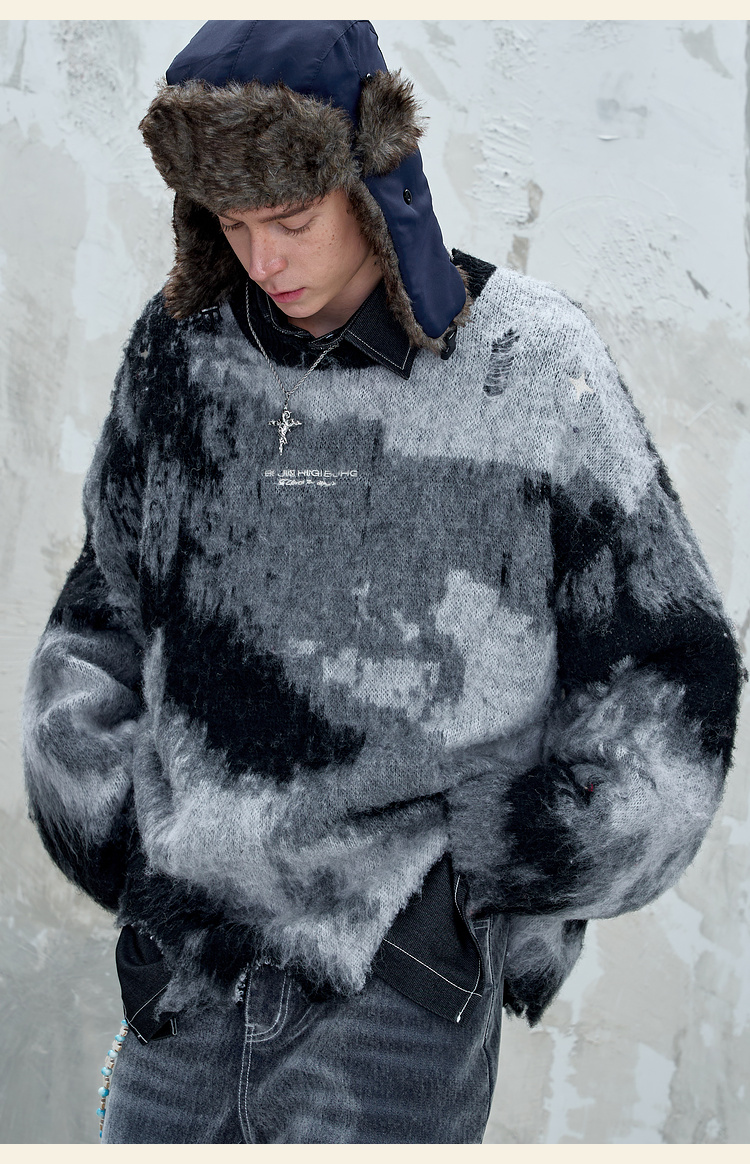 BJHG不计后果复古战损风毛衣男款秋2025新款羊毛针织衫情侣毛衣女