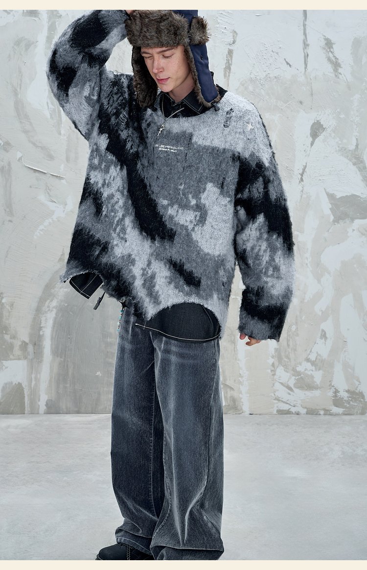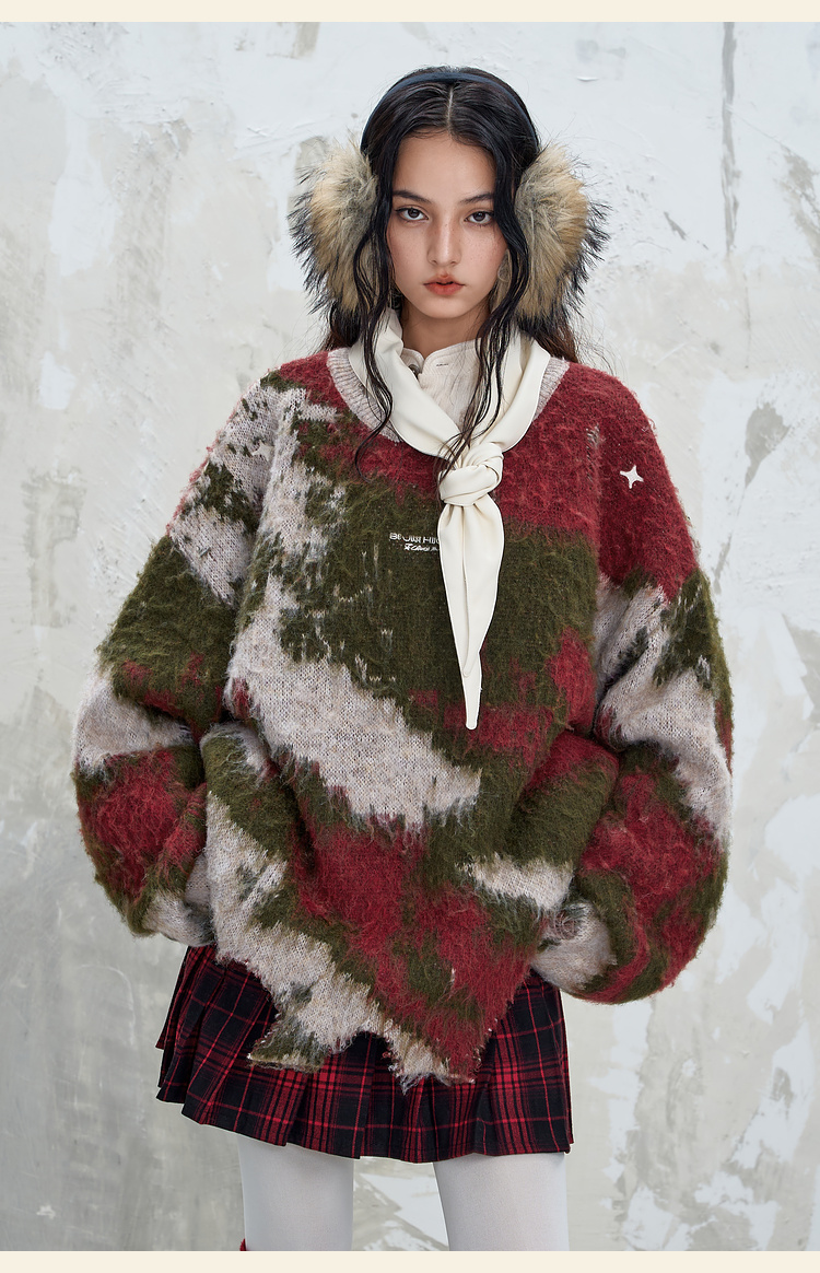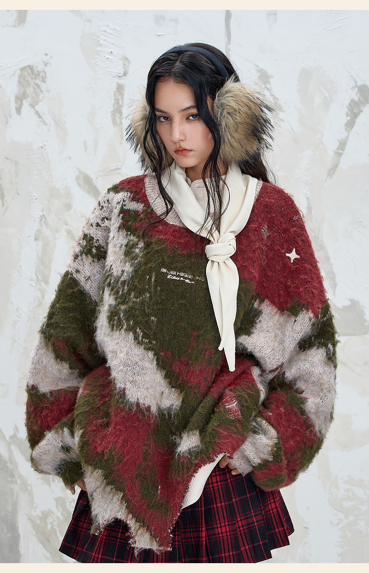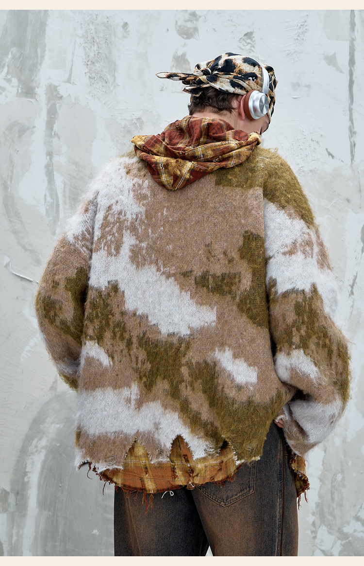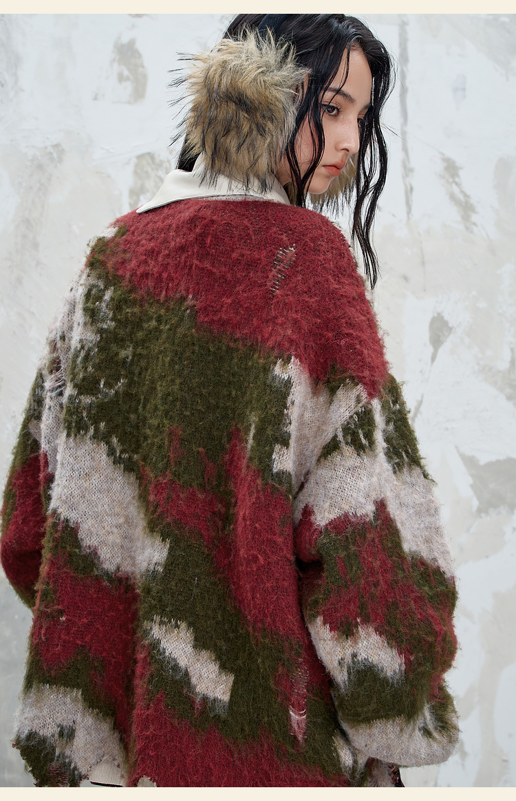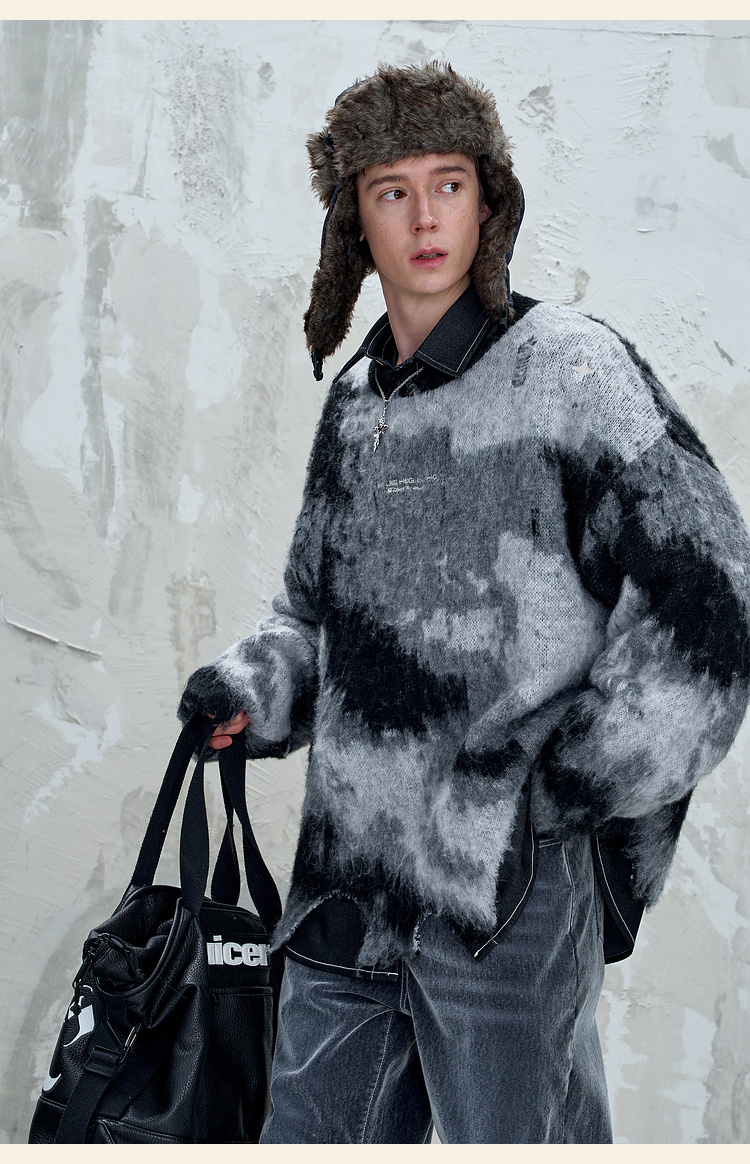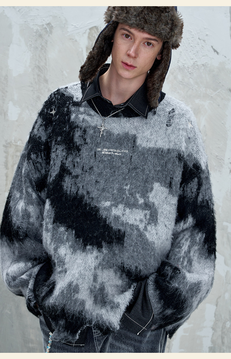 BJHG不计后果复古战损风毛衣男款秋2025新款羊毛针织衫情侣毛衣女