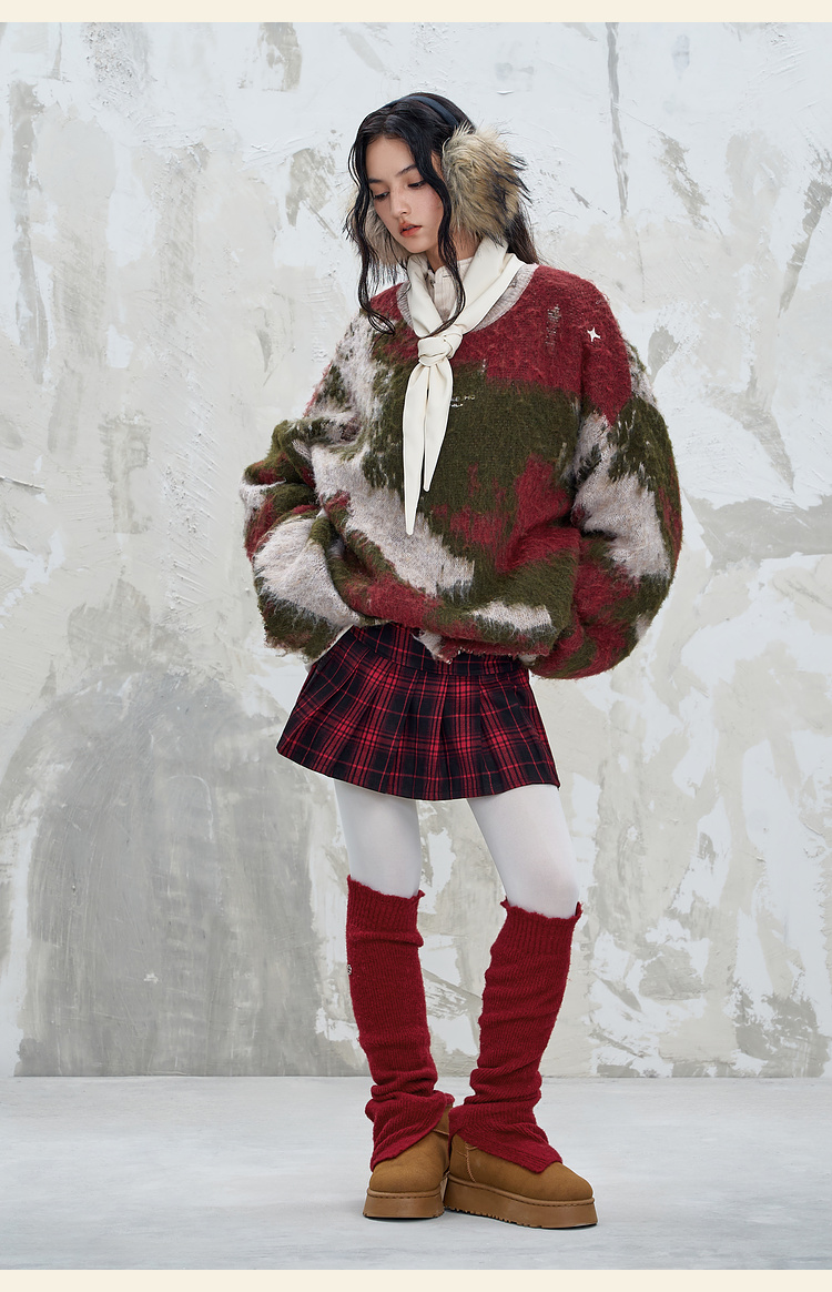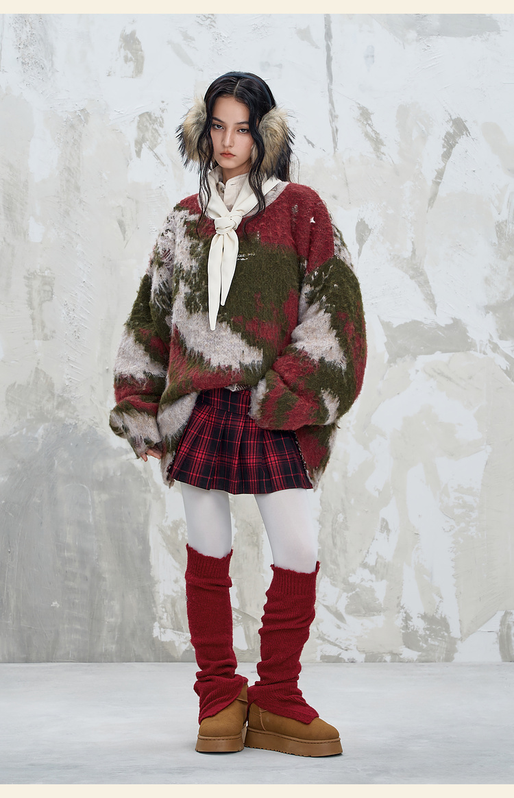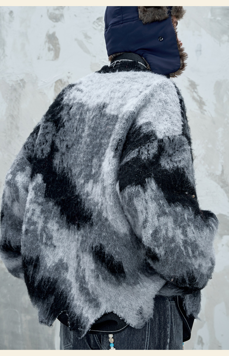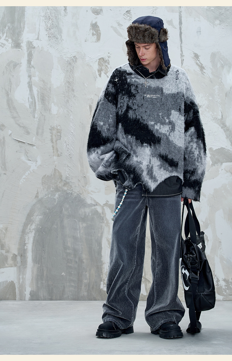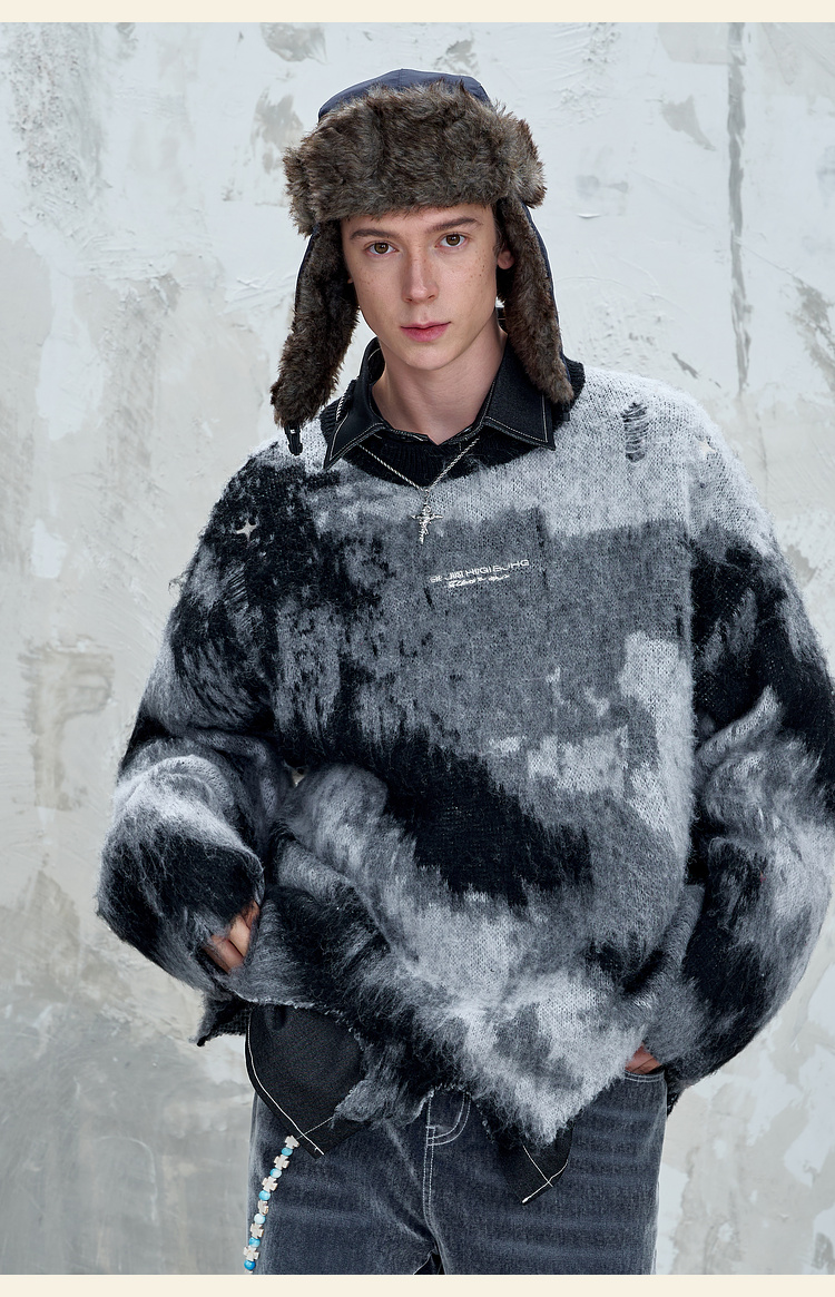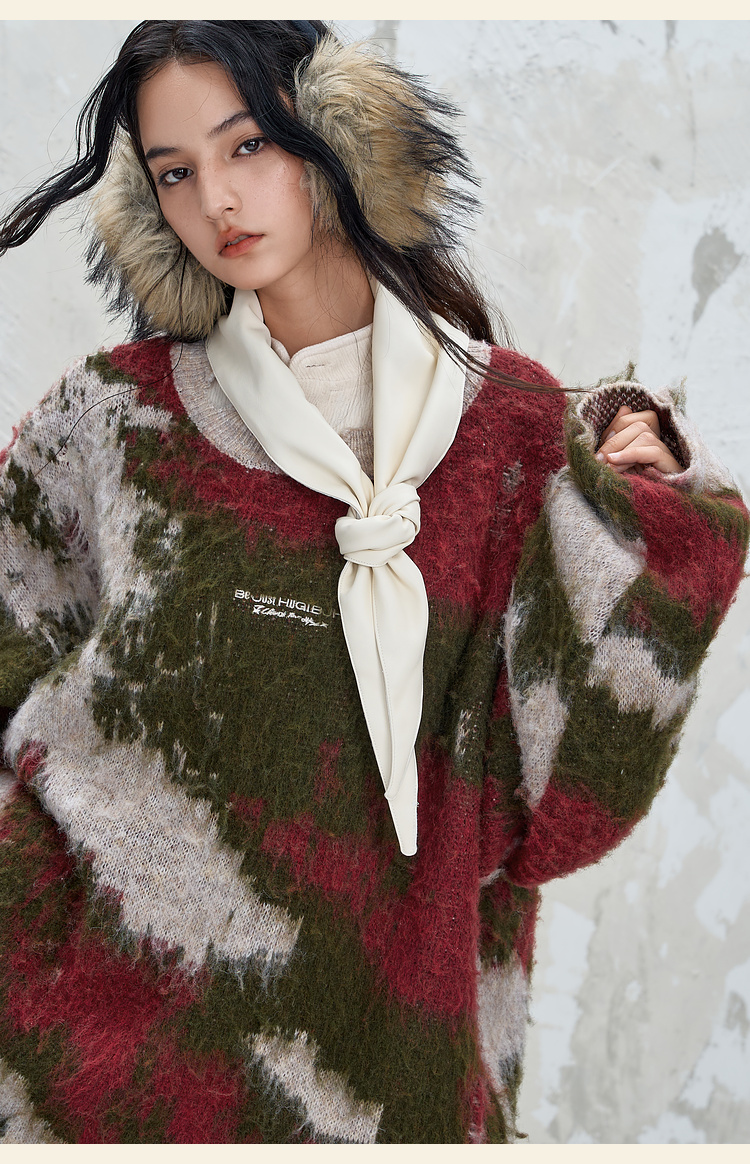 BJHG不计后果复古战损风毛衣男款秋2025新款羊毛针织衫情侣毛衣女