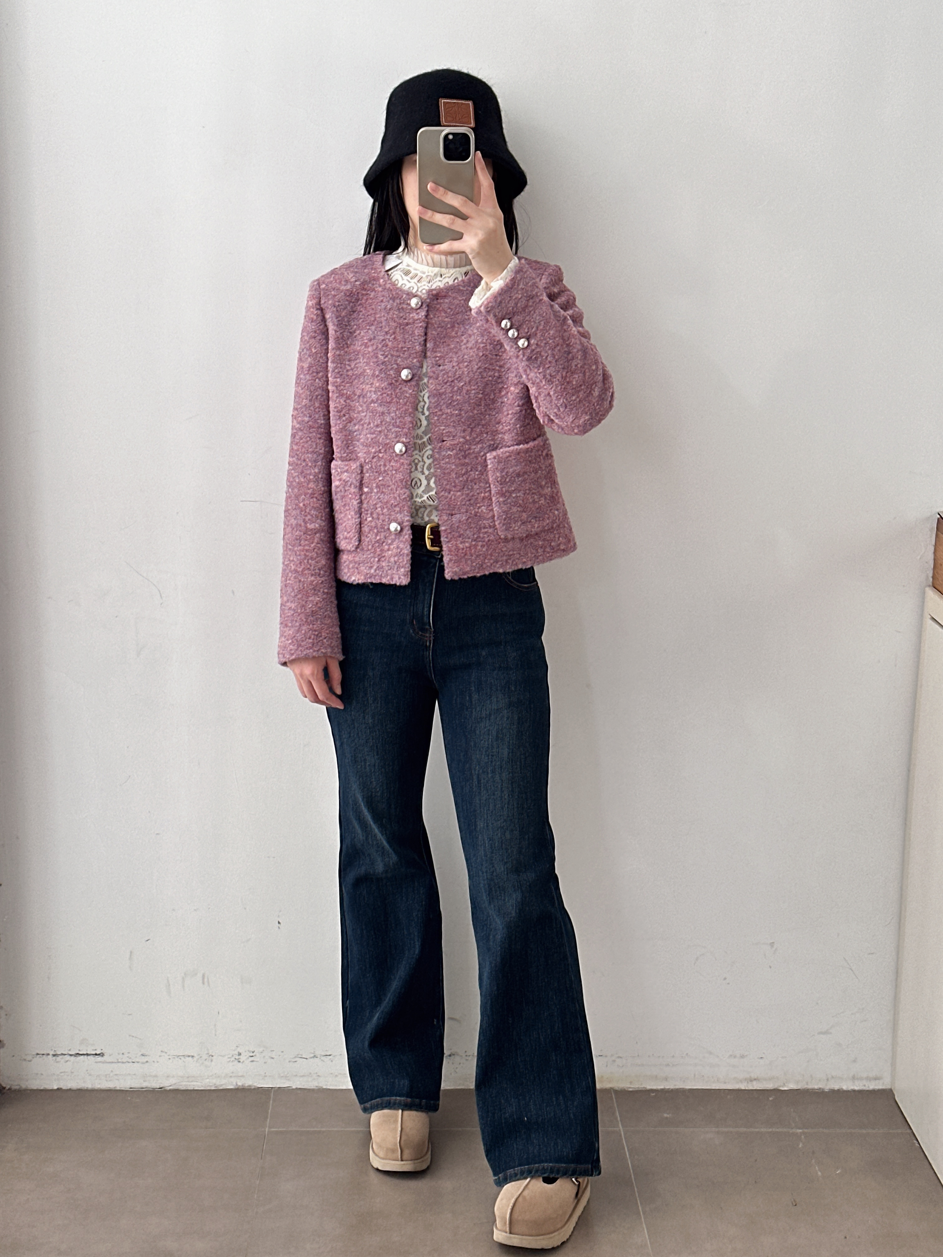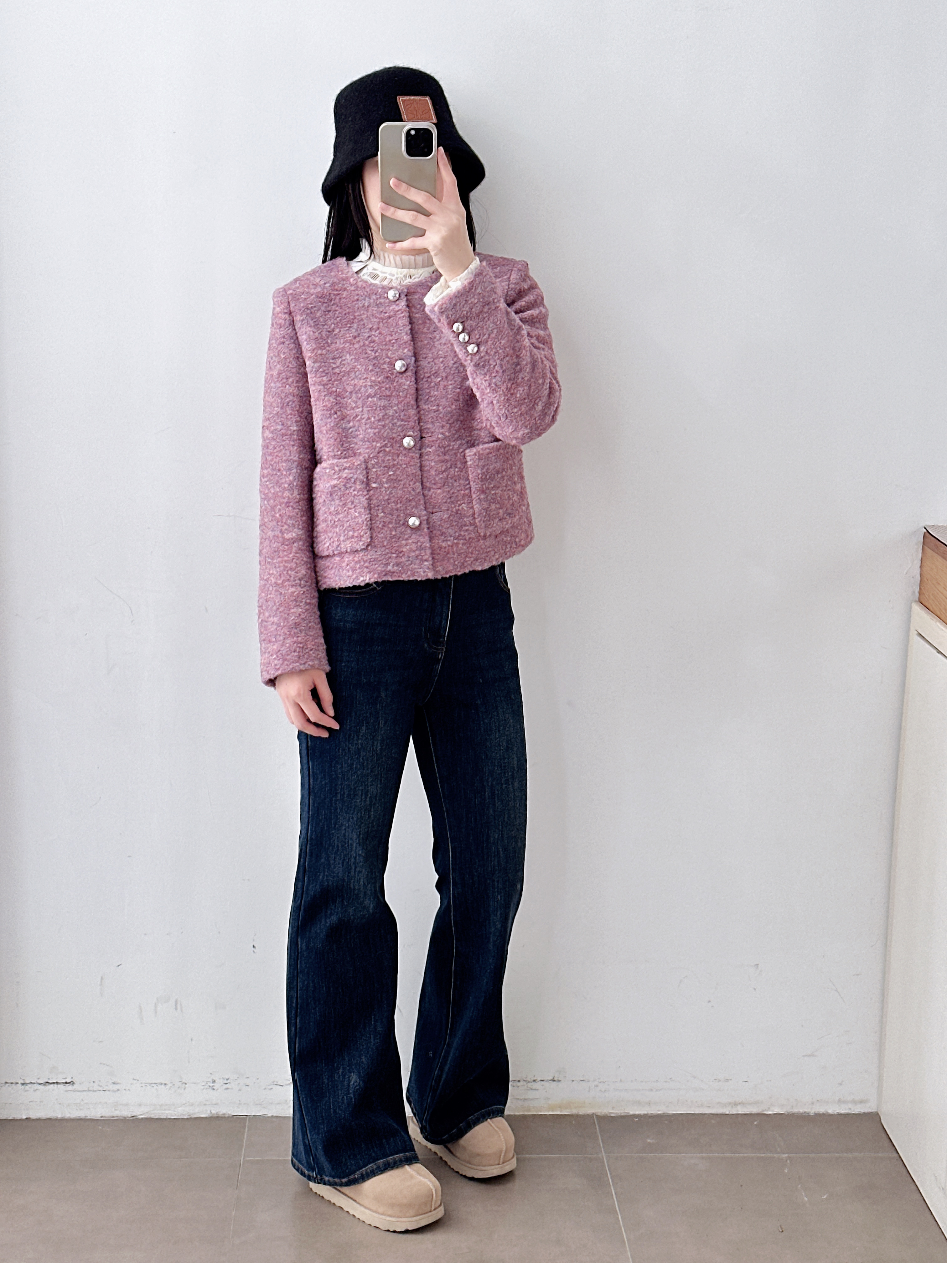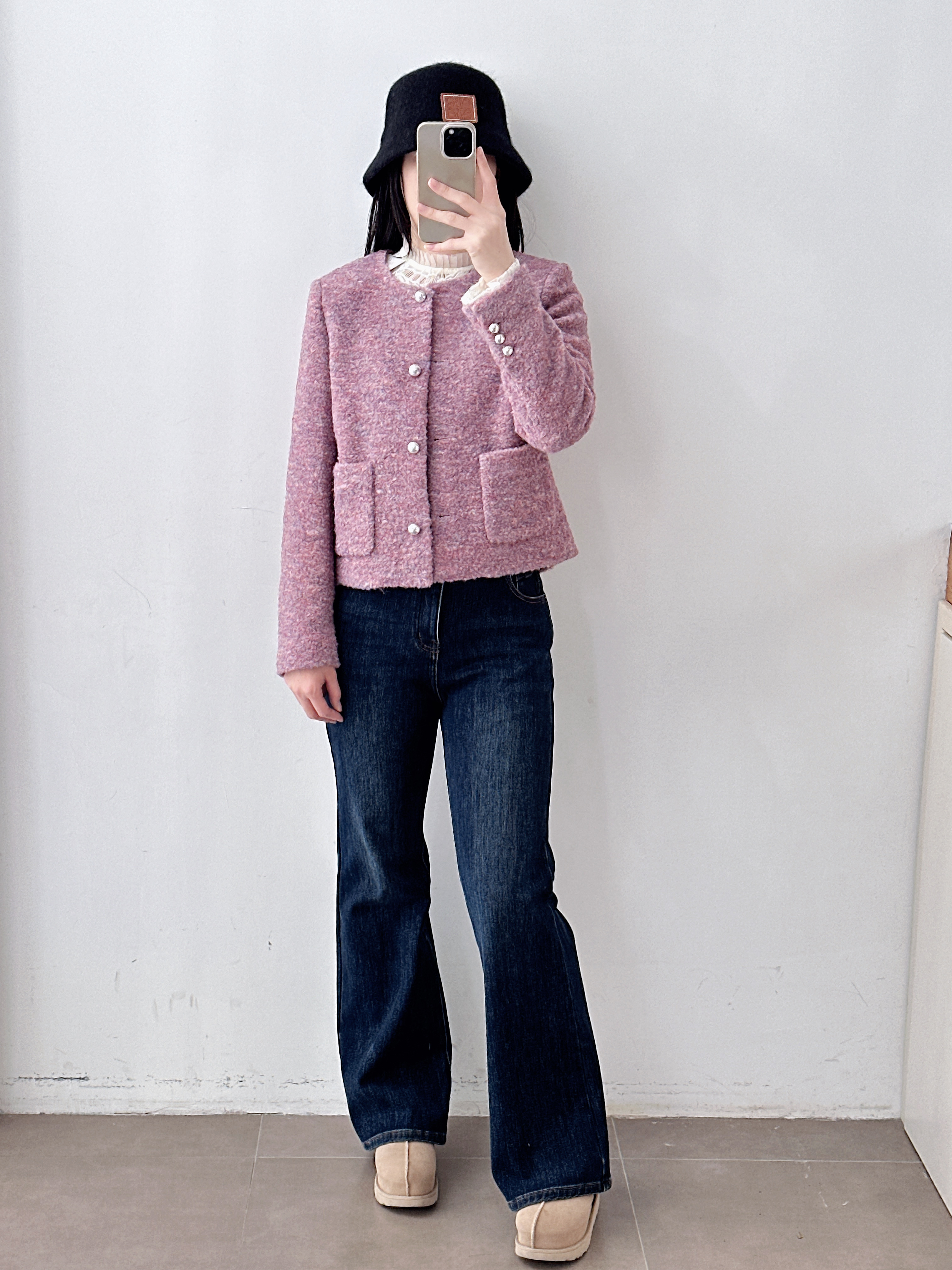 2023秋冬女装新系扣V领口袋百搭简约长袖针织衫