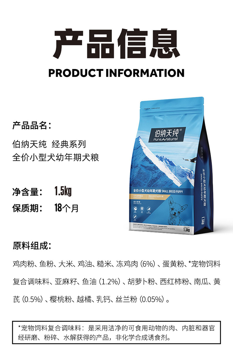 伯纳天纯狗粮小型犬成犬粮贵宾比熊泰迪通用粮1.5kg