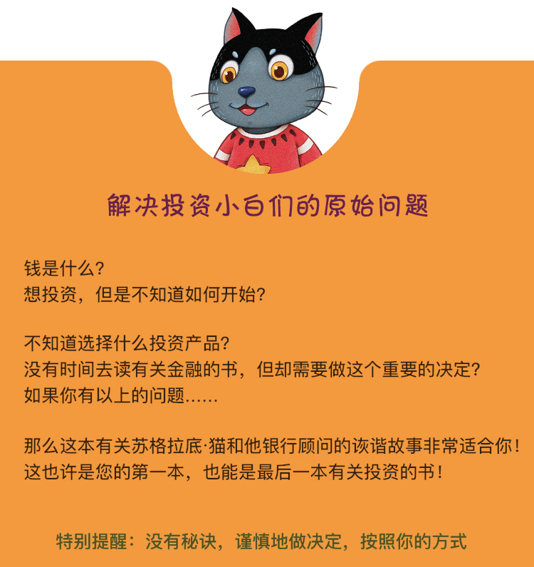 ★个人理财往往是枯燥的,《猫和银行家》讲述的是苏格拉底·猫和它的银行顾问盖世猫之间发生的有趣故事。通过两只猫的对话,帮助读者理解专业的理财知识。