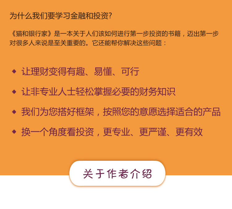 ★大多数人不愿意花时间去阅读专业的理财书籍。《猫和银行家》则避免了这其中不必要的复杂性,让全书变得简单易懂。