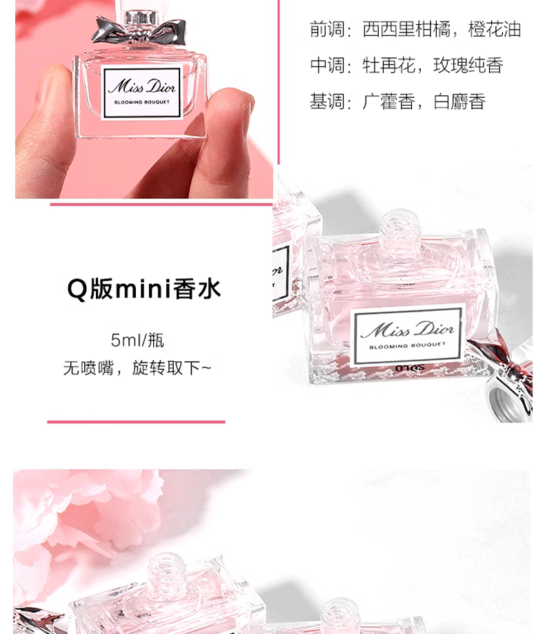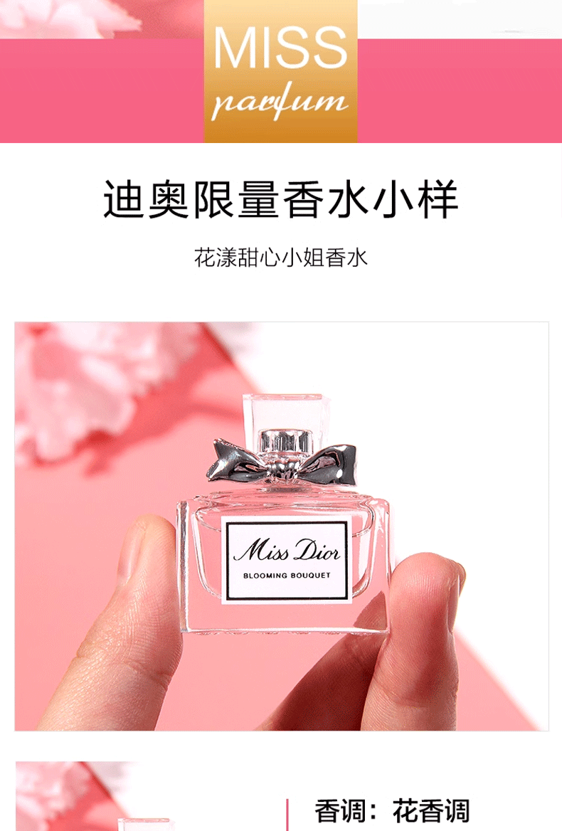 【品牌】:Dior/迪奥 【商品名称】:Dior/迪奥 花漾甜心香水5ml 带盒 一般贸易【规格】:5ml【产品原产国】:法国【保质期】:3年【产品限期使用日期】:有效期2027-1【注意!!!】批次更新较快,具体以实收批次日期为准【版本】:一般贸易/国际版【快递】:中通,圆通【发货地】:哈尔滨、广东【运费模板】:全国包邮【加邮费地区】:新疆+18 ,西藏+25【发货时效】:72小时【售后政策】:支持七天无理由退换(不影响二次销售的基础上)
