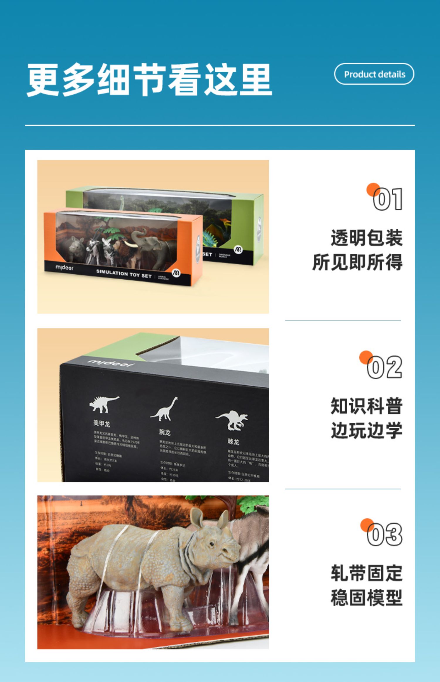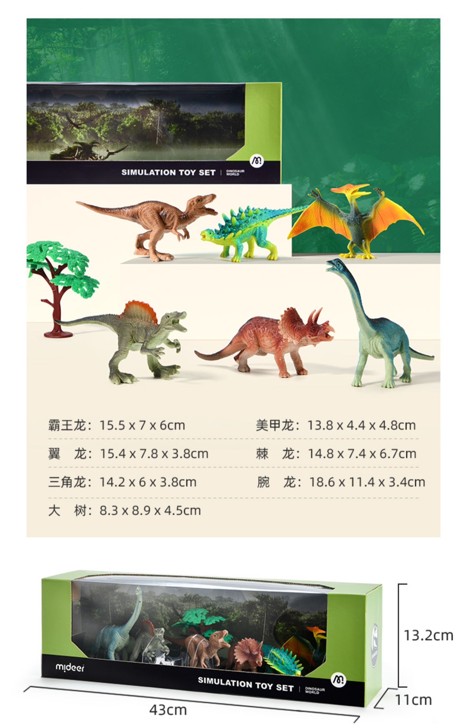 mideer弥鹿恐龙动物仿真模型可爱过家家玩具益智