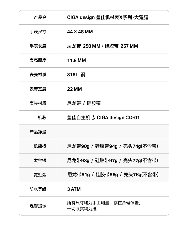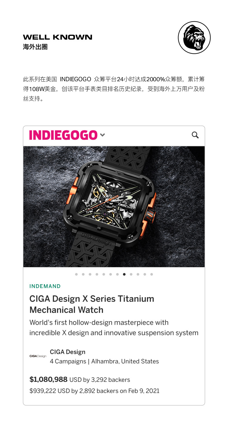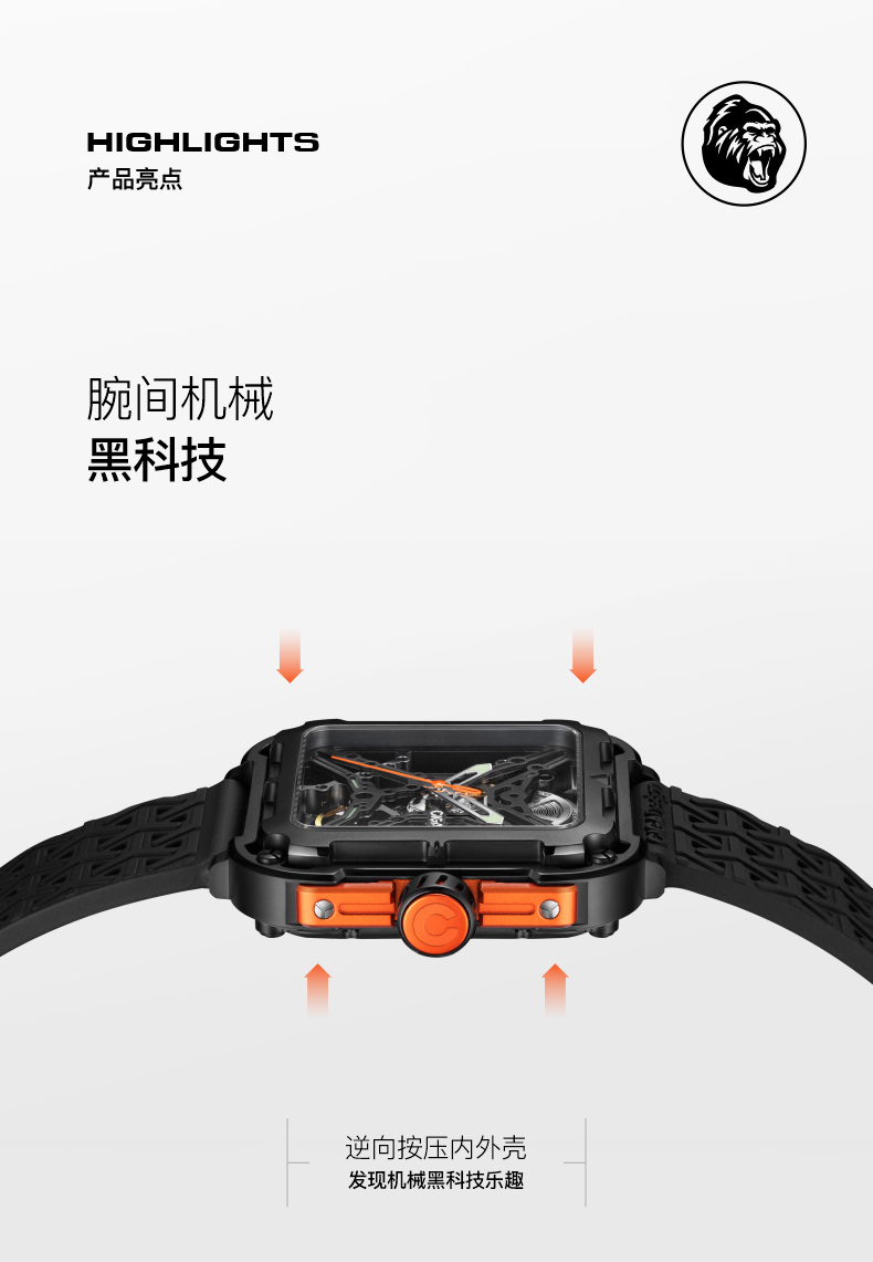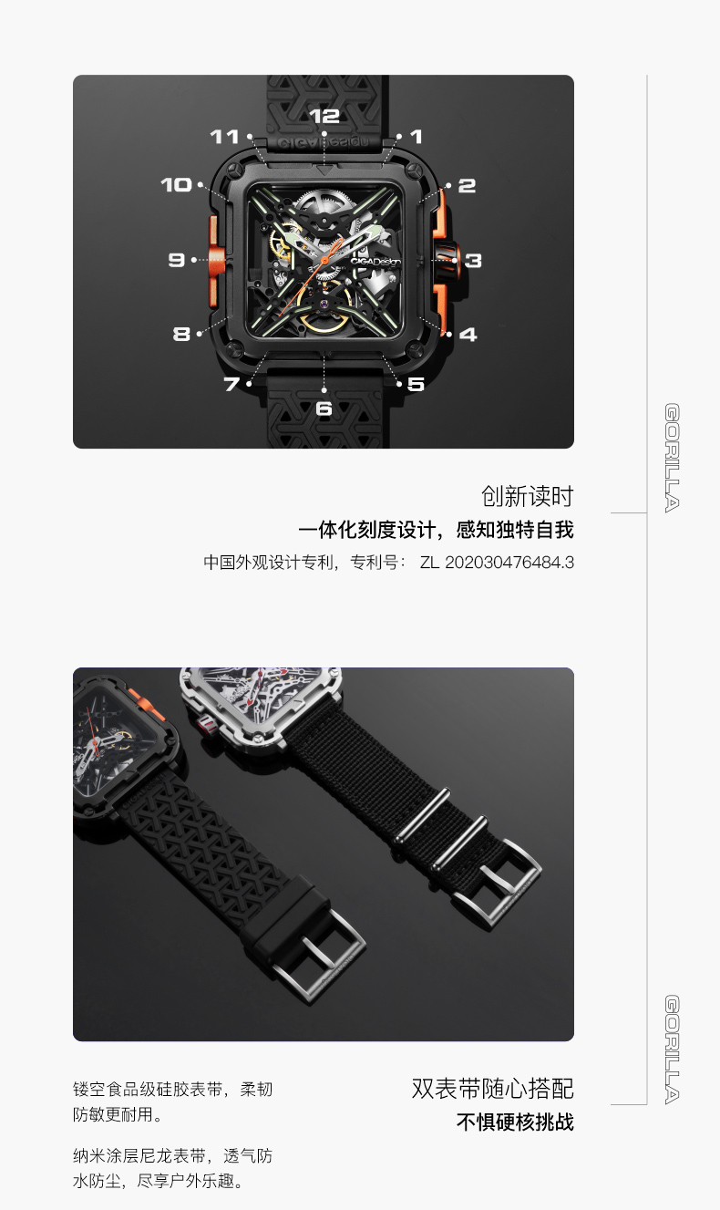 CIGA design玺佳机械表X系列 大猩猩镂空男士手表 国潮来袭尽显锋芒