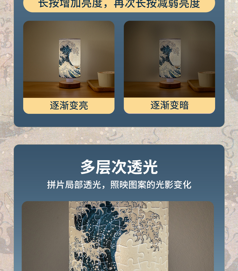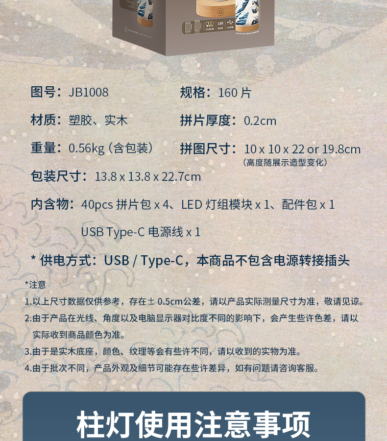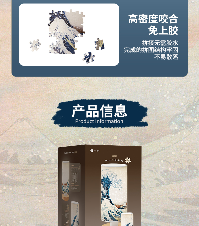 160片 柱灯拼图 JB1008 葛饰北斋-神奈川冲浪里
