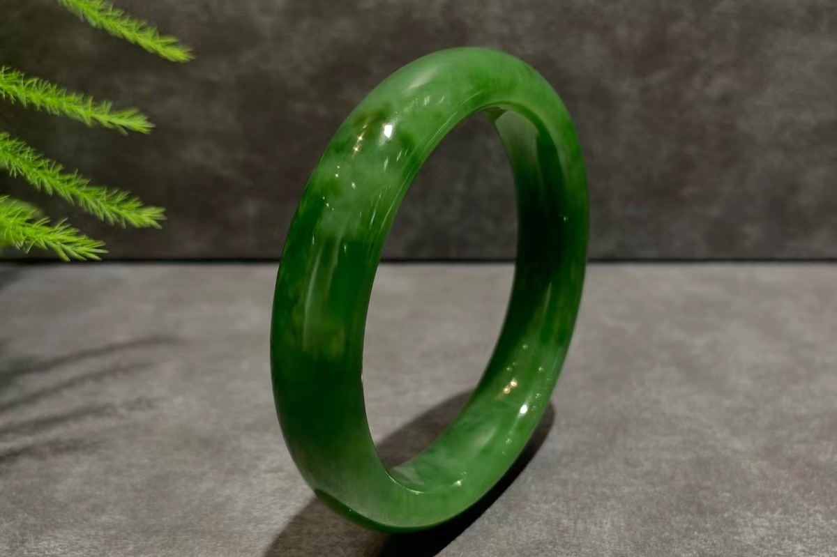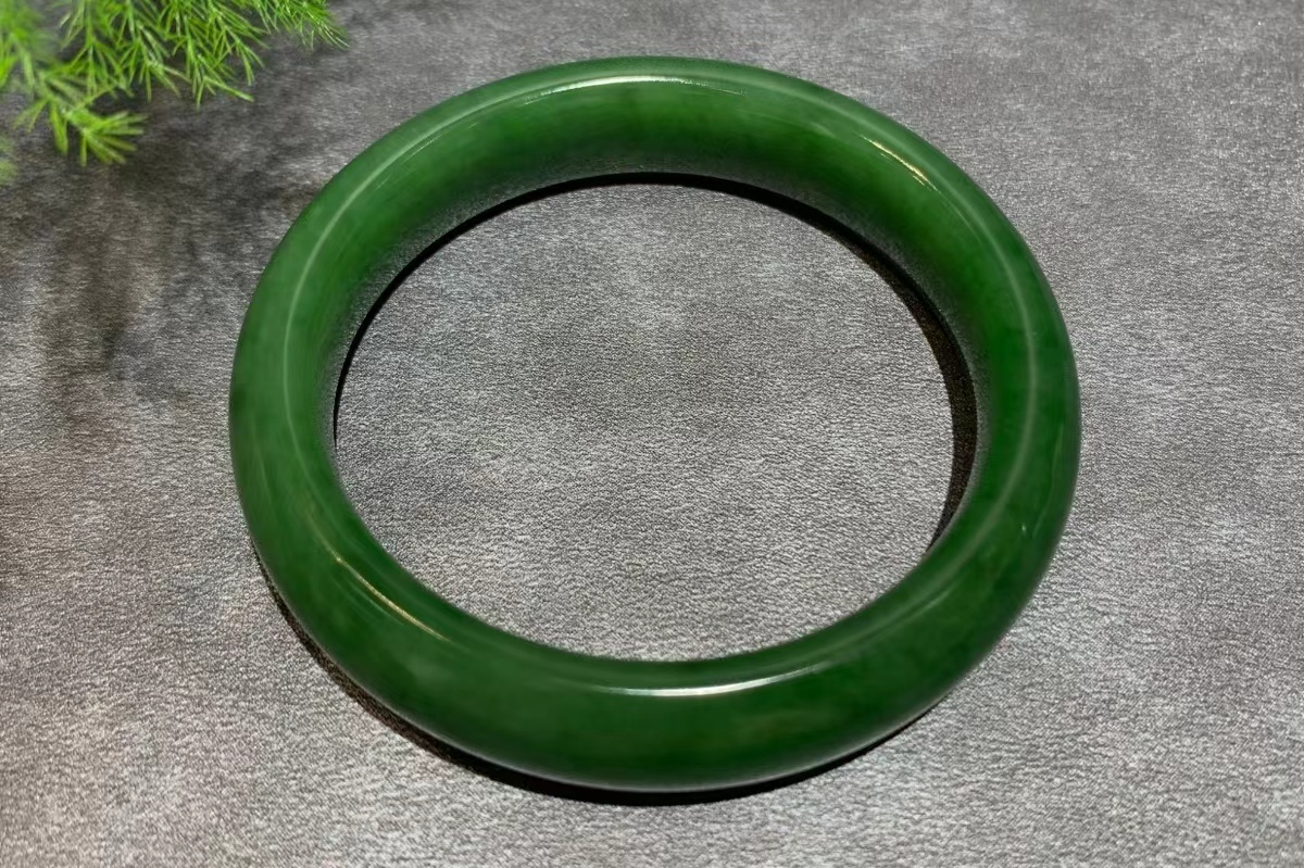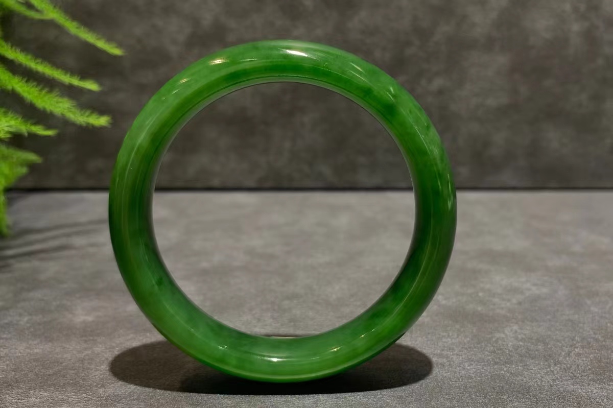 该款碧玉手镯色泽为饱满的果绿色,内敛清雅的绿,仿佛林间翠树,任岁月蹉跎,它依旧苍翠欲滴🌿🌿