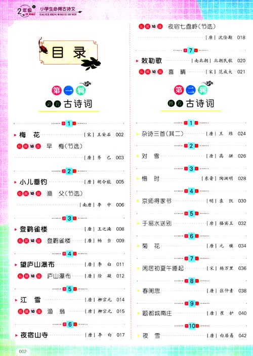 优选篇章,濡养古诗文情怀;精美讲解,夯实古诗文基础。让学子在享受古诗文熏陶的同时,立足小学,对接中学,嘹望中考!