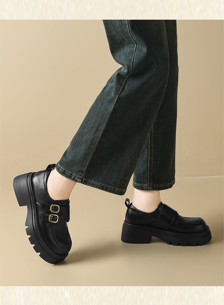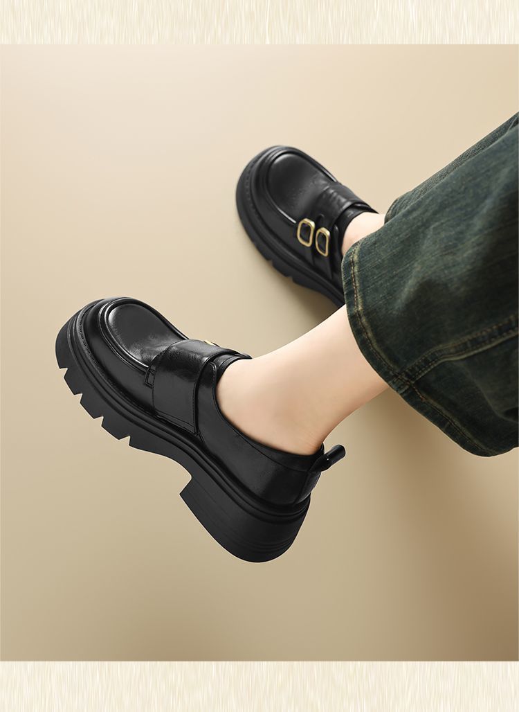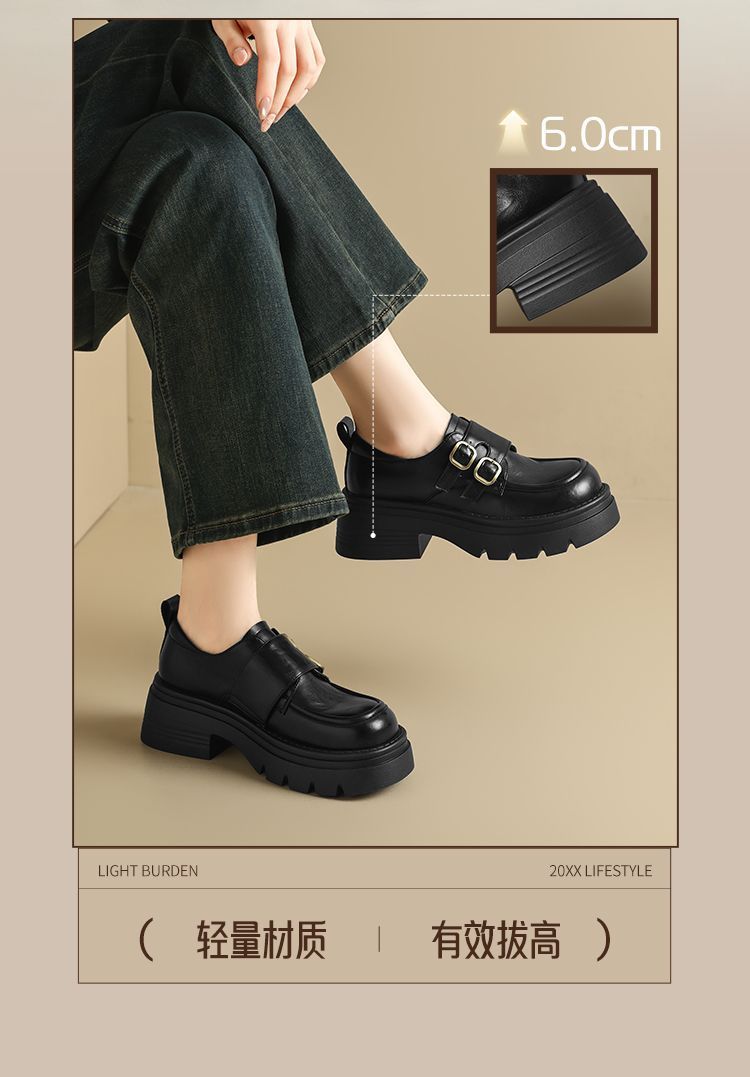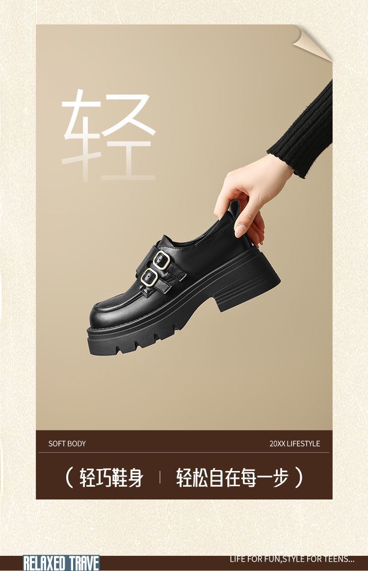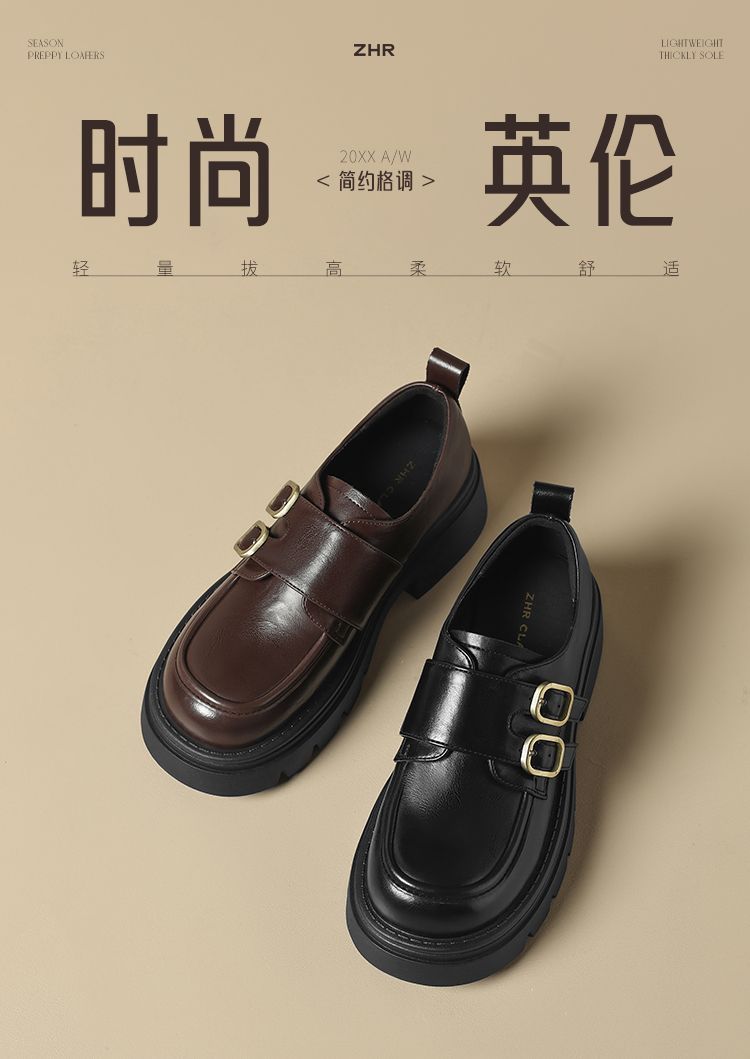 ZHR则则厚底小皮鞋女2025新款英伦风增高单鞋配裙子粗跟JK乐福鞋