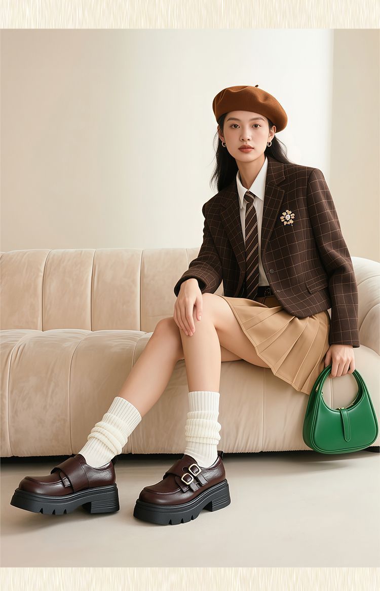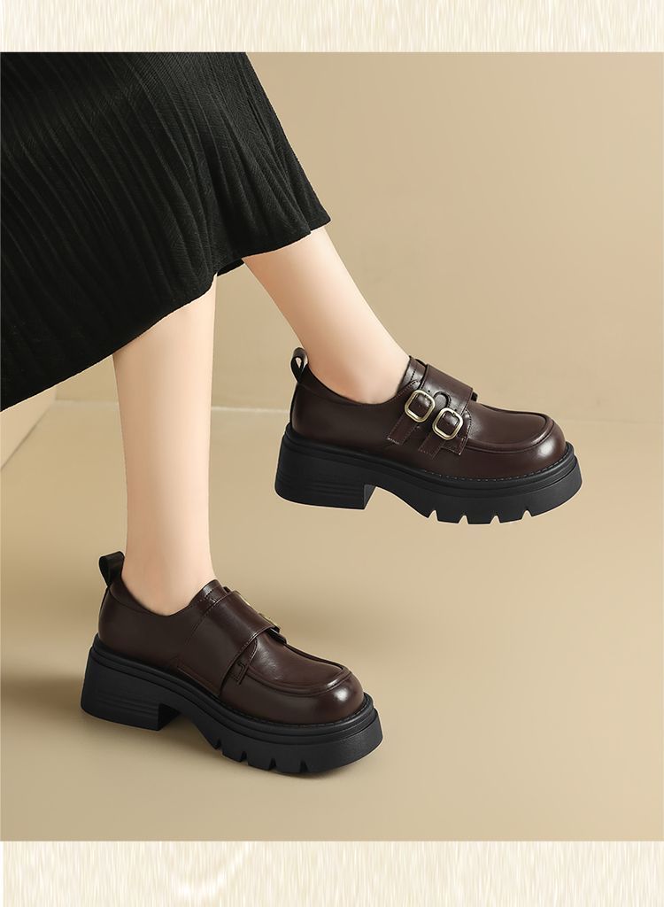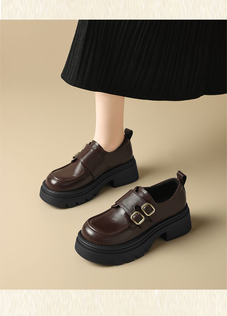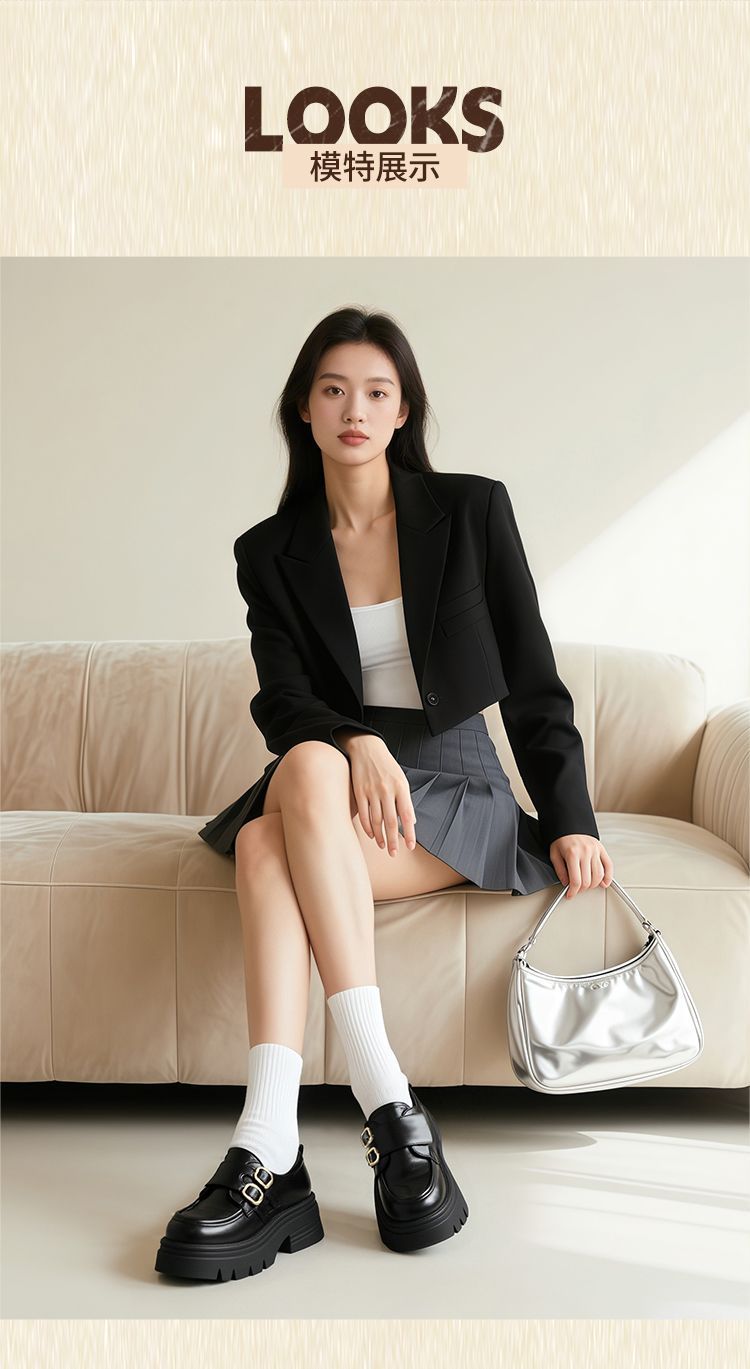 ZHR则则厚底小皮鞋女2025新款英伦风增高单鞋配裙子粗跟JK乐福鞋