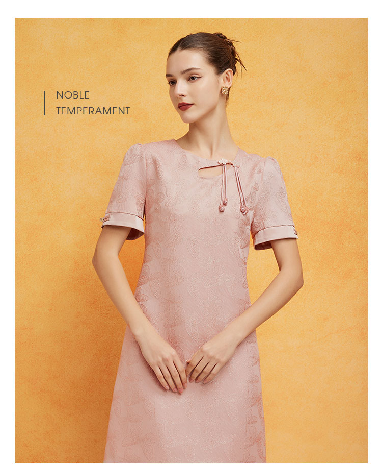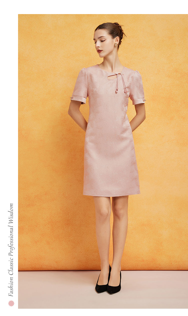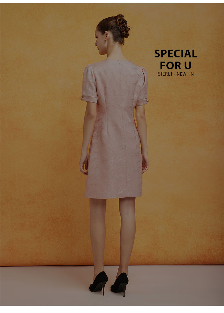 PF8K1斯尔丽2024新款轻国风流苏盘扣时尚减龄提花圆领连衣裙