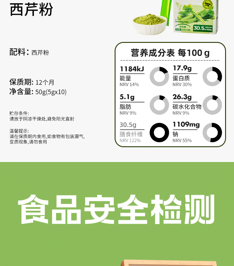 【暴肌独角兽】【清仓|批发】西芹粉50g高膳食纤维果蔬粉菜粉代餐粉独立条装