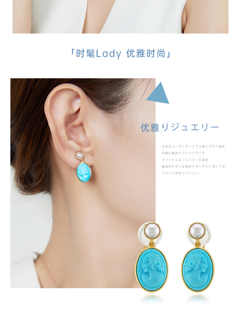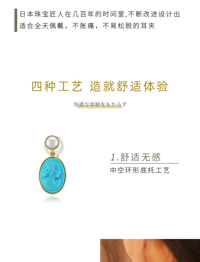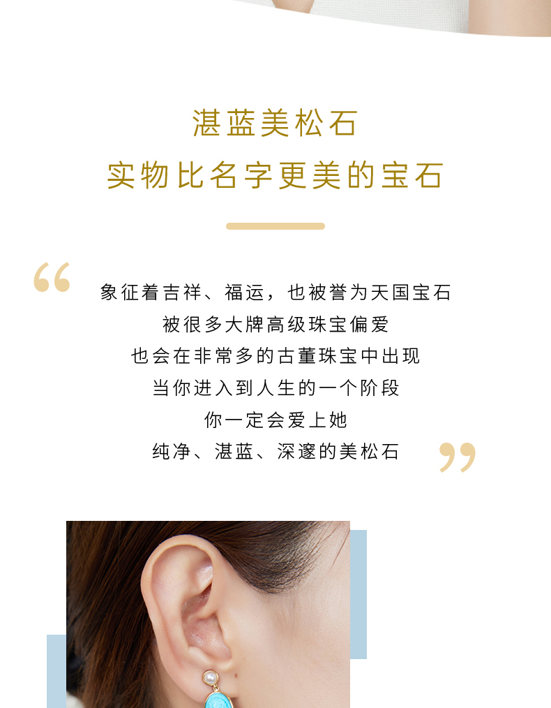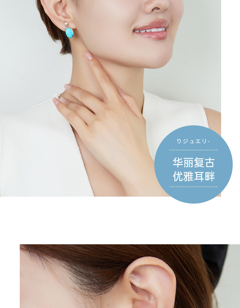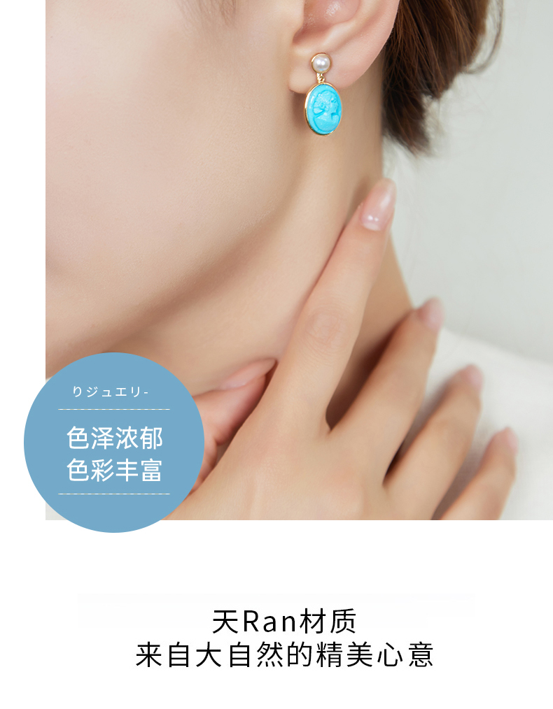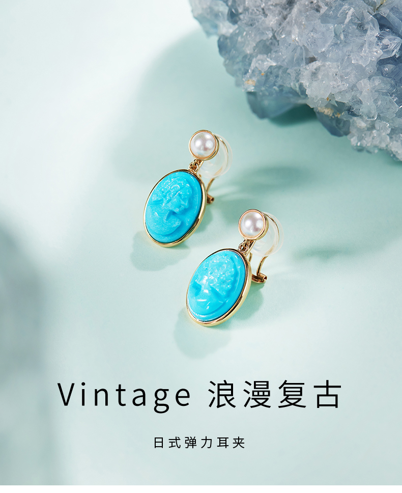 【天猫同款】悦甄 18k金akoya花纹美松石耳夹 蓝雅