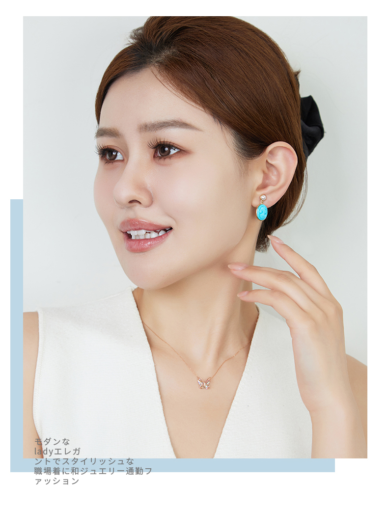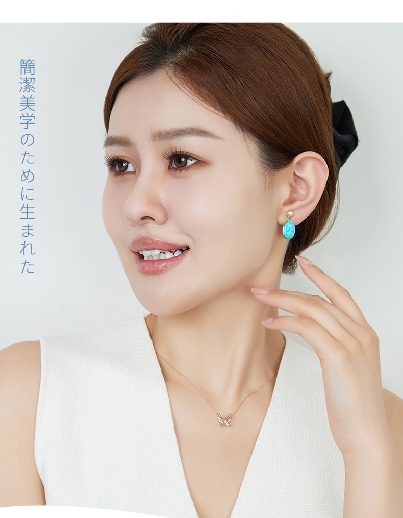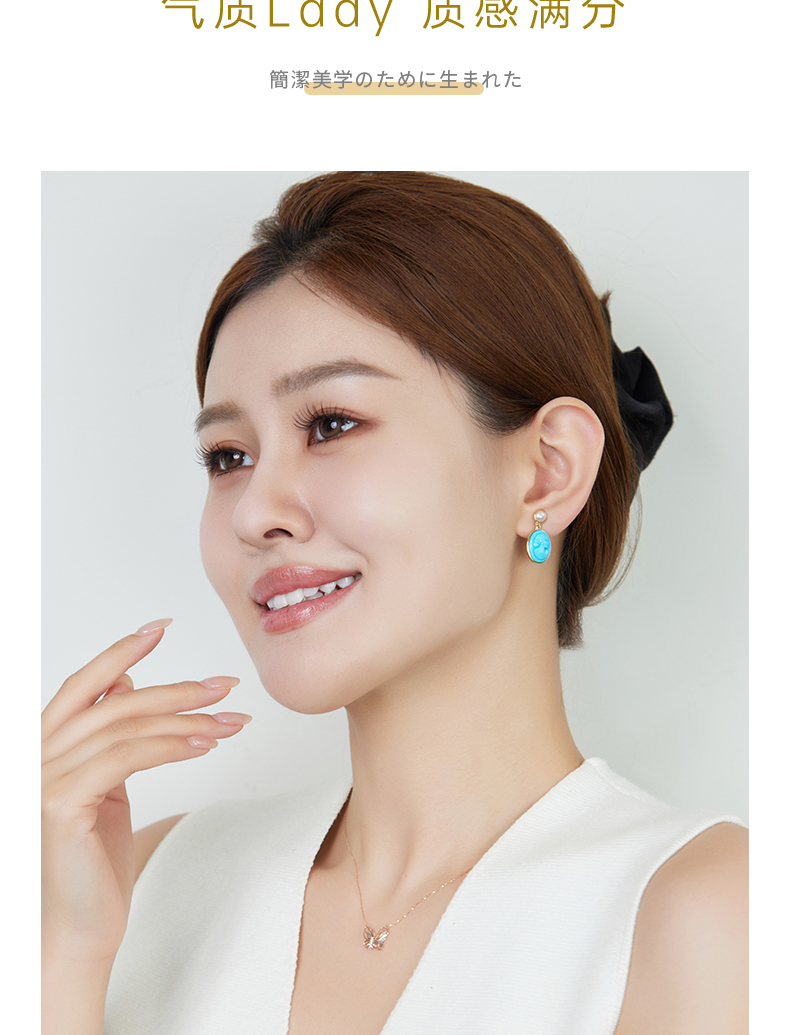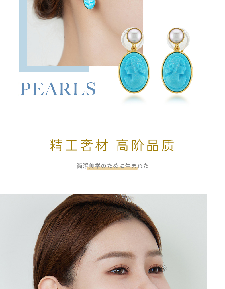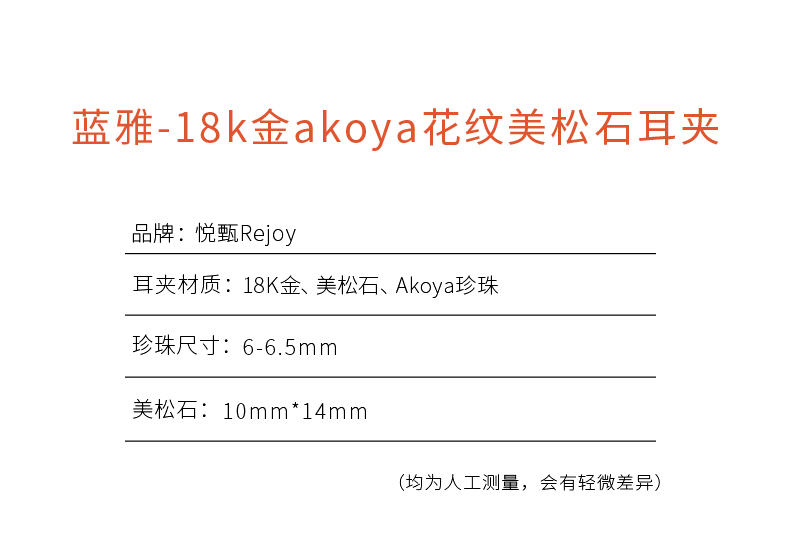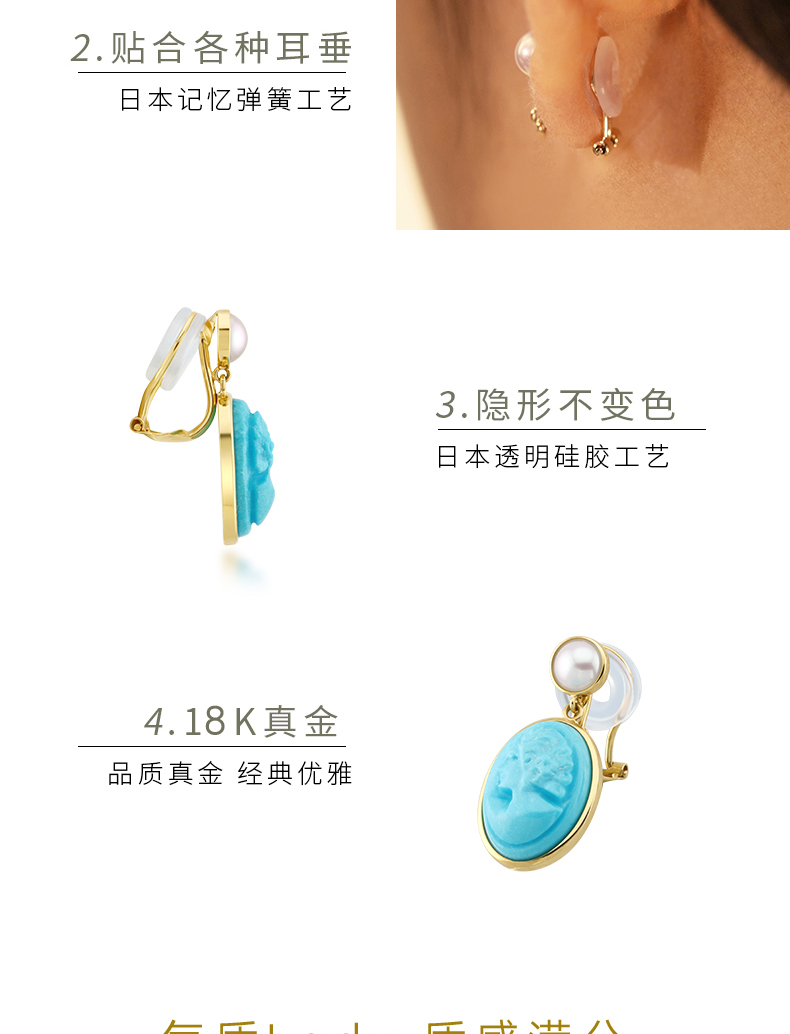 【天猫同款】悦甄 18k金akoya花纹美松石耳夹 蓝雅