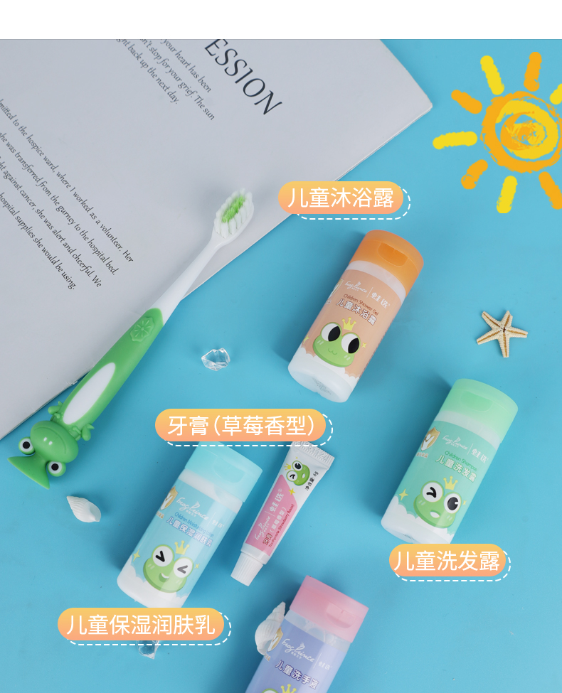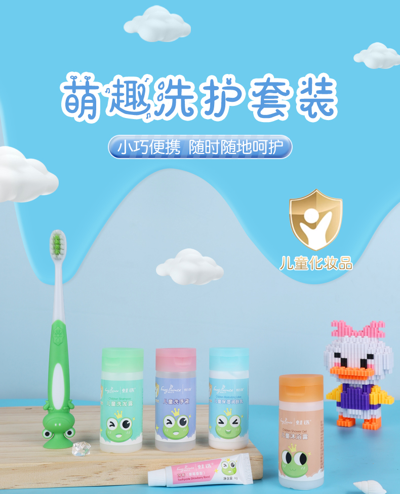 青蛙王子儿童旅行洗漱套装洗发水沐浴露润肤乳旅行装牙膏牙刷便携