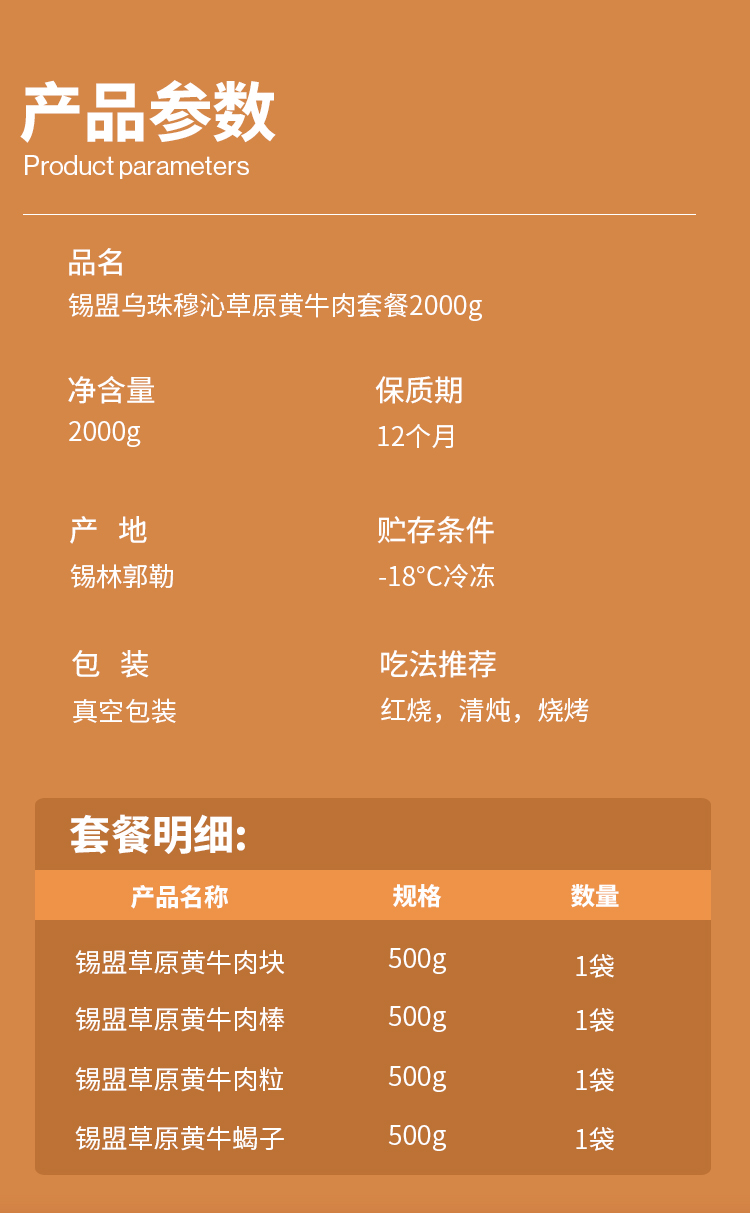 【发出后不支持拦截退货】牧森甄 乌珠穆沁旗草原黄牛肉438型 2000g