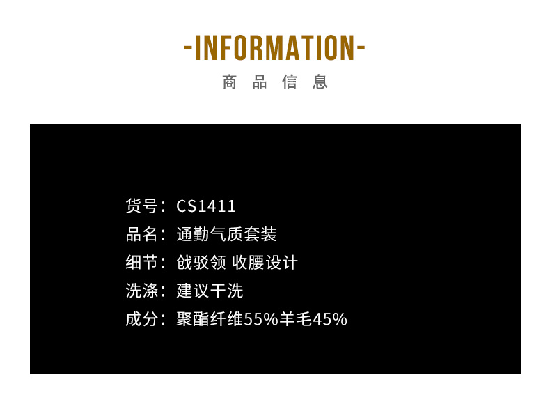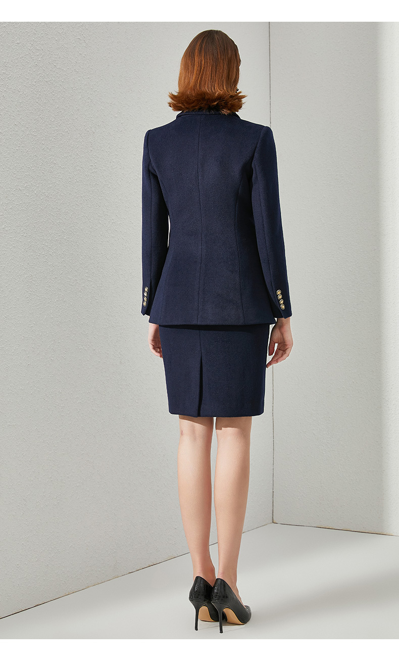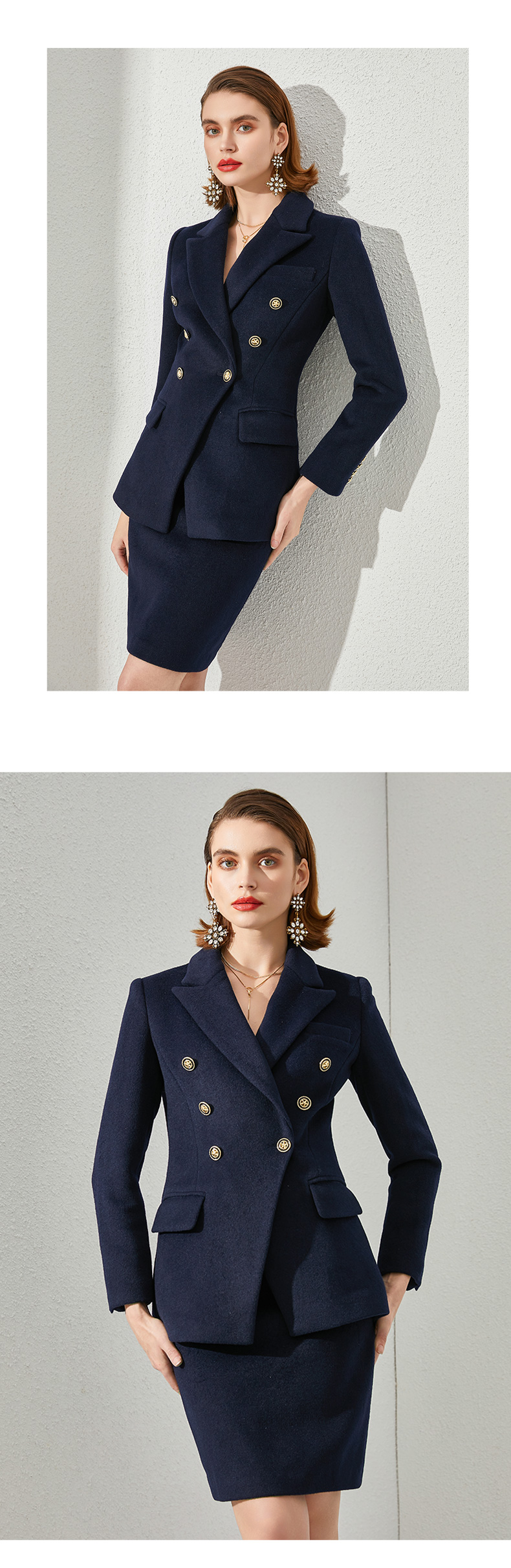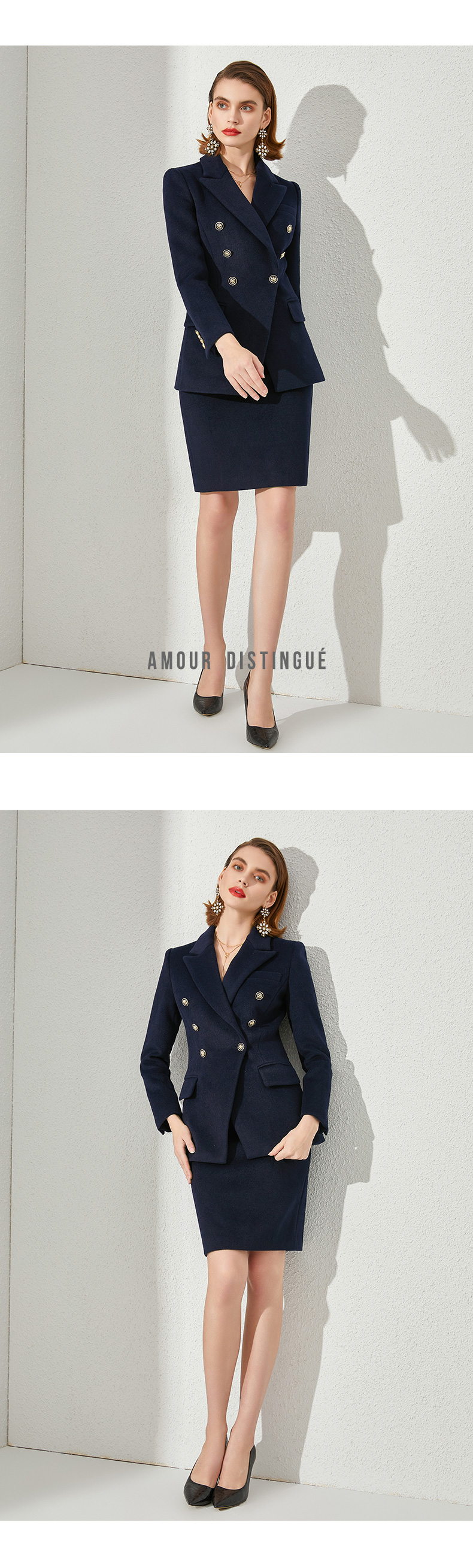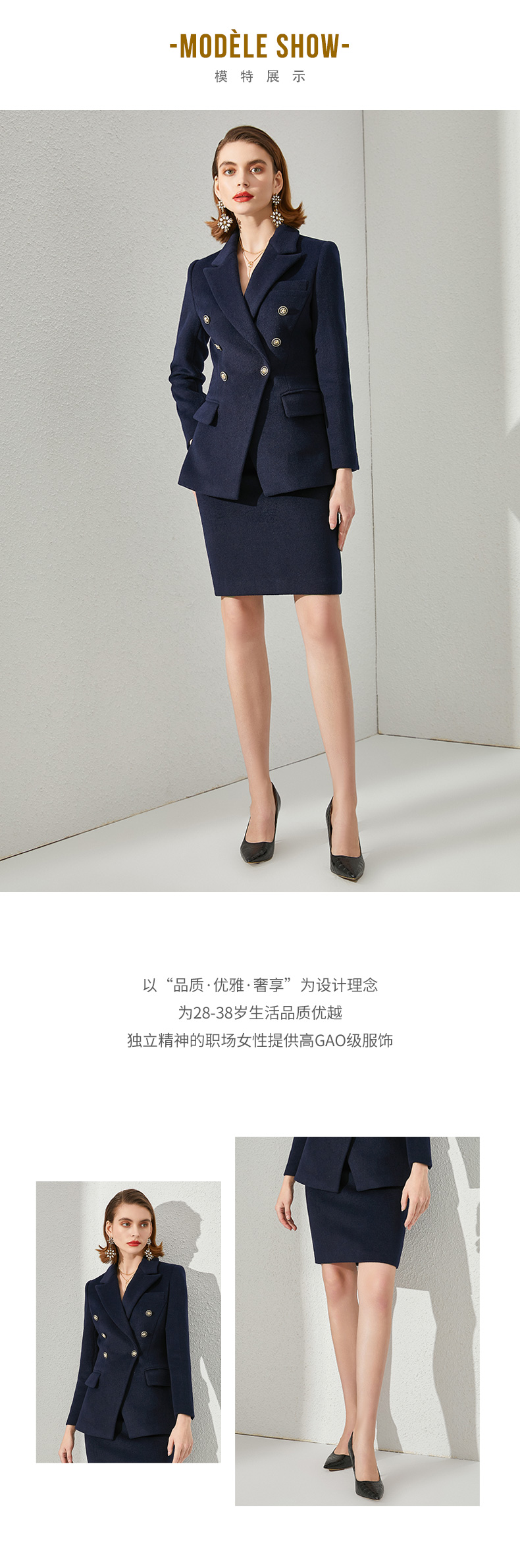 IWY/藏青色工作服套装端售楼部工装女双排扣职业装显瘦西装女高 CS1411