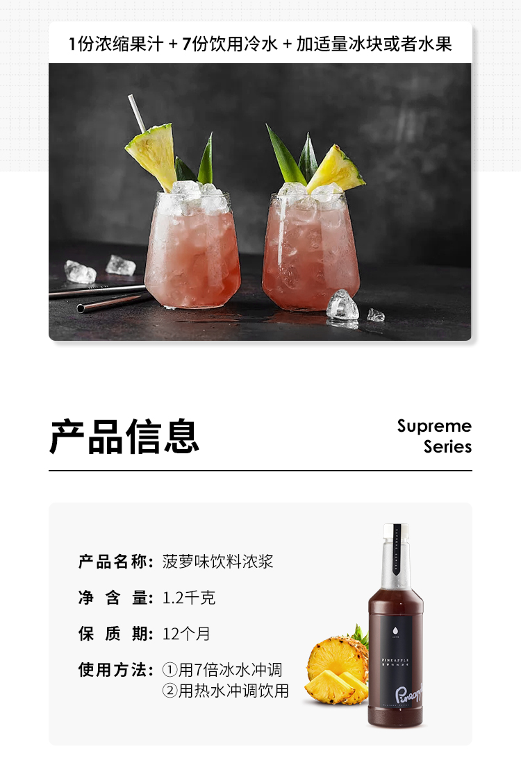 D6 【爵世果汁系列】菠萝饮料浓浆1.2kg/瓶 爵世菠萝汁 调味糖浆 菠萝果汁 6瓶/箱