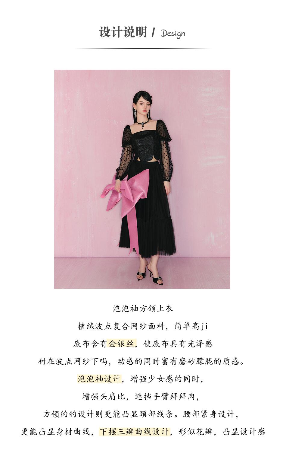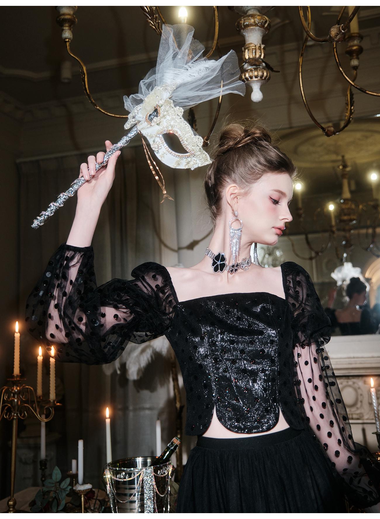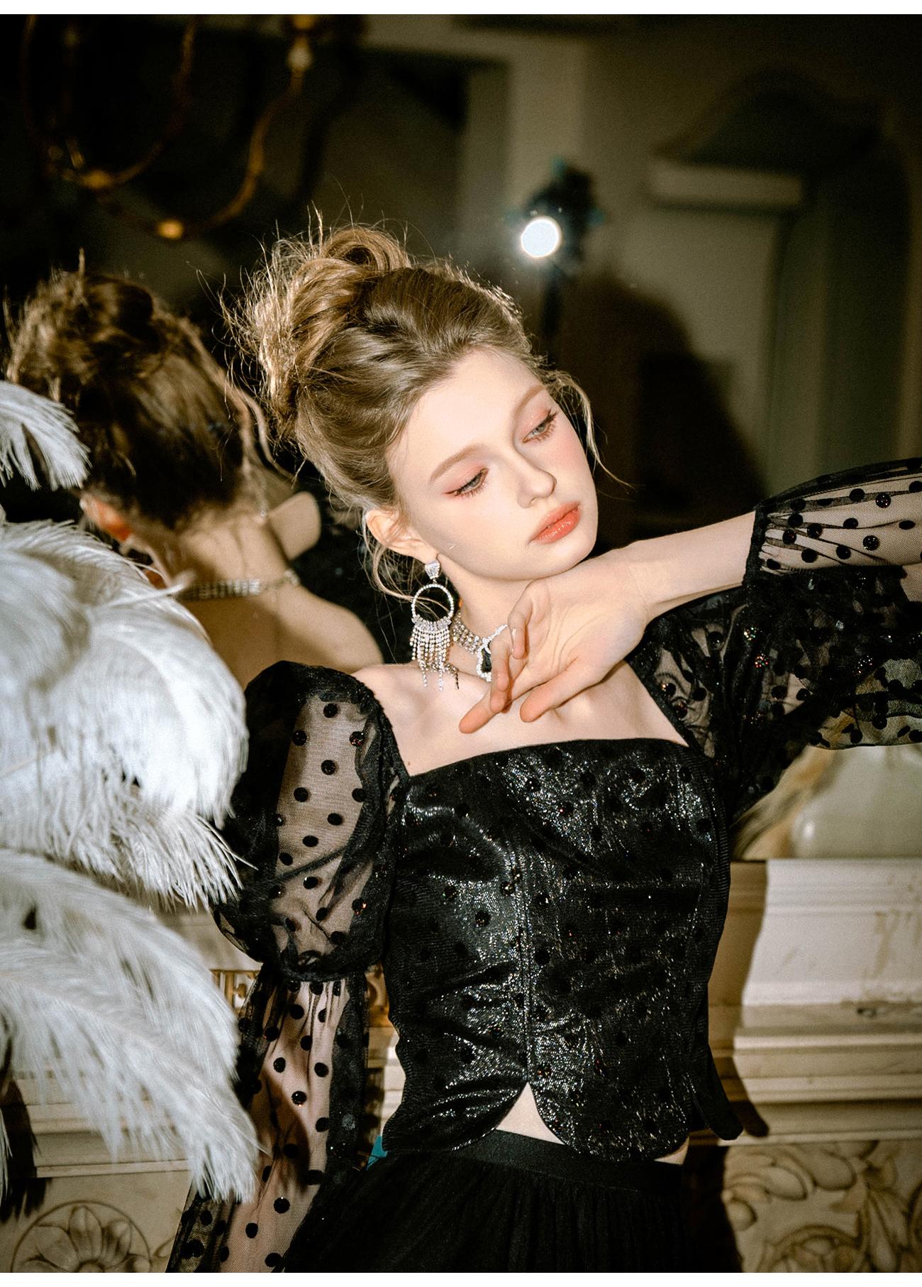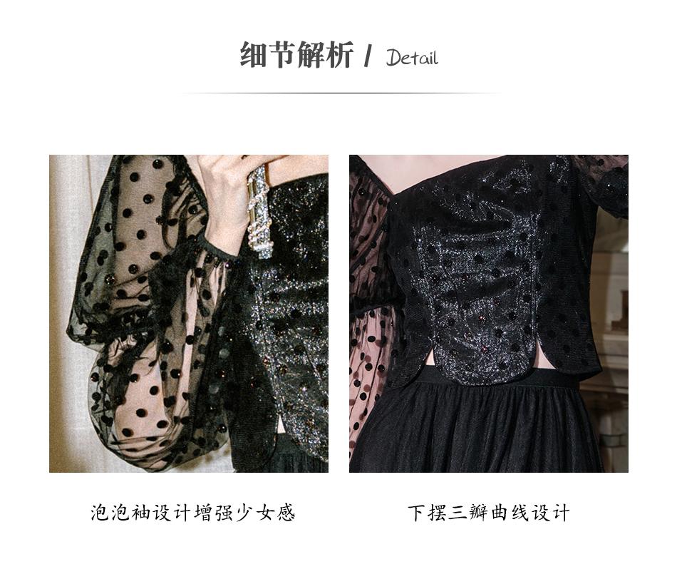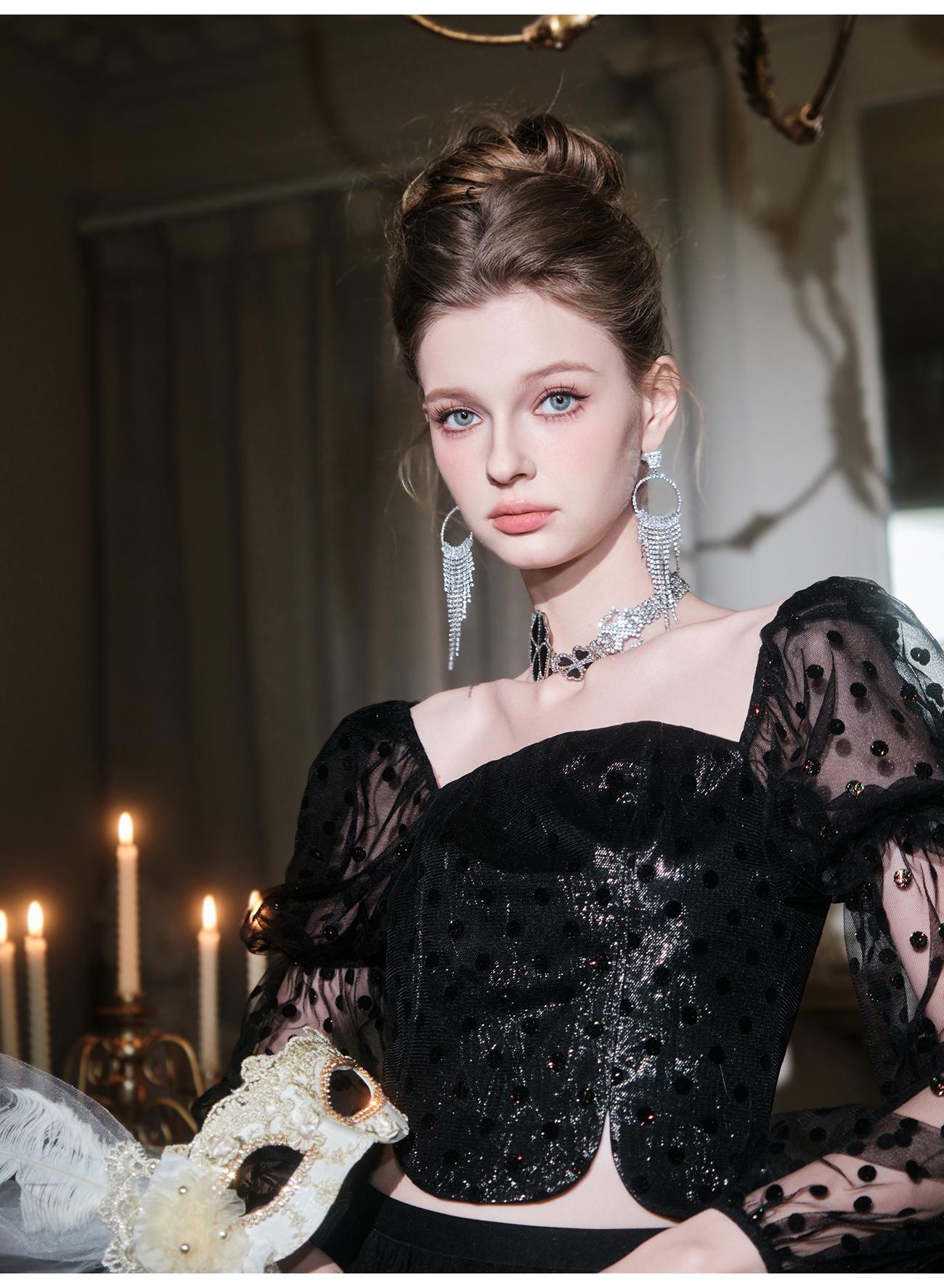 【孤品样衣,不退不换】【雾港黑珍珠】法式植绒波点复合网纱含金银丝上衣