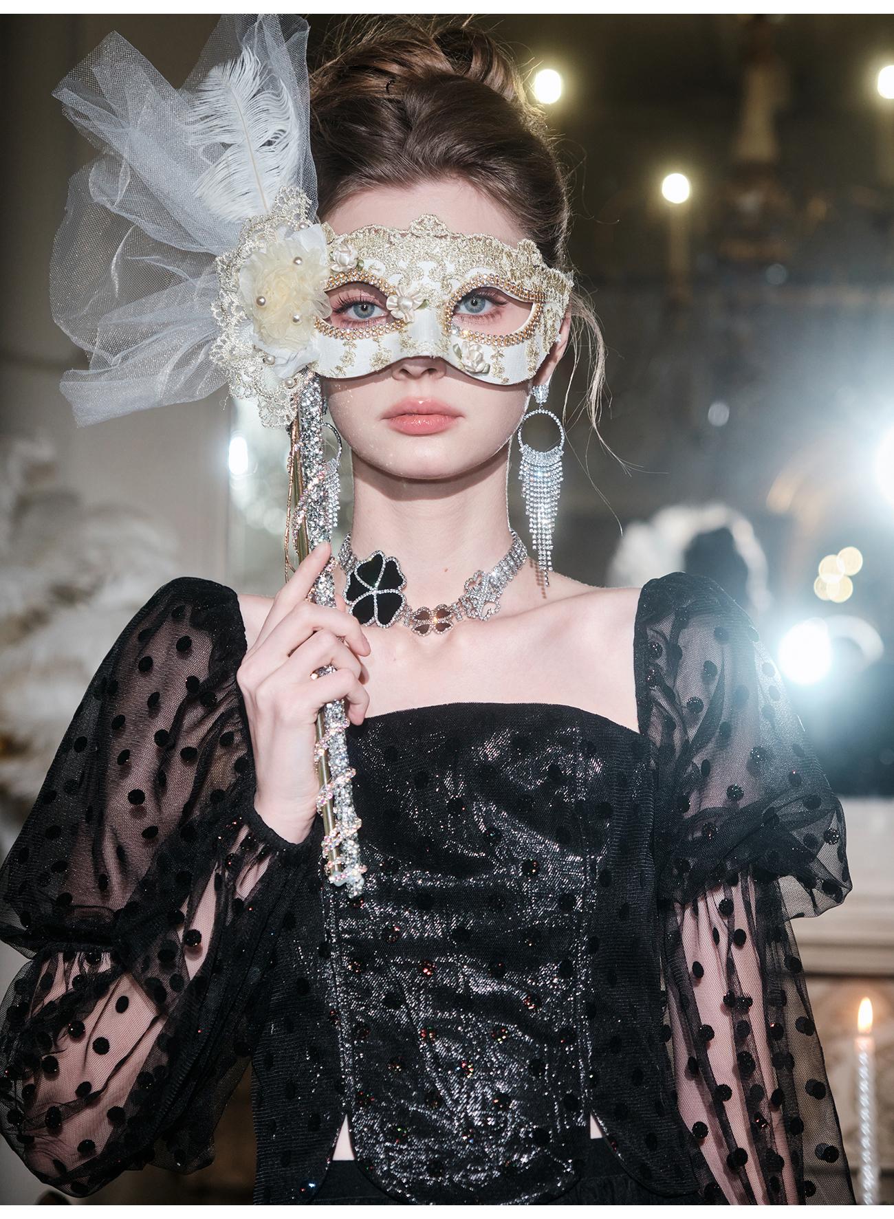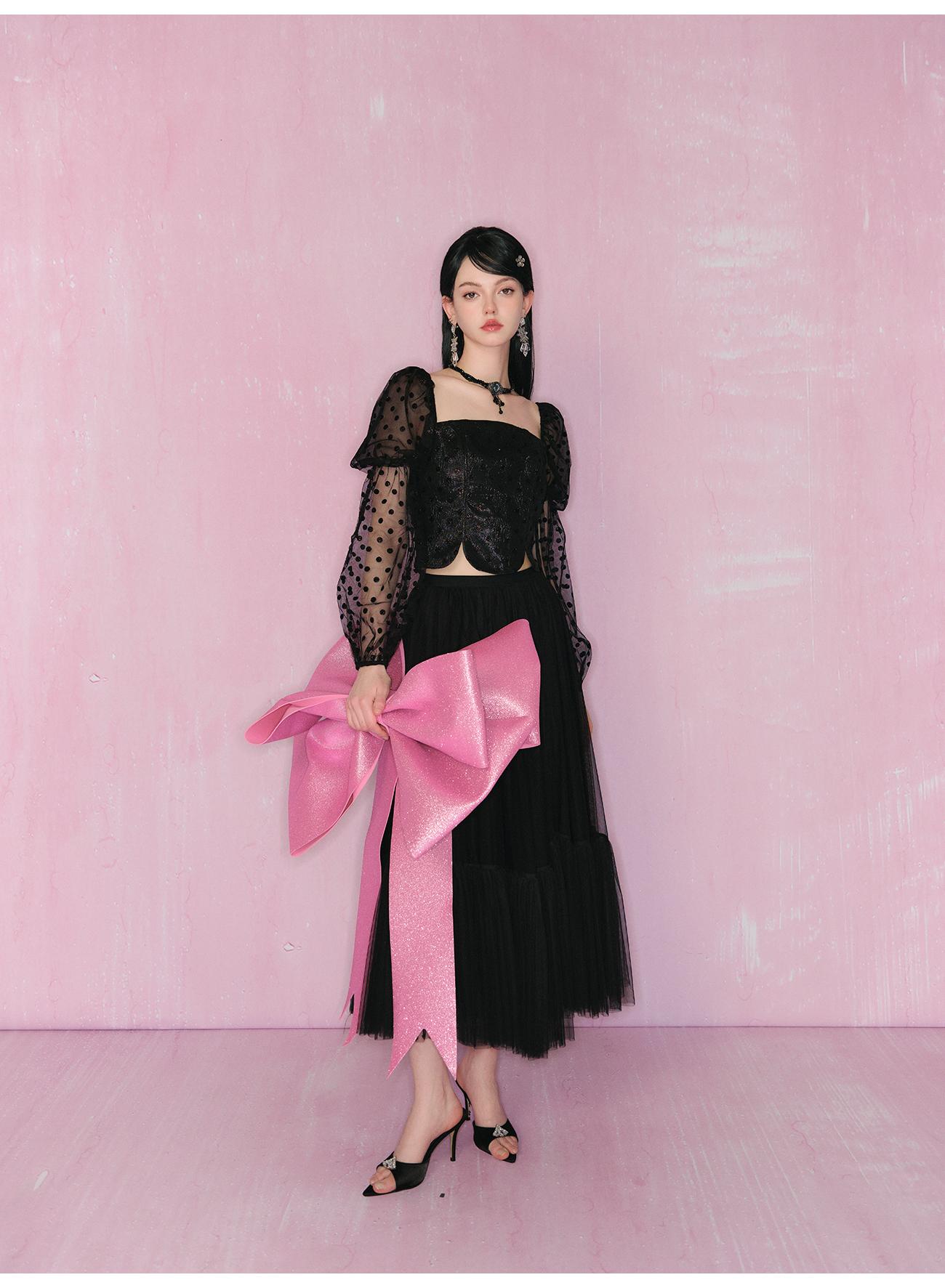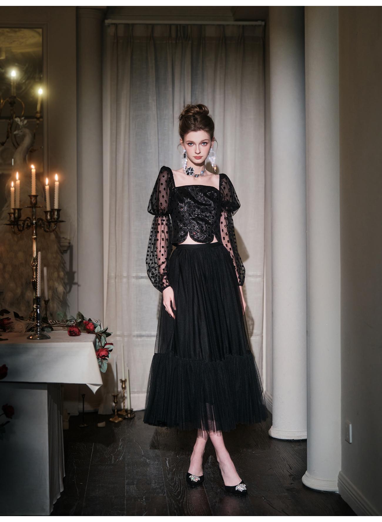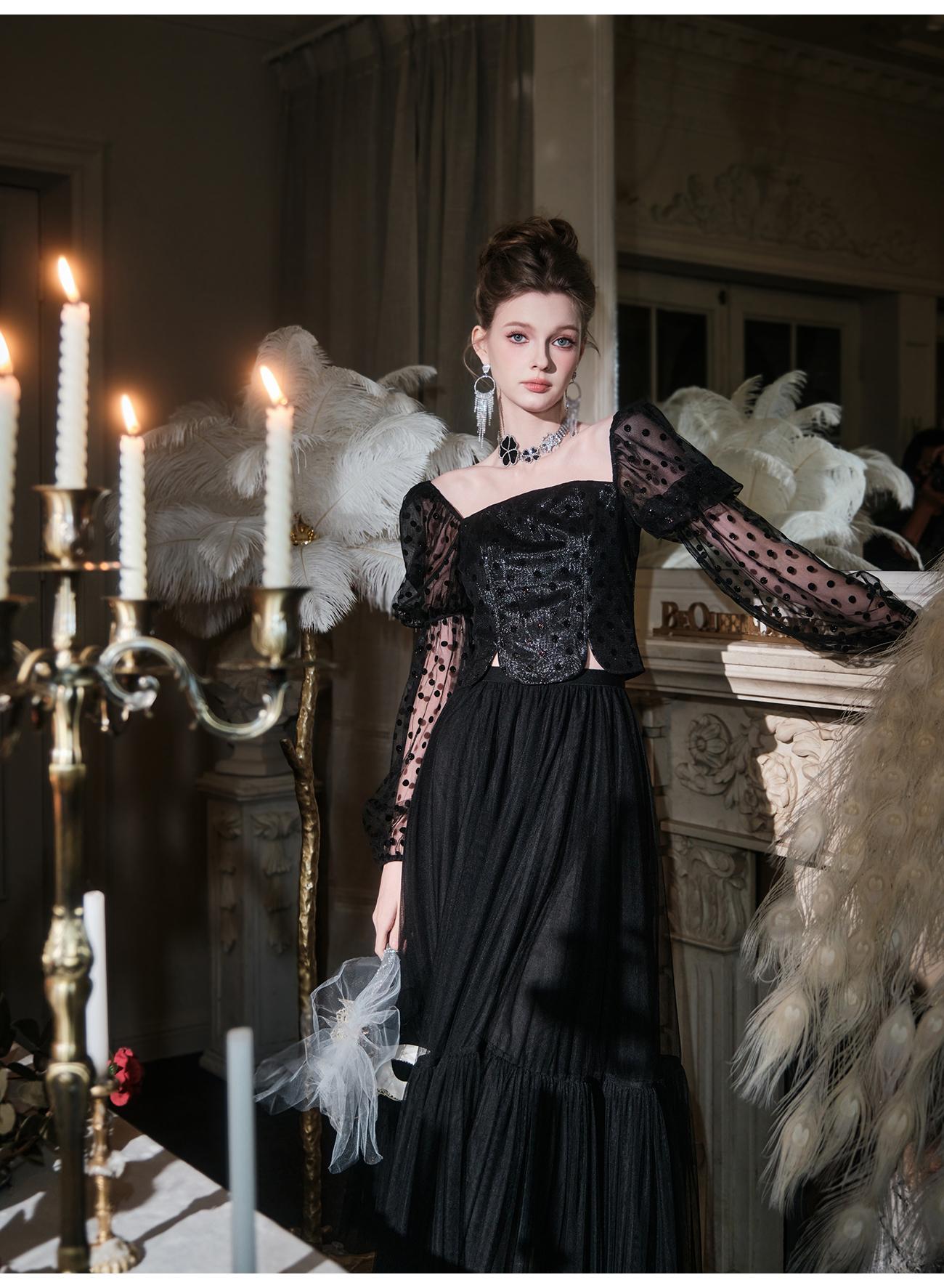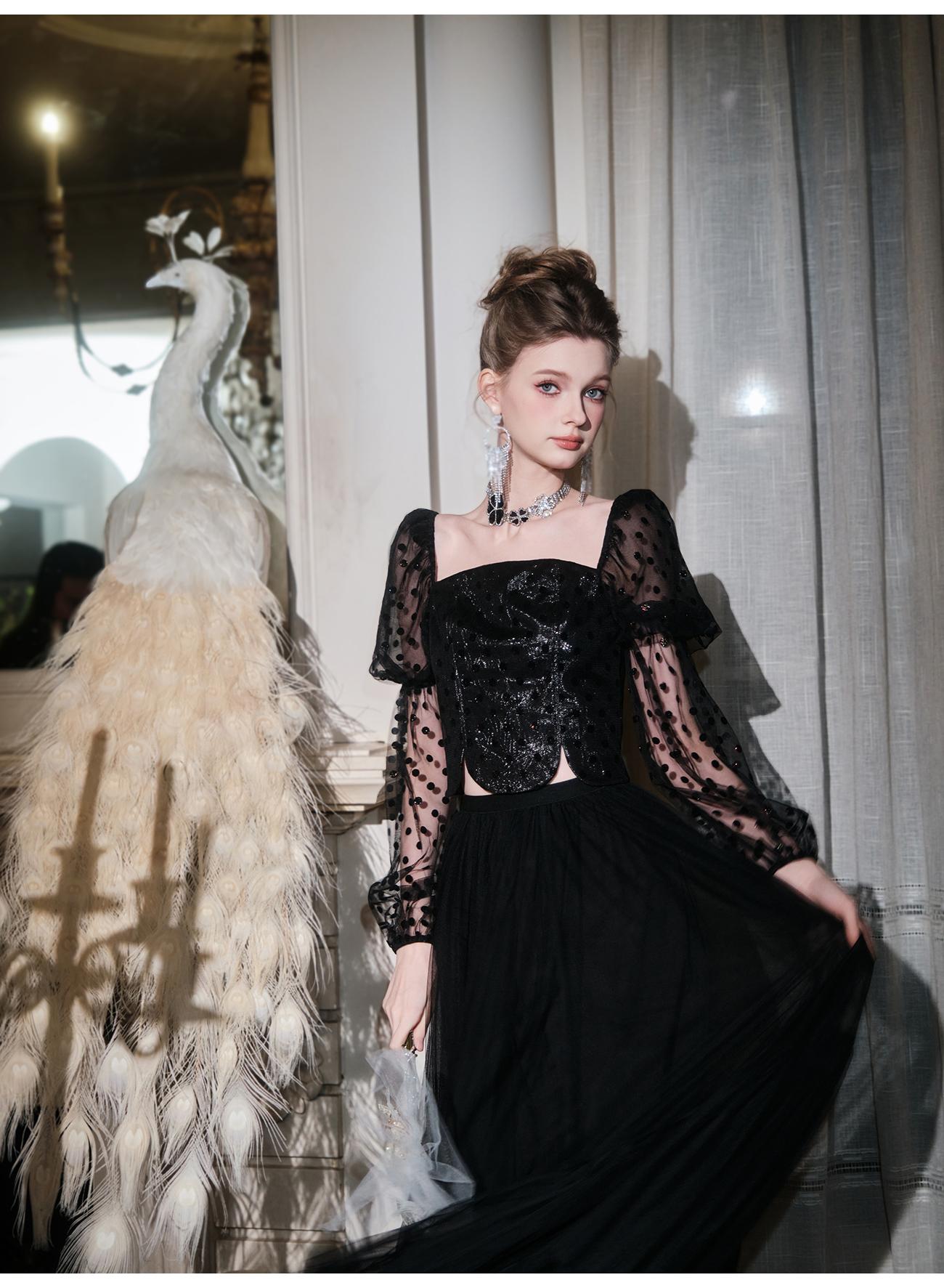 【孤品样衣,不退不换】【雾港黑珍珠】法式植绒波点复合网纱含金银丝上衣