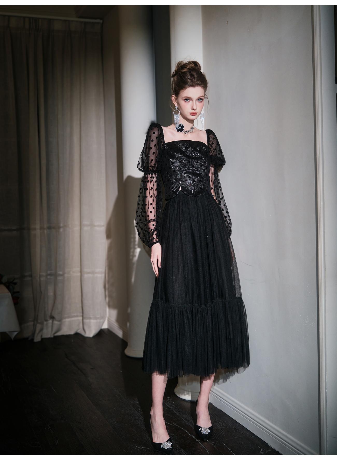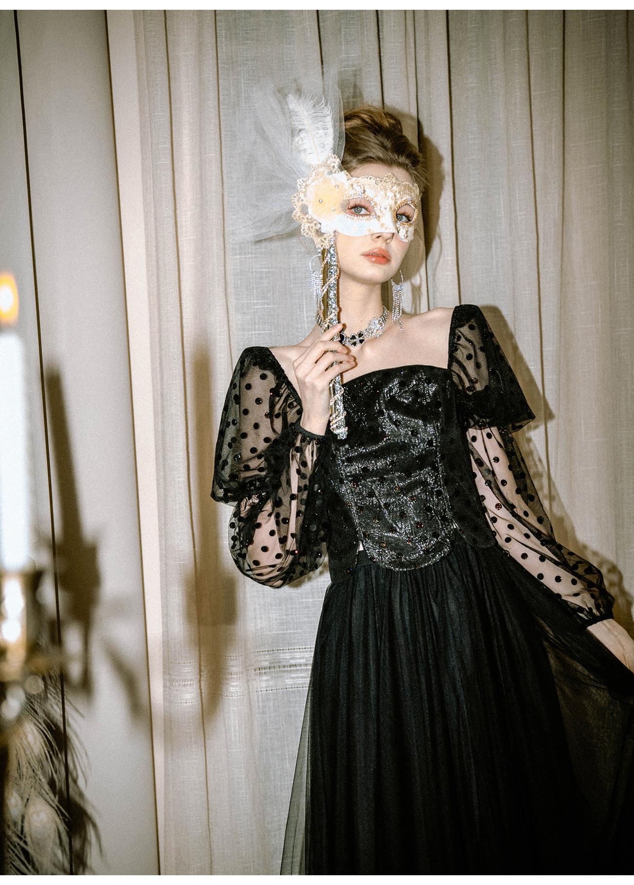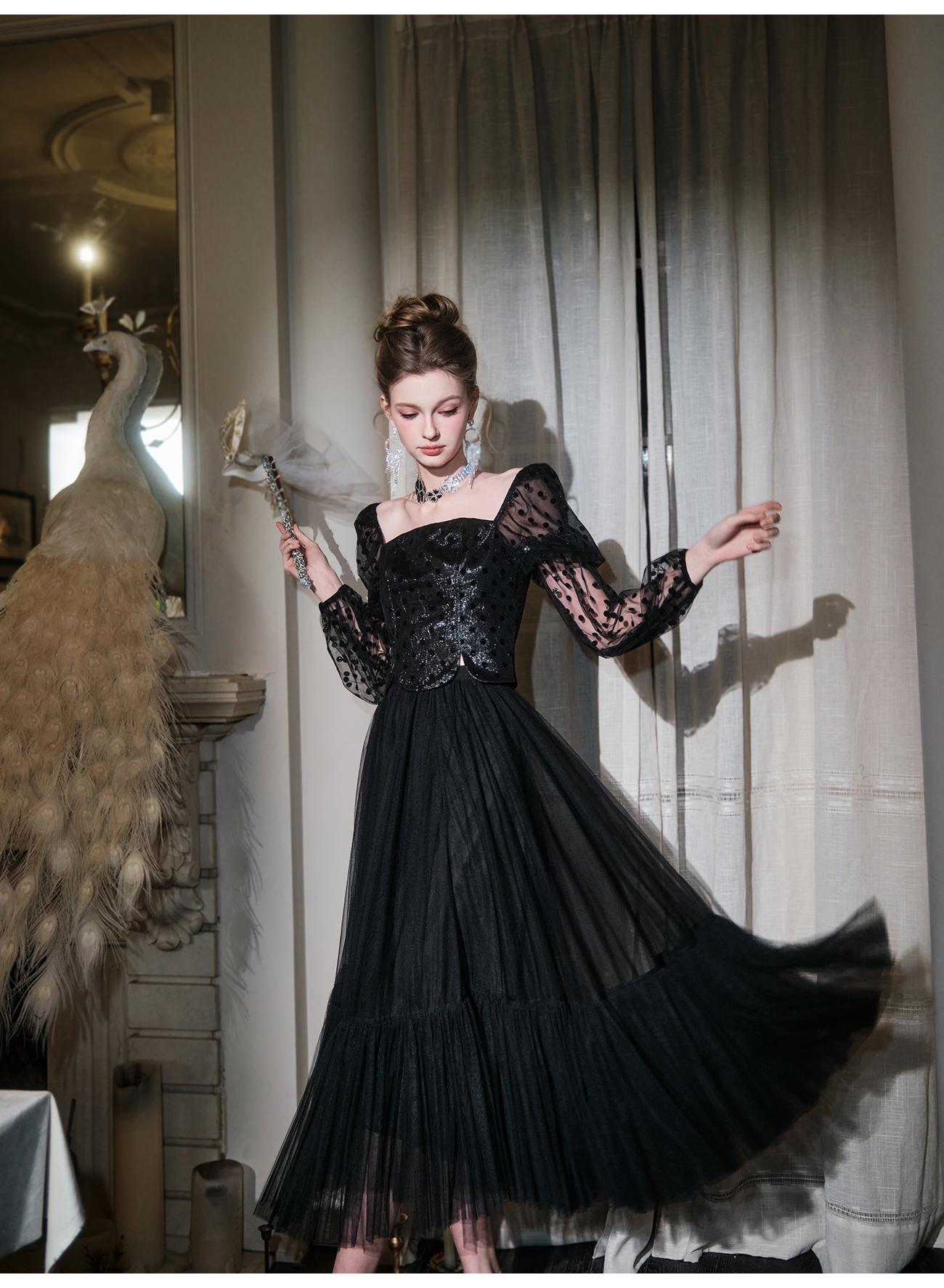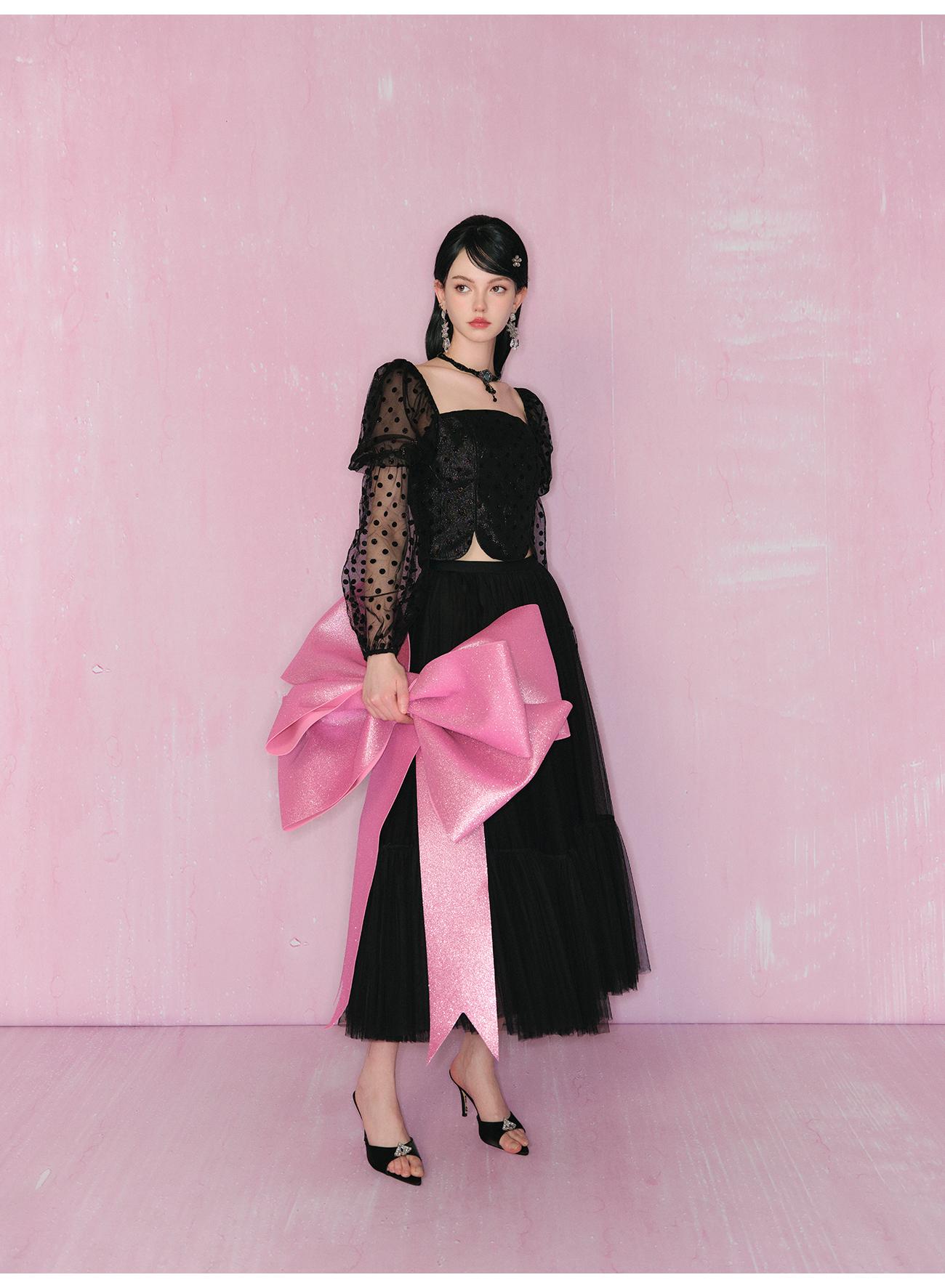【孤品样衣,不退不换】【雾港黑珍珠】法式植绒波点复合网纱含金银丝上衣