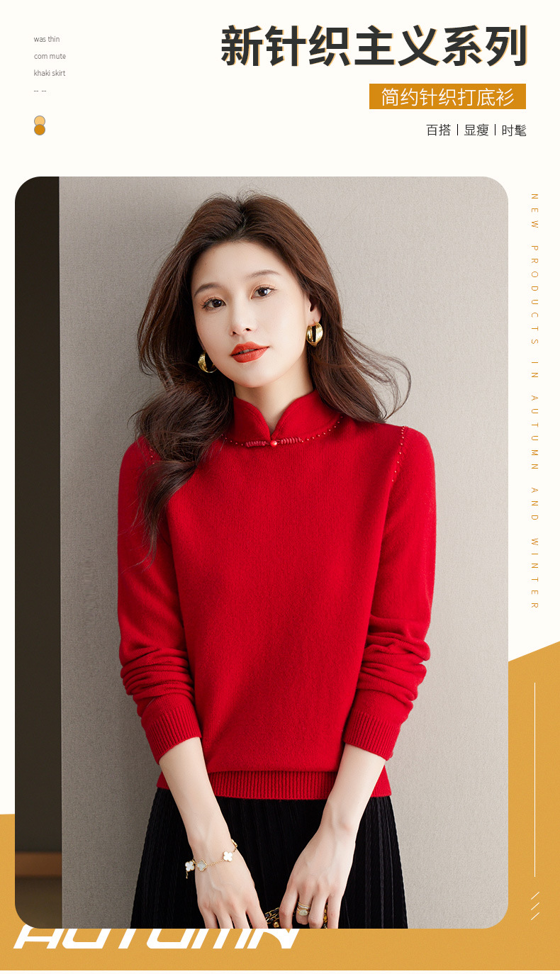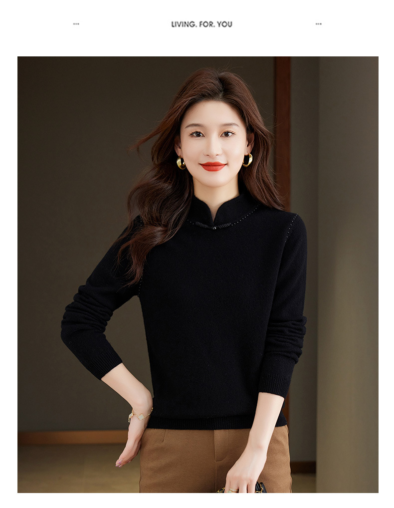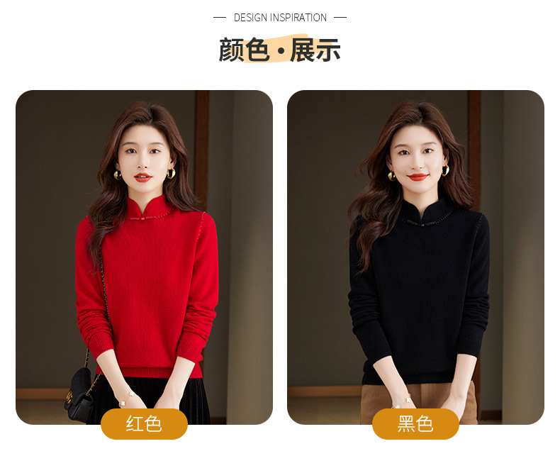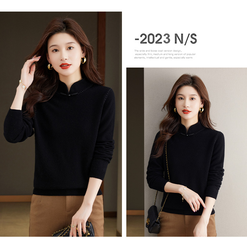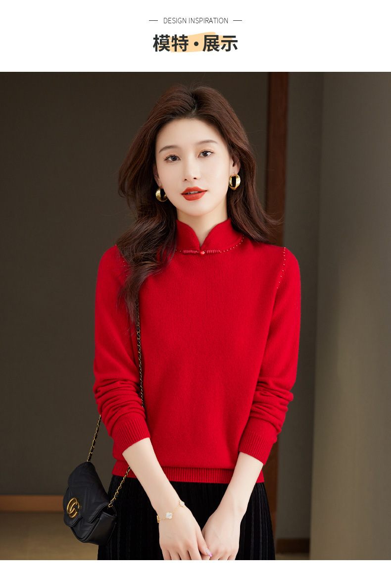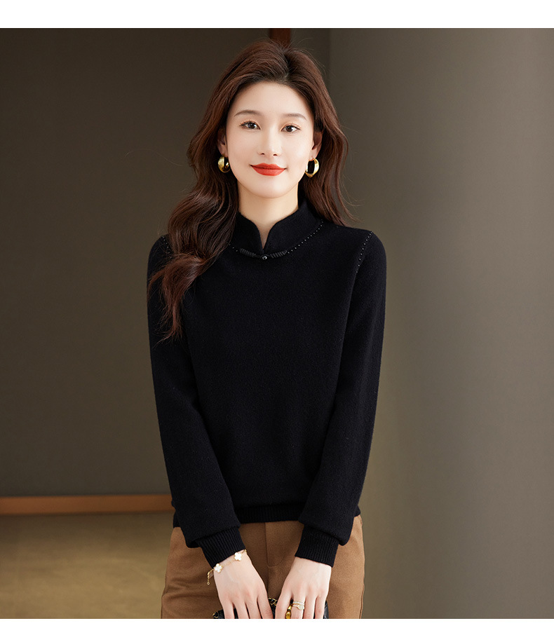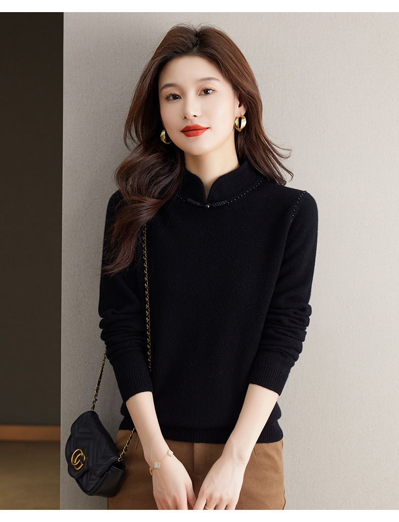 旗袍领100纯羊毛内搭,秋冬新款中式国风短款打底衫CC-101-70997