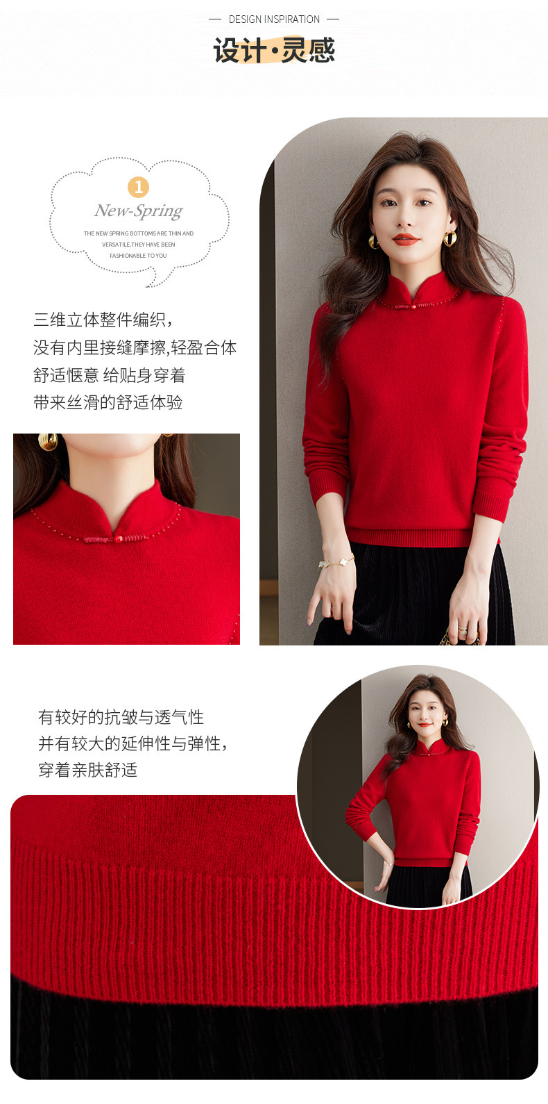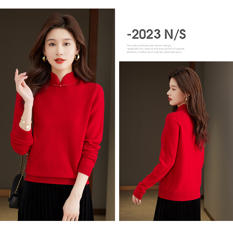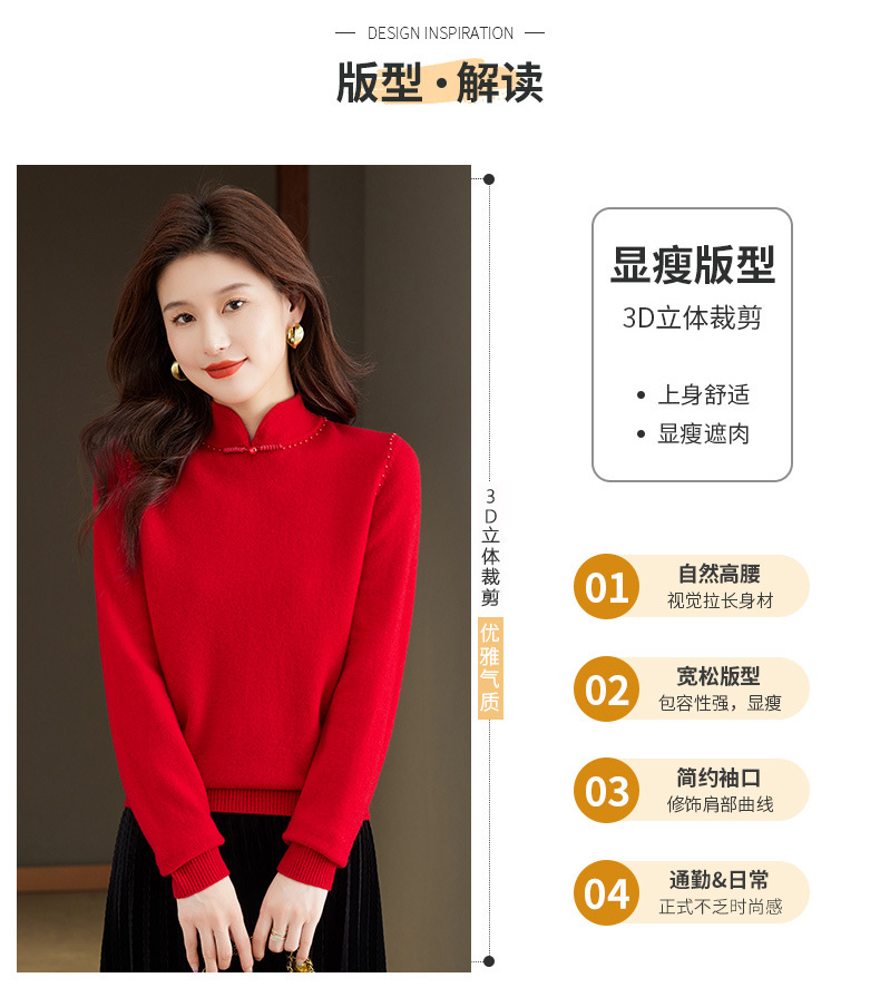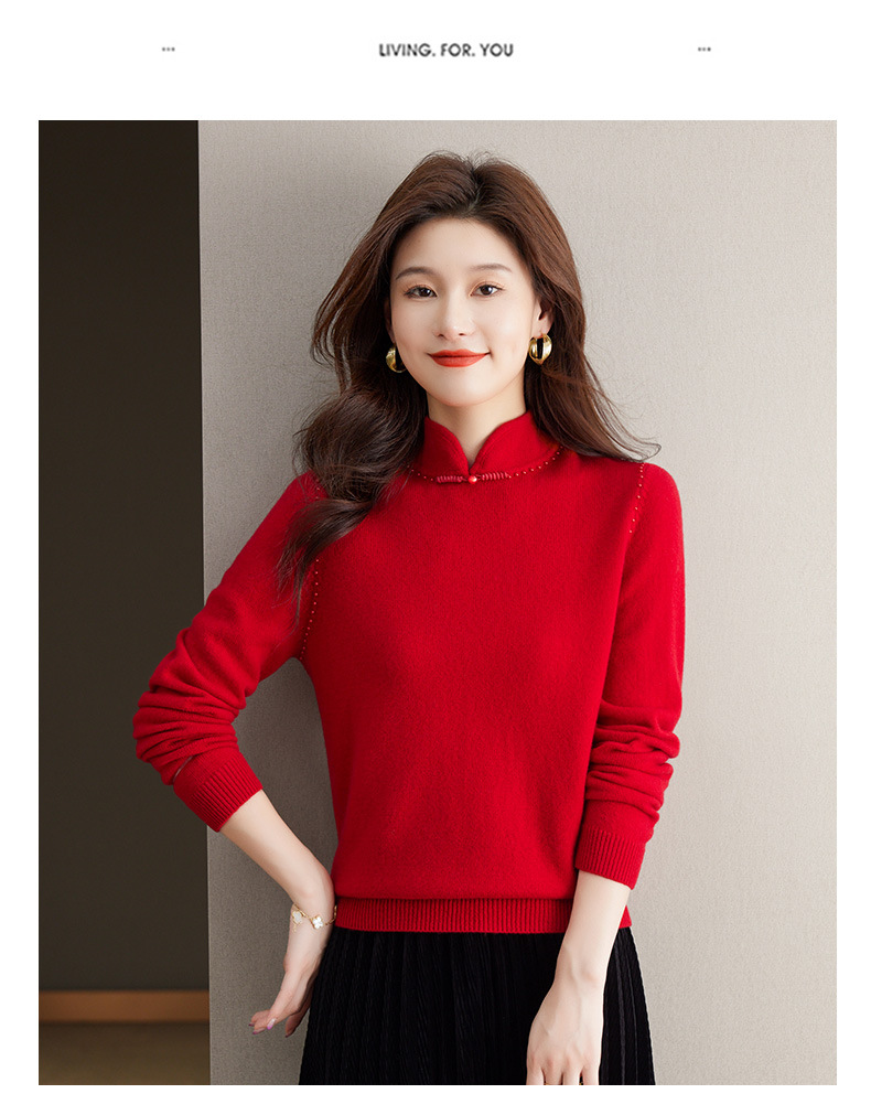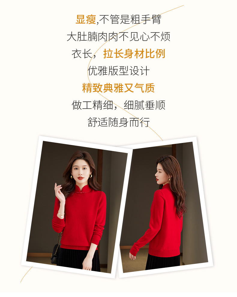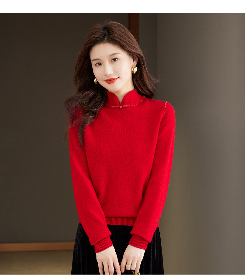 旗袍领100纯羊毛内搭,秋冬新款中式国风短款打底衫CC-101-70997