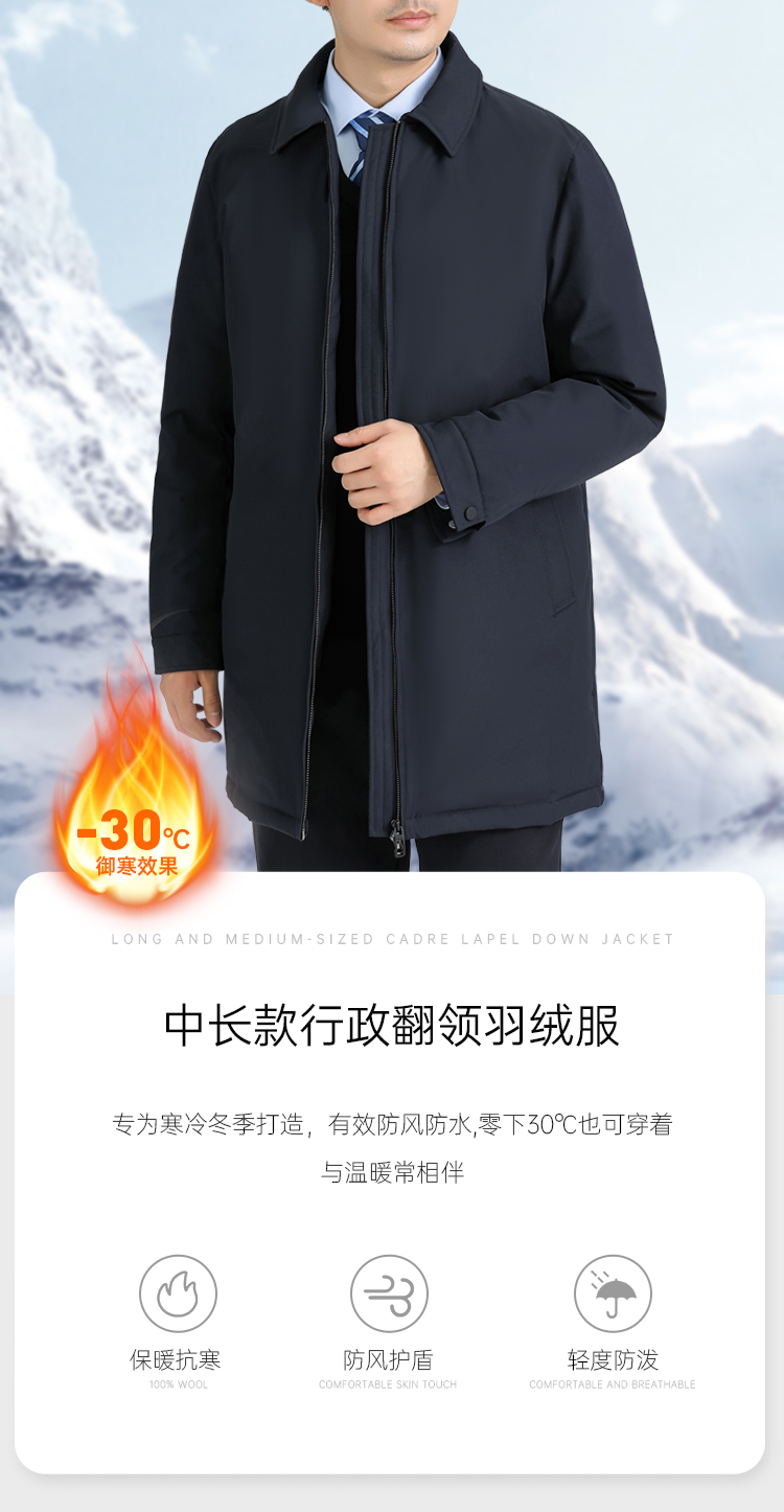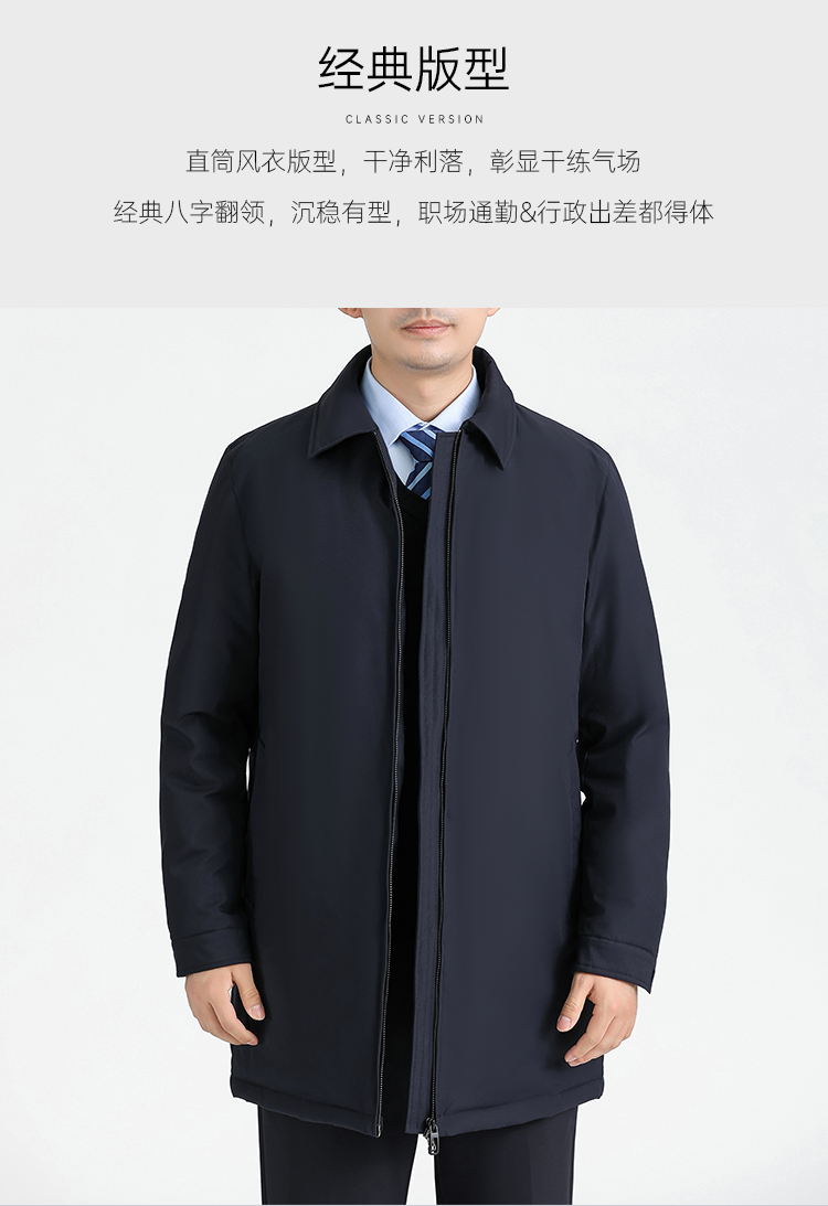 【实付满399送保温杯】【中长款翻领羽绒服】 防风保暖羽绒外套 中长款白鸭绒通勤棉服