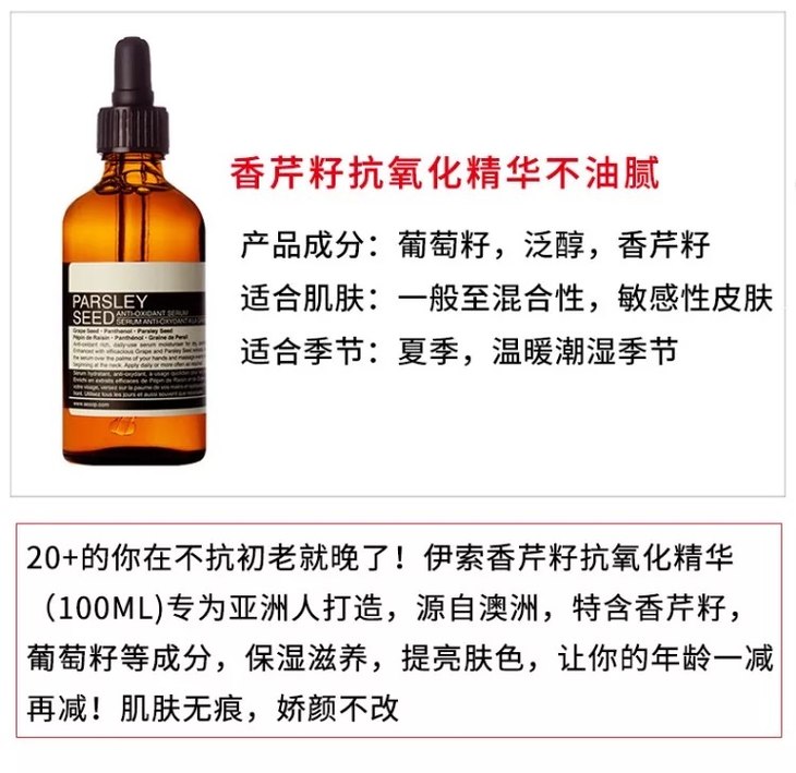 【现货】Aesop伊索香芹籽精华液 面部精华保湿补水提亮肤色