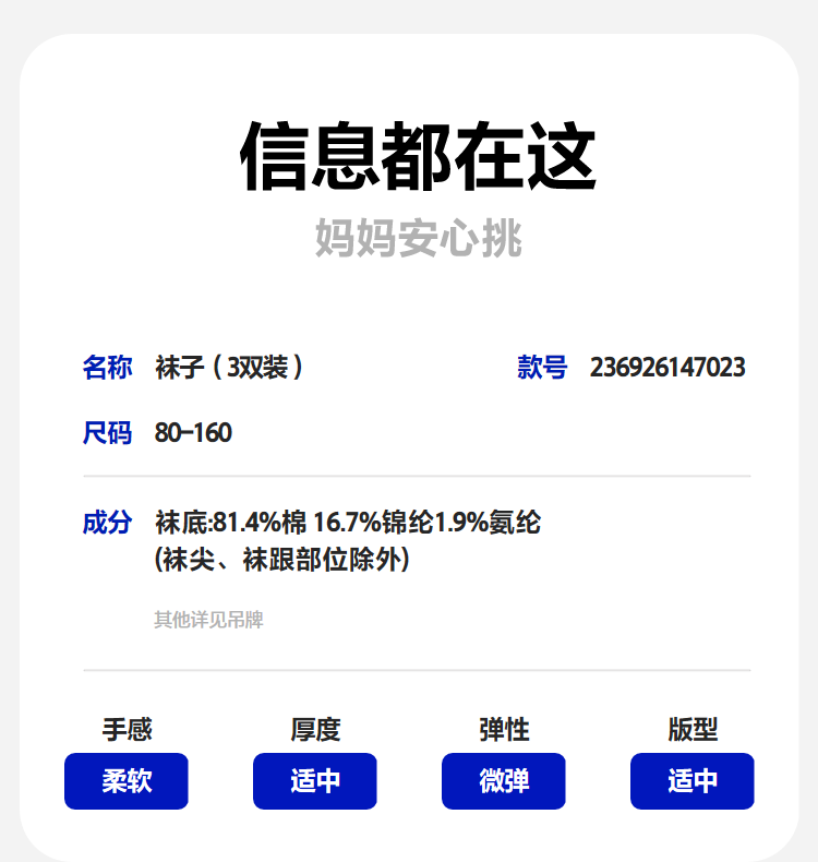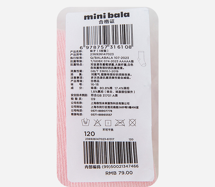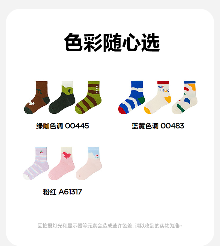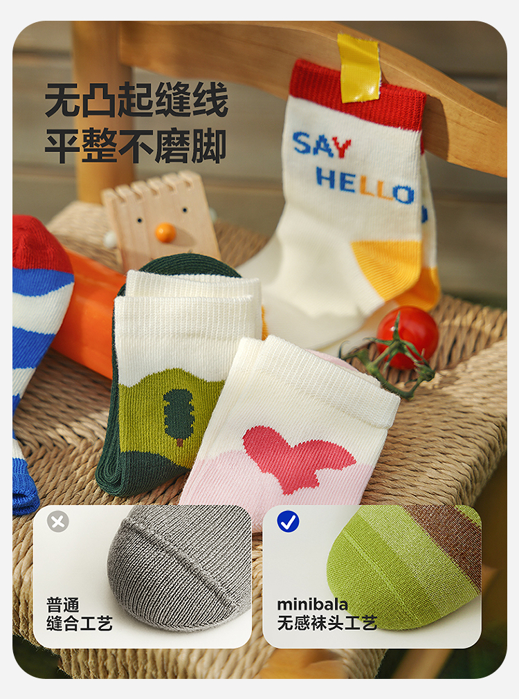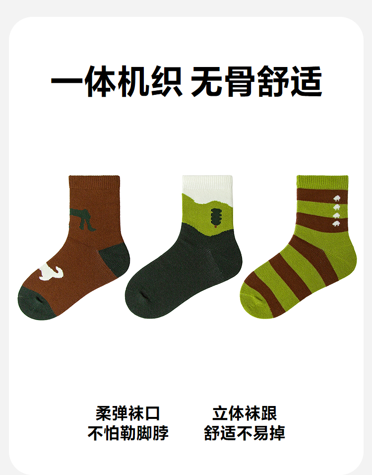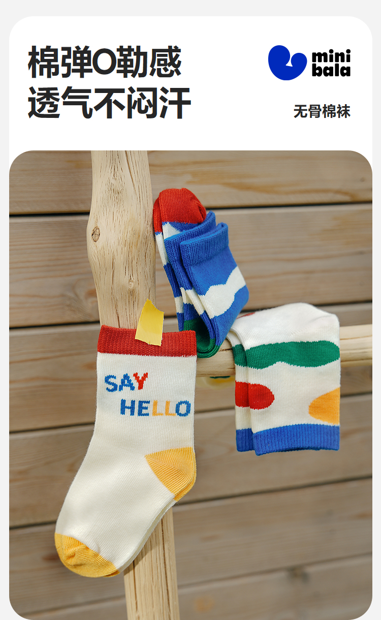 【3双装】迷你巴拉巴拉宝宝袜子儿童柔软棉弹萌趣中筒袜子春秋款