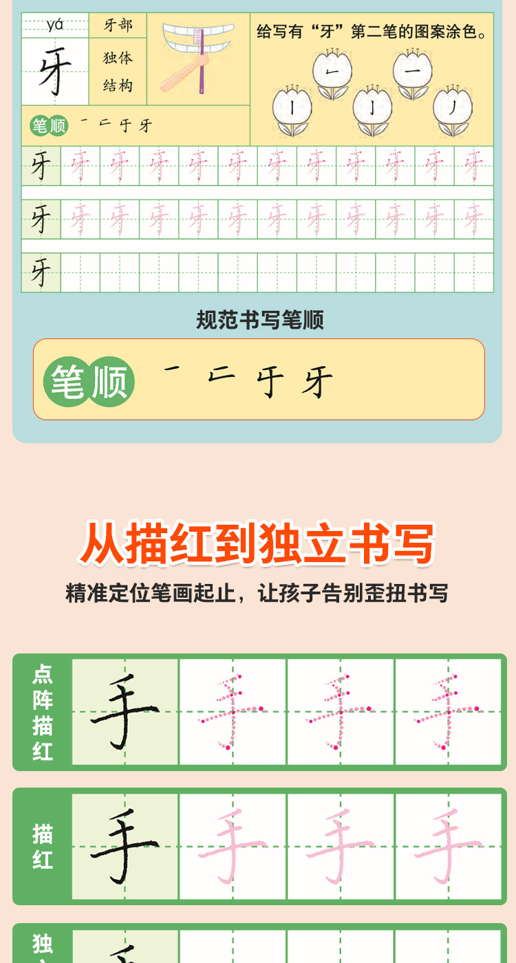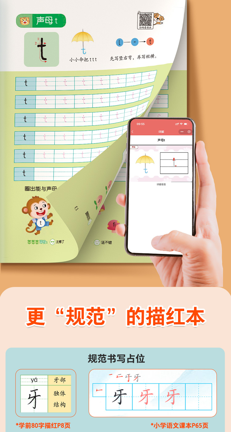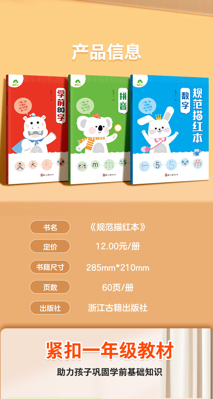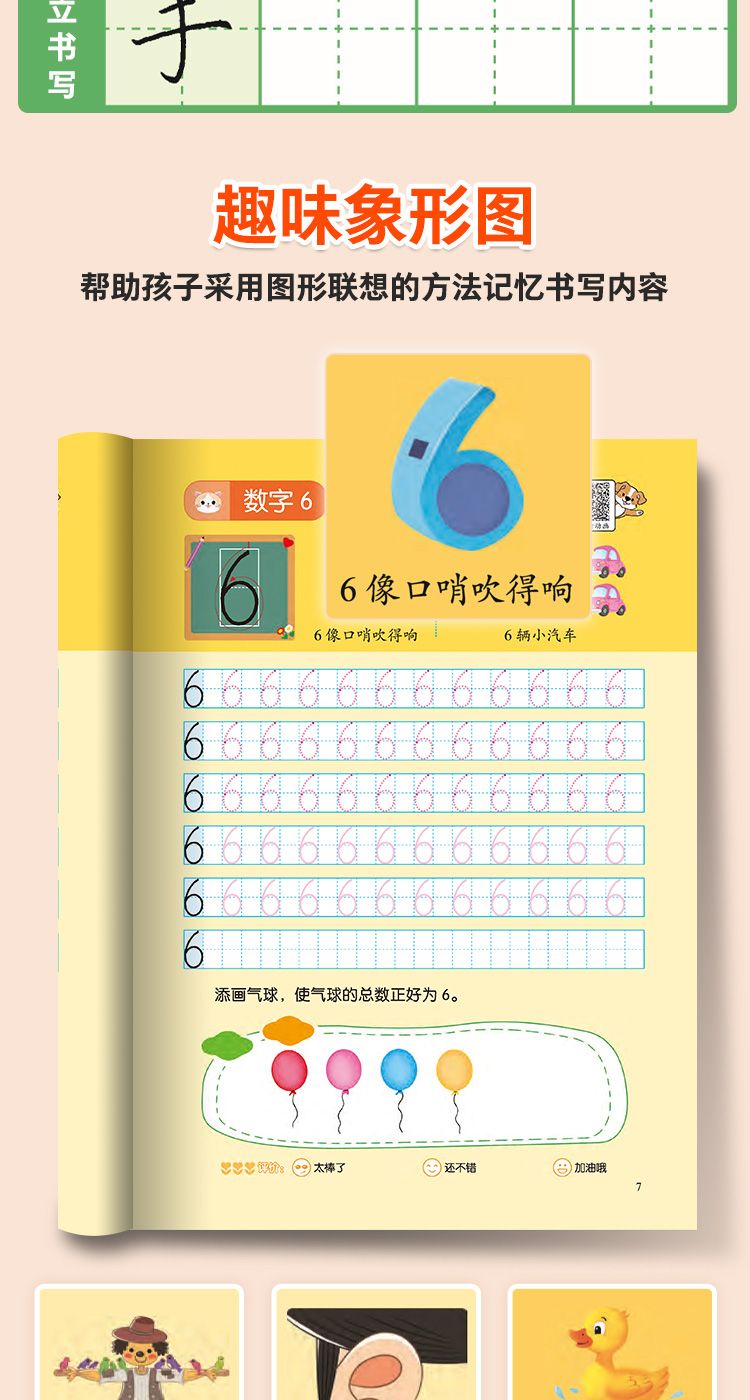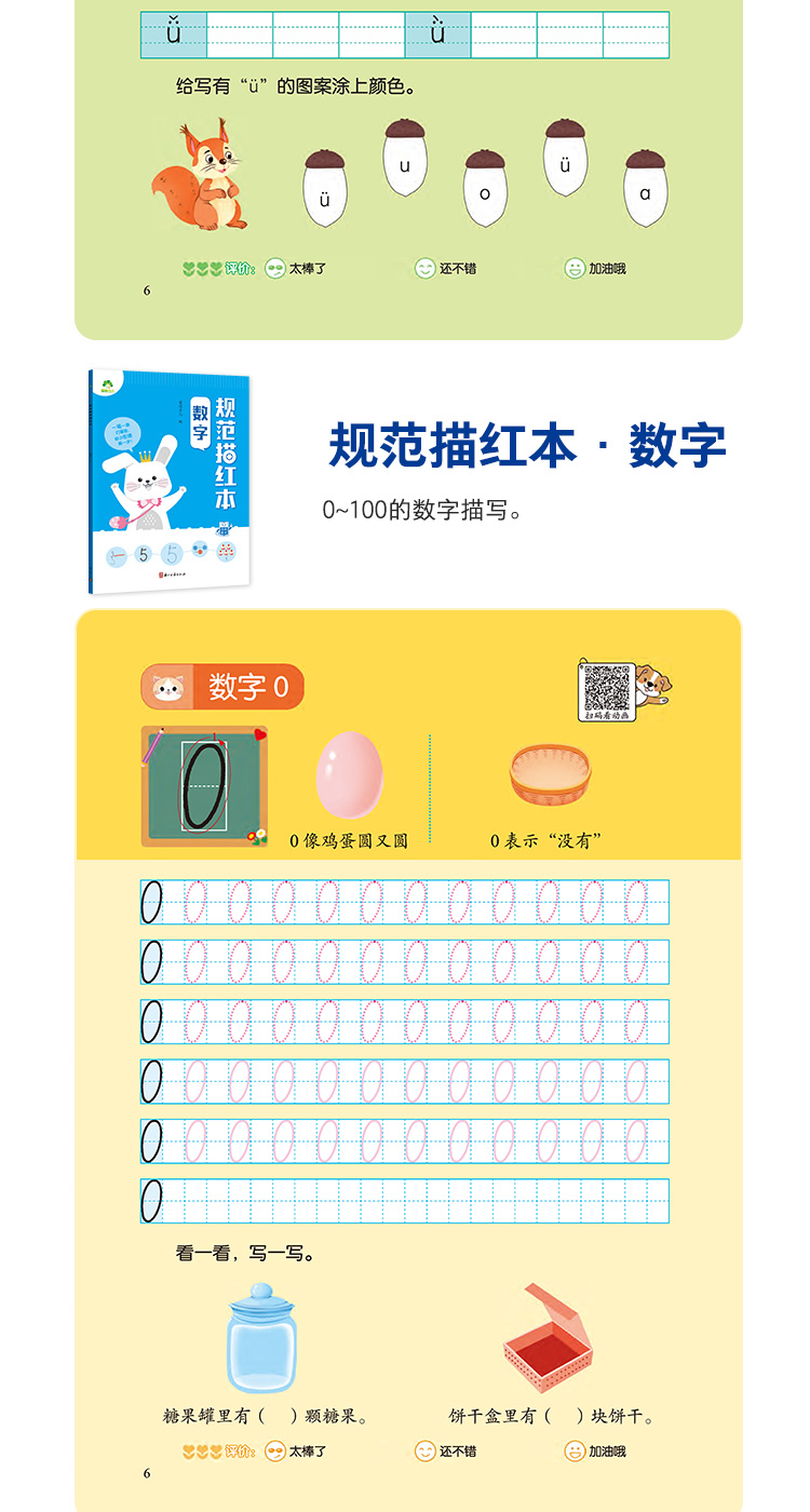 爱德少儿规范练字描红本3-7岁儿童幼升小学前描红临摹规范书写数学拼音一年级基础汉字教学趣味图解动画视频教学规范描红本