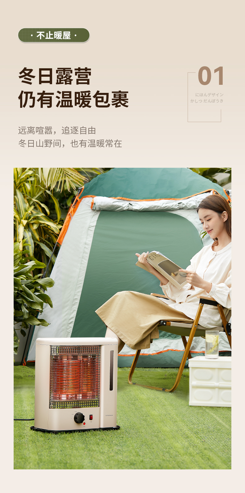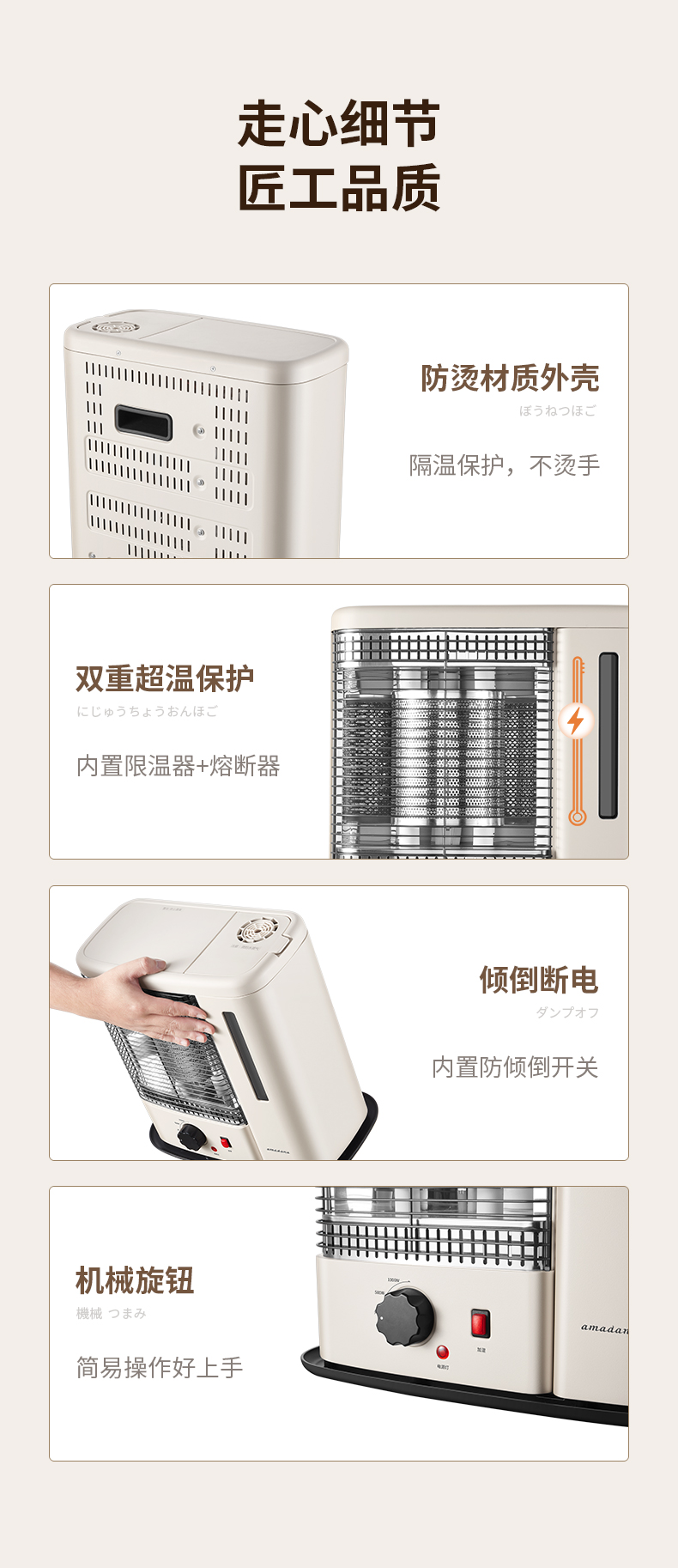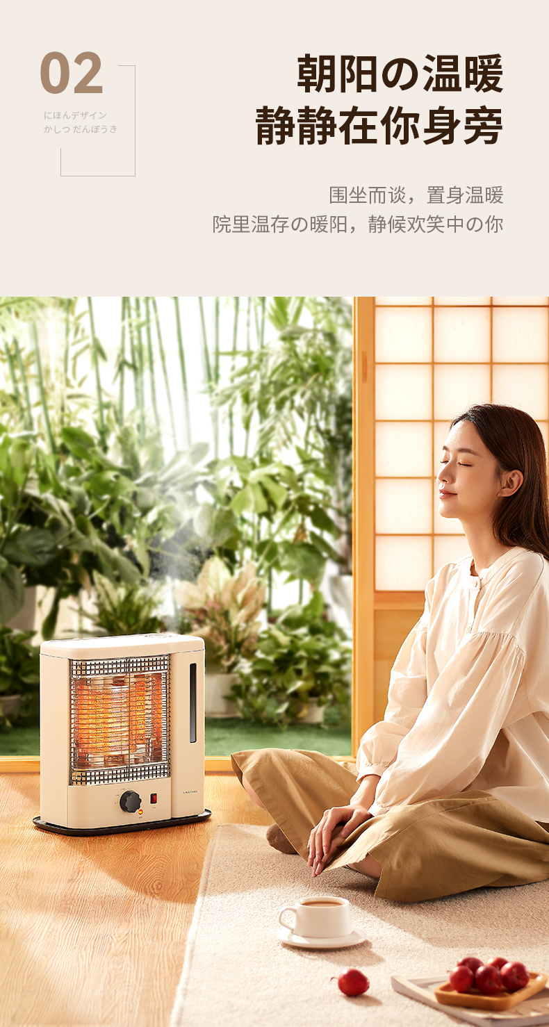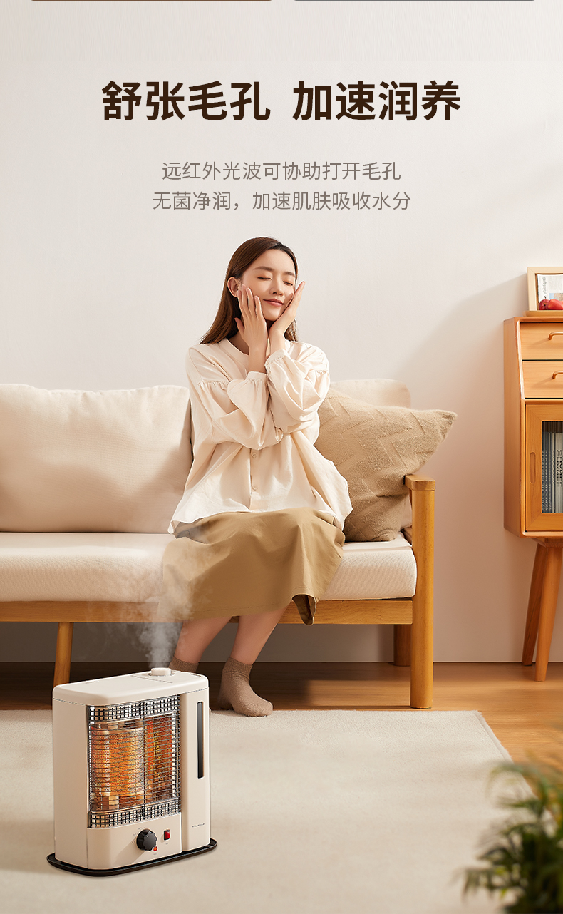 【控制方式】取暖旋钮开关+加湿按键开关+防干烧复位开关