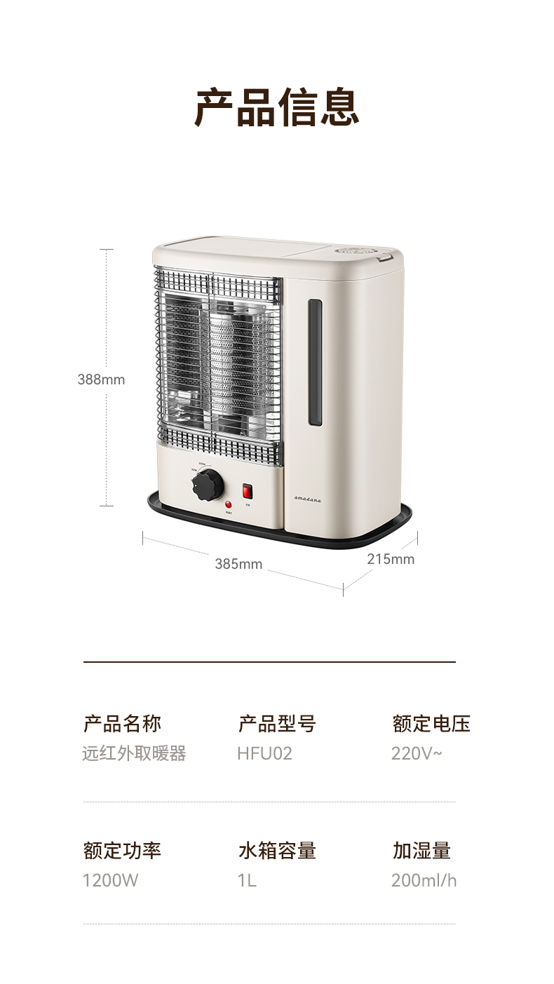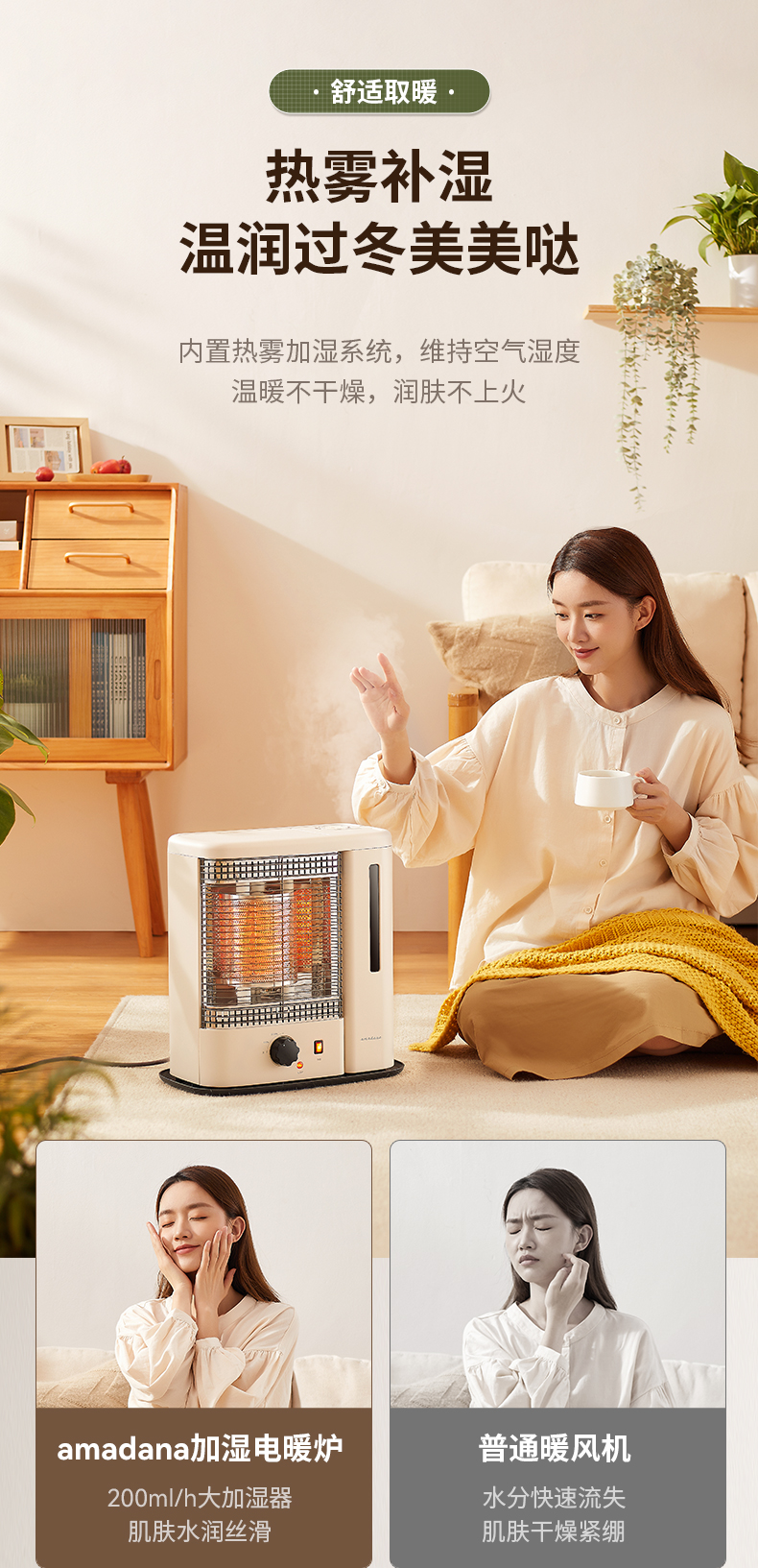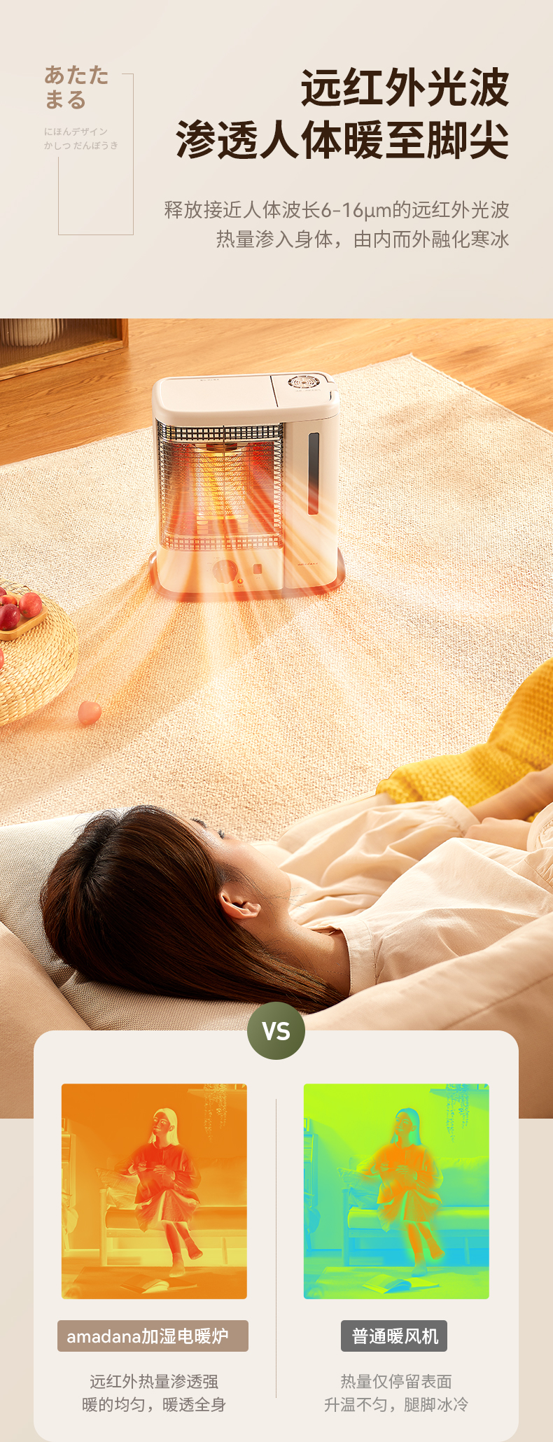 48小时发货【amadana远红外热加湿电暖器-HFU02】远红外暖光温暖整个冬天~陶瓷镍铬发热体,寒气即刻驱散,热雾补湿,温润过冬美美哒~发热黑科技,省电60%