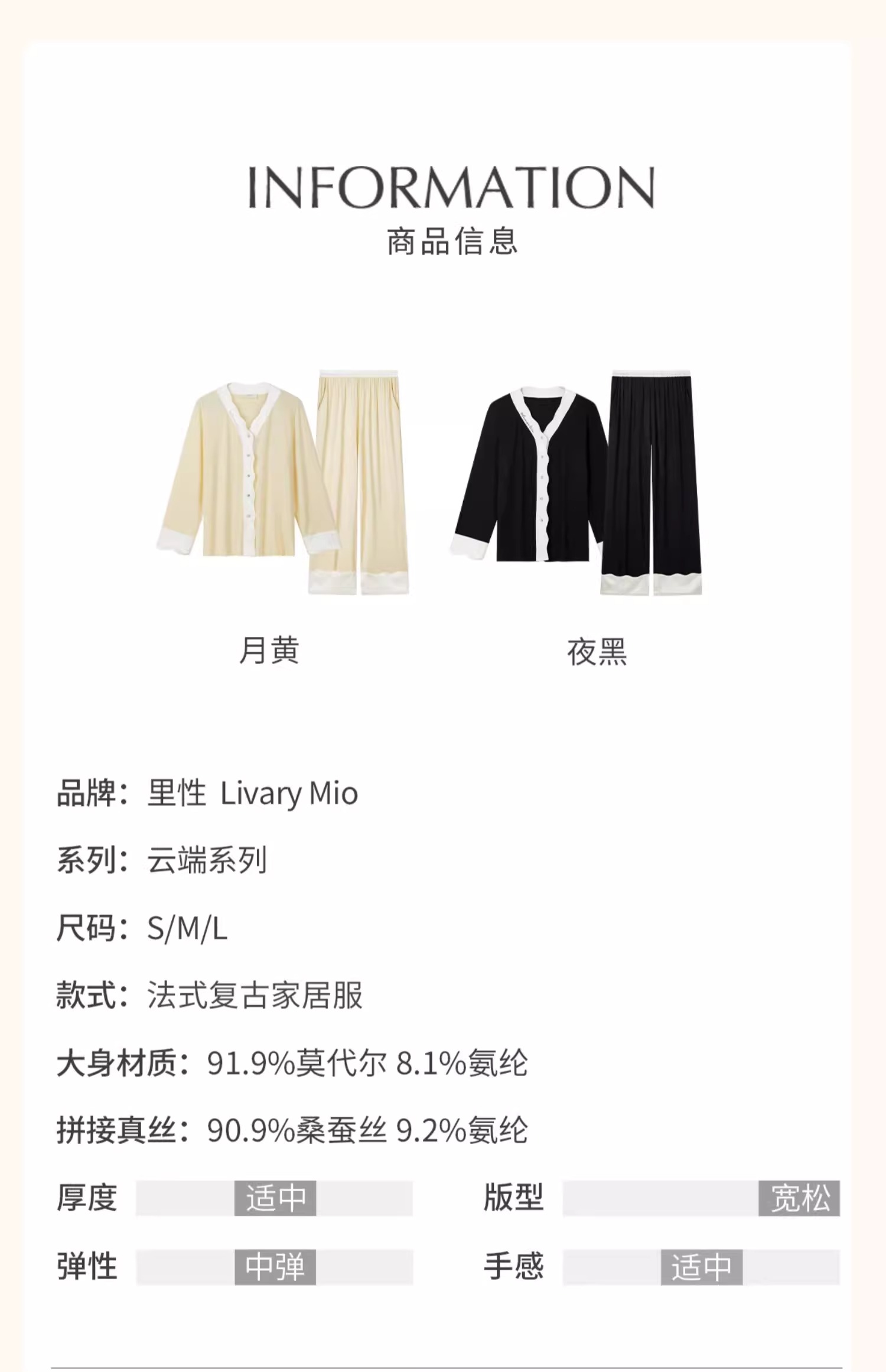 里性 LIVARY MIO 云端 新款法式复古居家服贴身舒适可外穿长袖套装