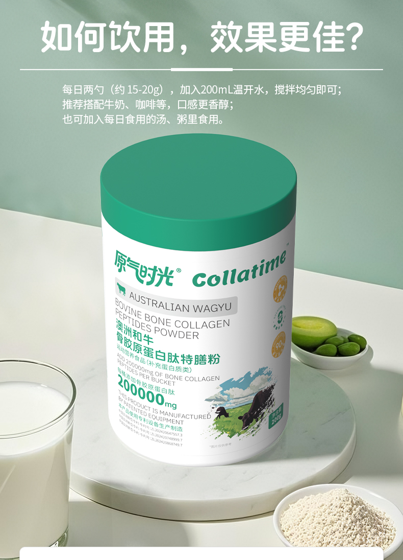 【配料表】澳洲和牛骨胶原蛋白肽(90%)、牛骨胶原蛋白肽。