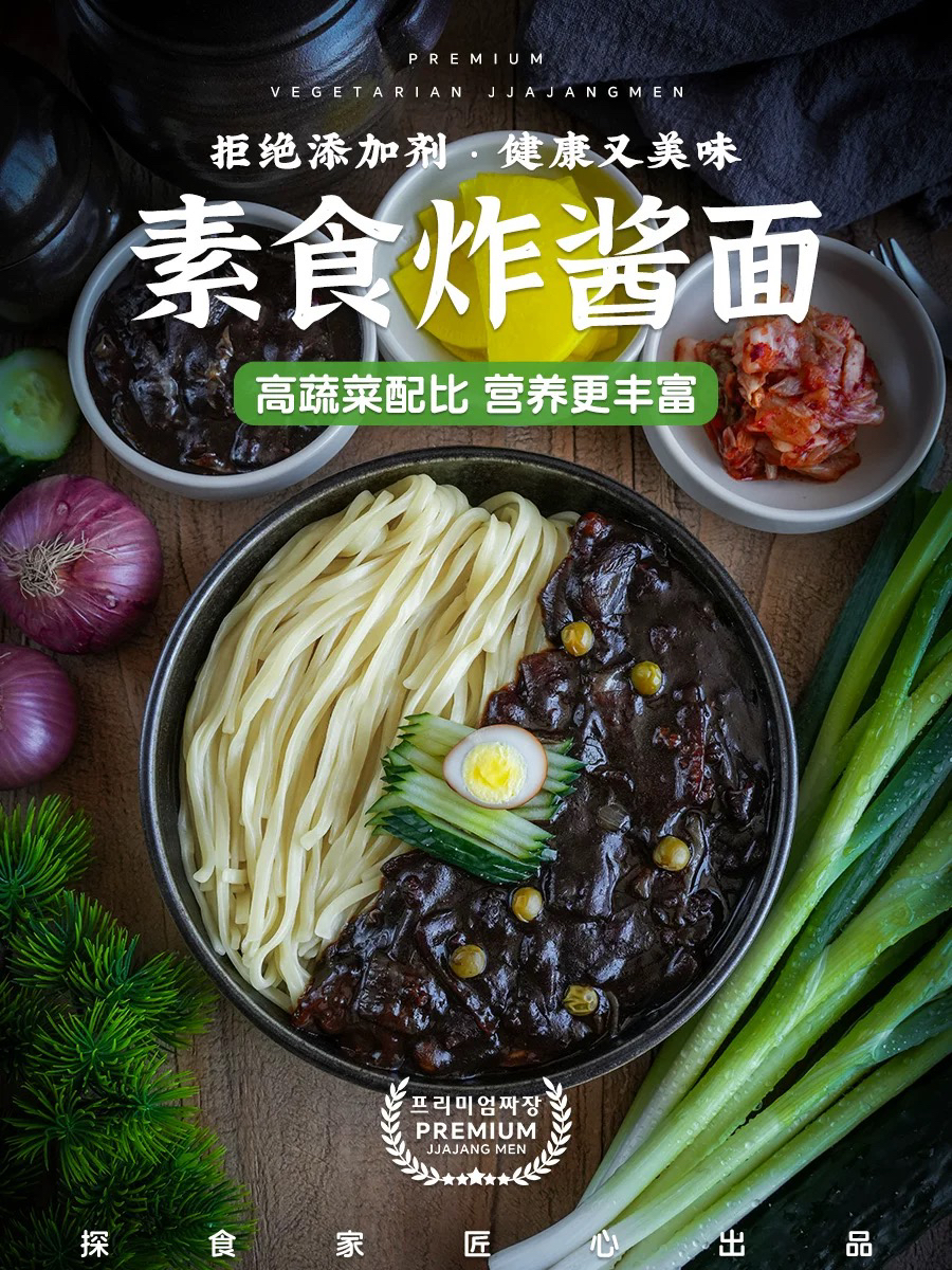 0添加0脂的素食炸酱面 素食炸酱面韩式杂酱面延边香辣拌面无添加方便速食拉面零0脂面条