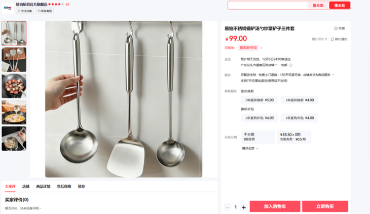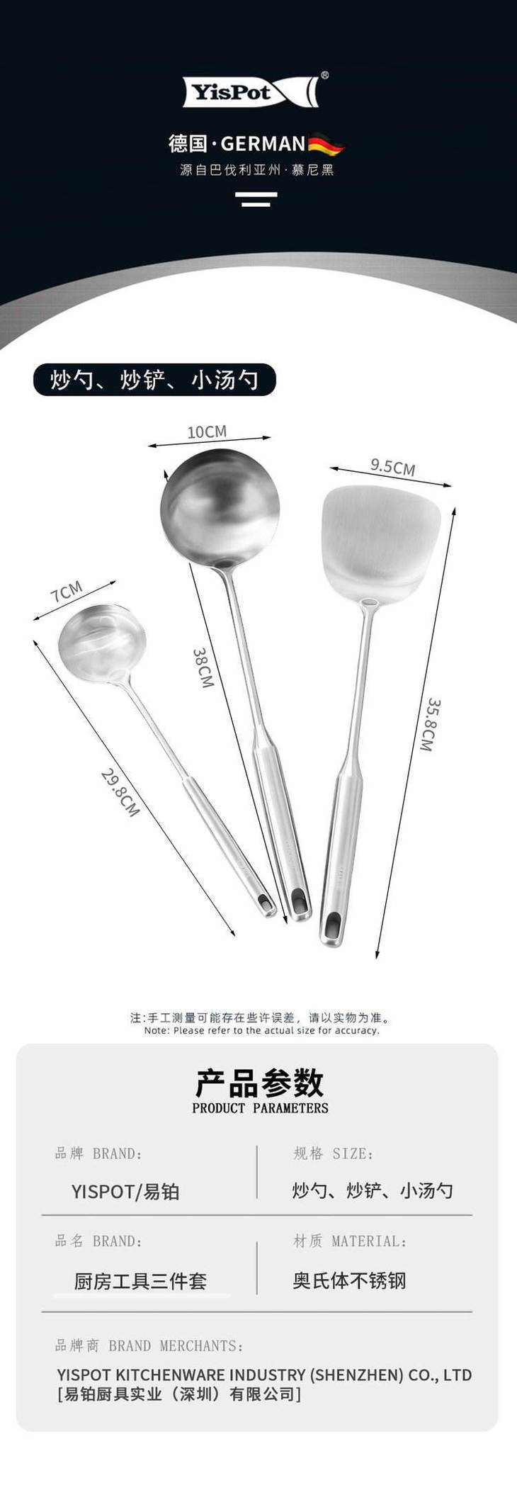 🥰【品牌直发】厨房做饭全能帮手!留这套炒勺三件套就够了👏【易铂YISPOT 不锈钢锅铲+汤勺+炒菜铲子三件套】,一套承包做饭任务✨ 官网在售💰99元,现开团价💰36.9