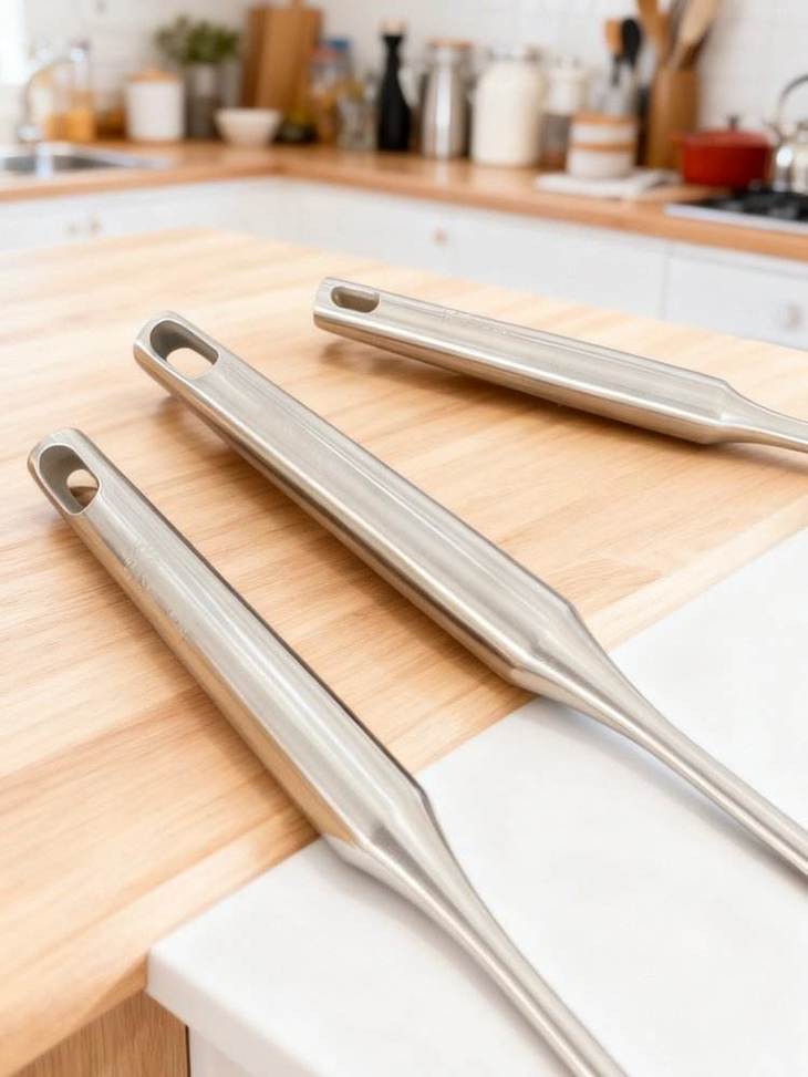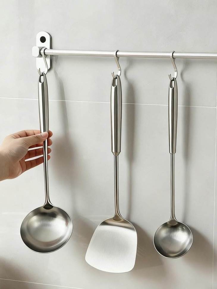 『厨具带挂孔才是真刚需!厨房瞬间空出10㎡😭』 ❌以前厨房厨具堆得像小山——炒勺、炒铲、汤勺随便扔抽屉里,不仅乱糟糟难翻找,还容易积水生锈,拿出来黏糊糊的超膈应!直到入手这套带挂孔的不锈钢三件套,才发现“末端有挂孔”居然是厨房收纳的隐藏彩蛋,实用到哭! 🔴台面整洁:直接把三件套挂在厨房墙面的挂钩上,炒勺、炒铲、小汤勺一字排开,既不占台面空间,也不用挤抽屉,做饭时伸手就能拿到,不用翻来翻去浪费时间⏳ 🔴通风晾干:直接挂起来通风,水分快速蒸发,炒铲的铲头、炒勺的勺底、小汤勺的手柄都能保持干燥,再也不会出现“越用越黏”的情况,食品级不锈钢材质搭配通风收纳,用好几年都像新的一样 🔴挂孔不硌手:挂孔不是那种粗糙的圆孔,边缘做了圆滑打磨,挂的时候不会硌手,也不会刮伤挂钩~而且挂孔大小刚好,不管是普通挂钩还是伸缩杆挂钩,都能牢牢挂住,不会滑落~