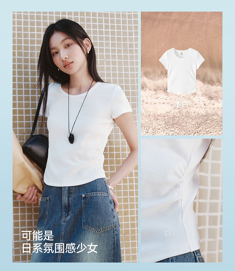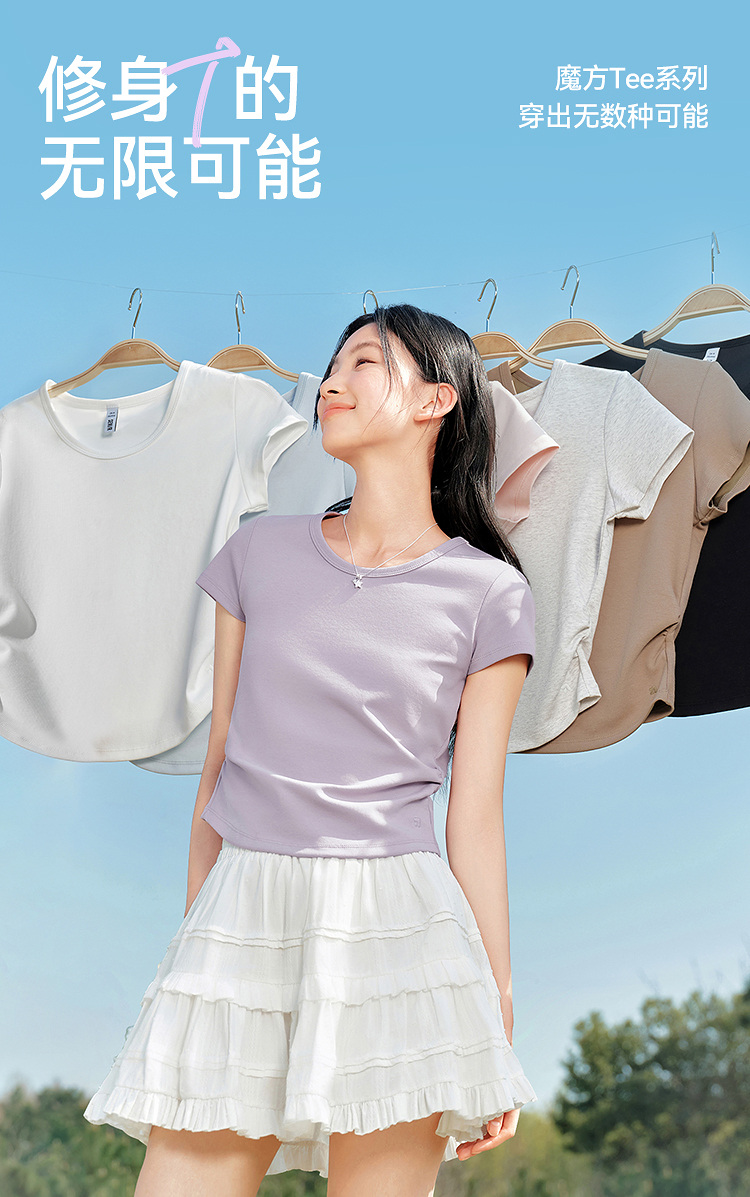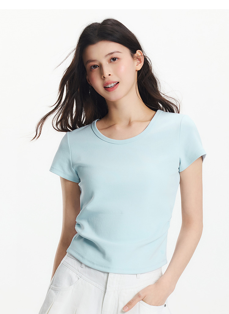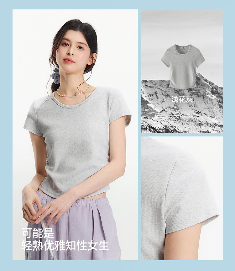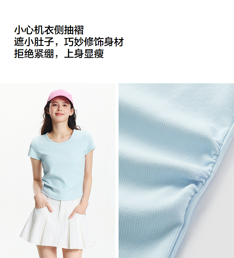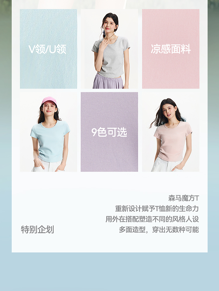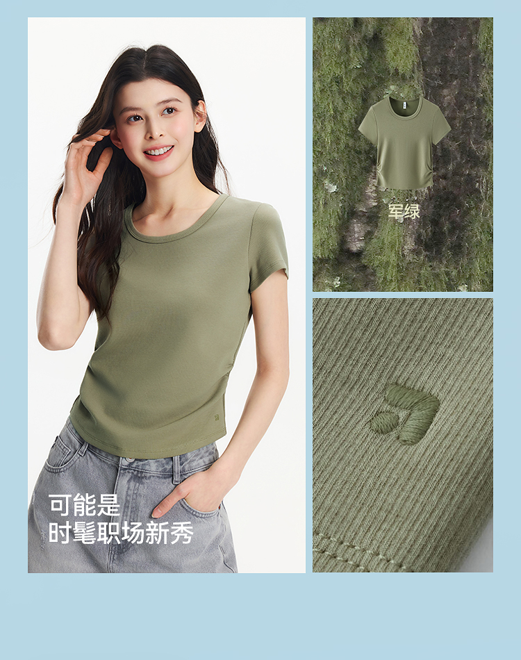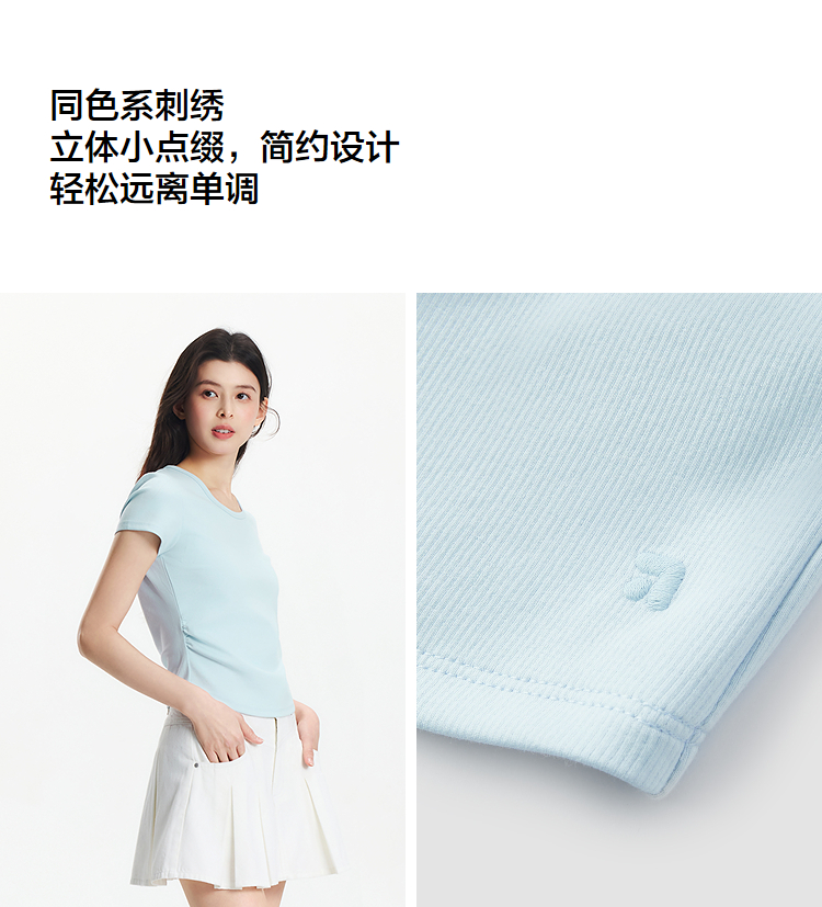 【爆品主推】凉感T|森马短袖T恤女短款修身正肩小心机2025夏新款绣花上衣百搭