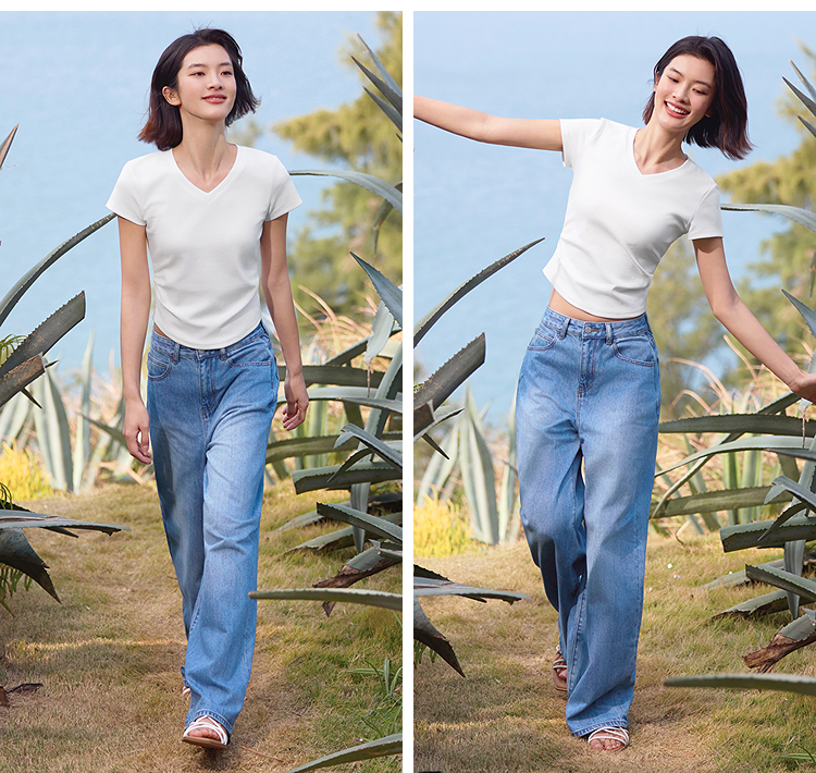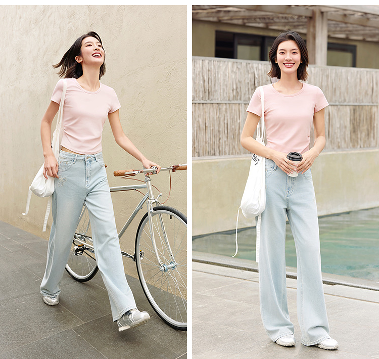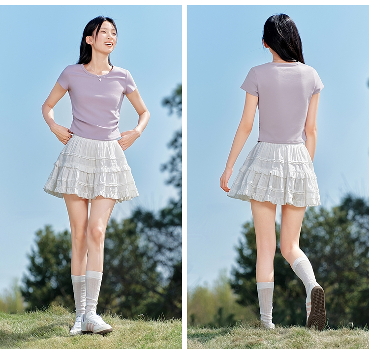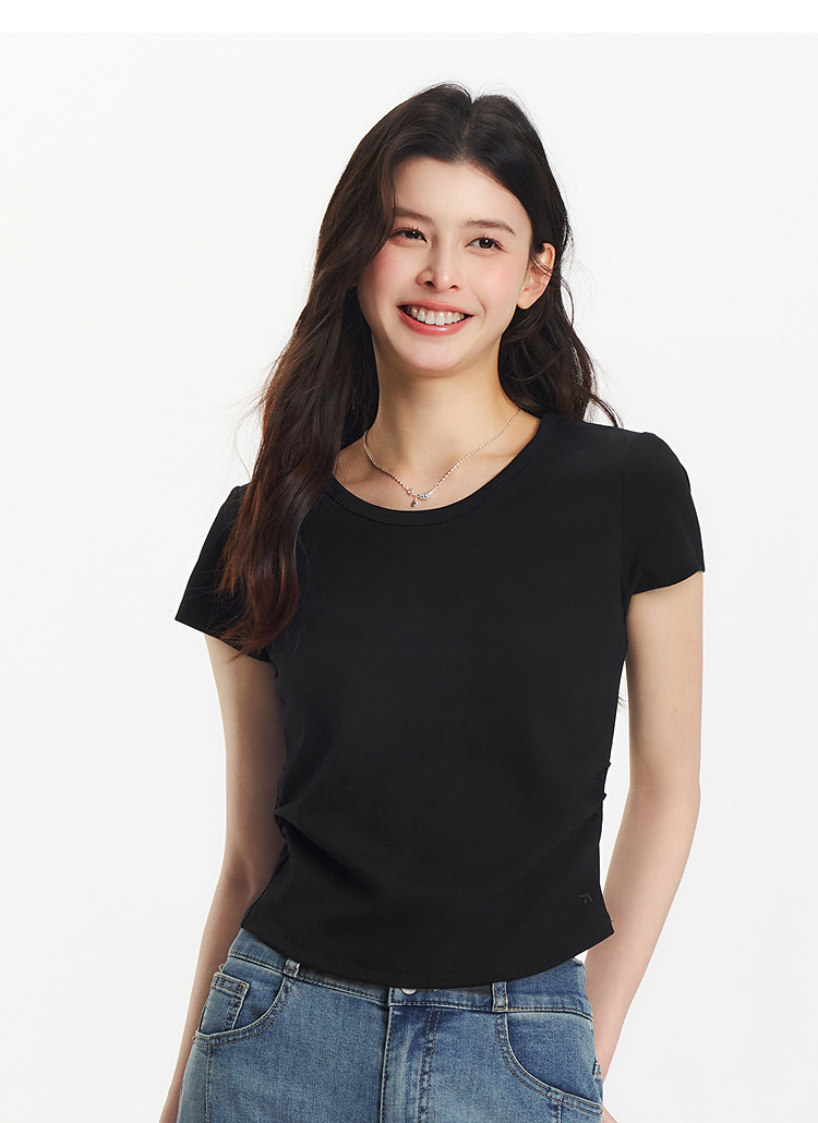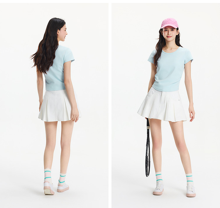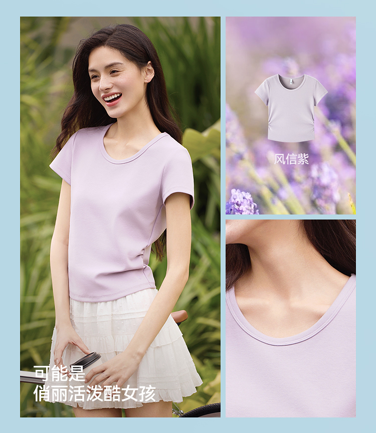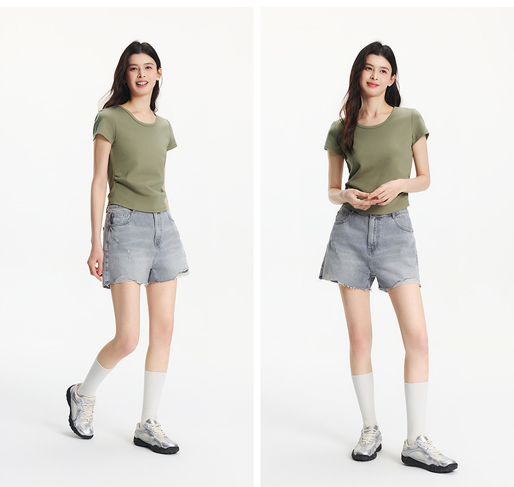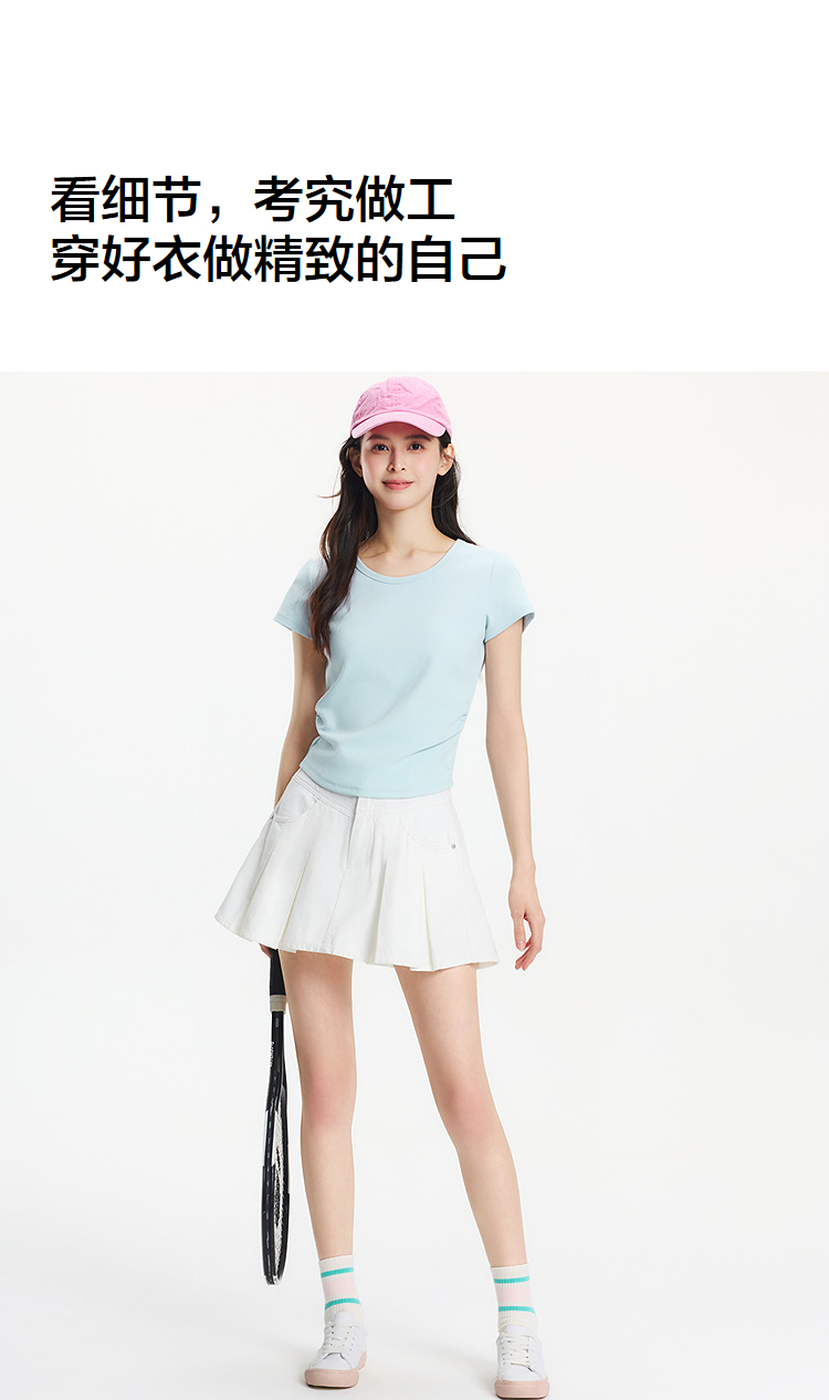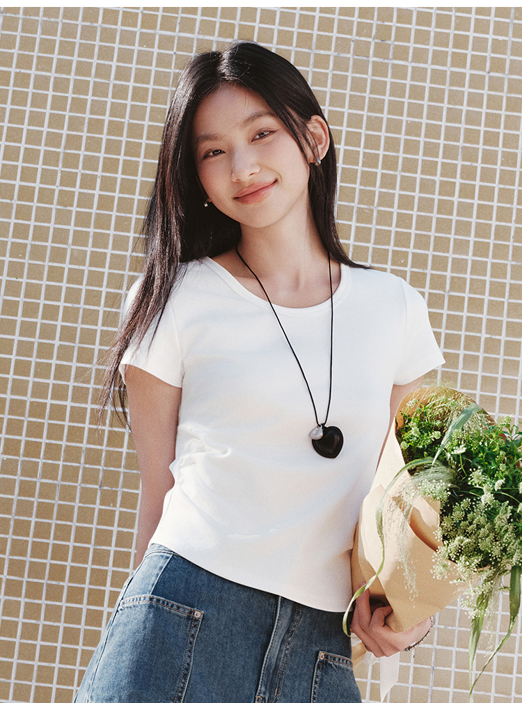 【爆品主推】凉感T|森马短袖T恤女短款修身正肩小心机2025夏新款绣花上衣百搭