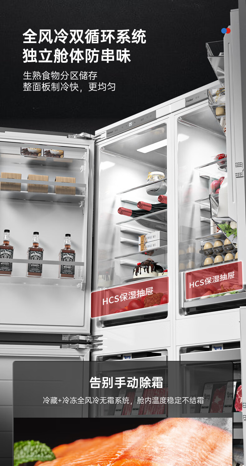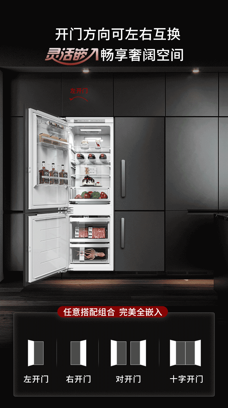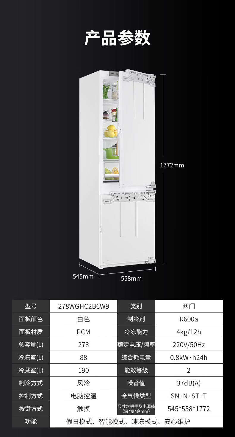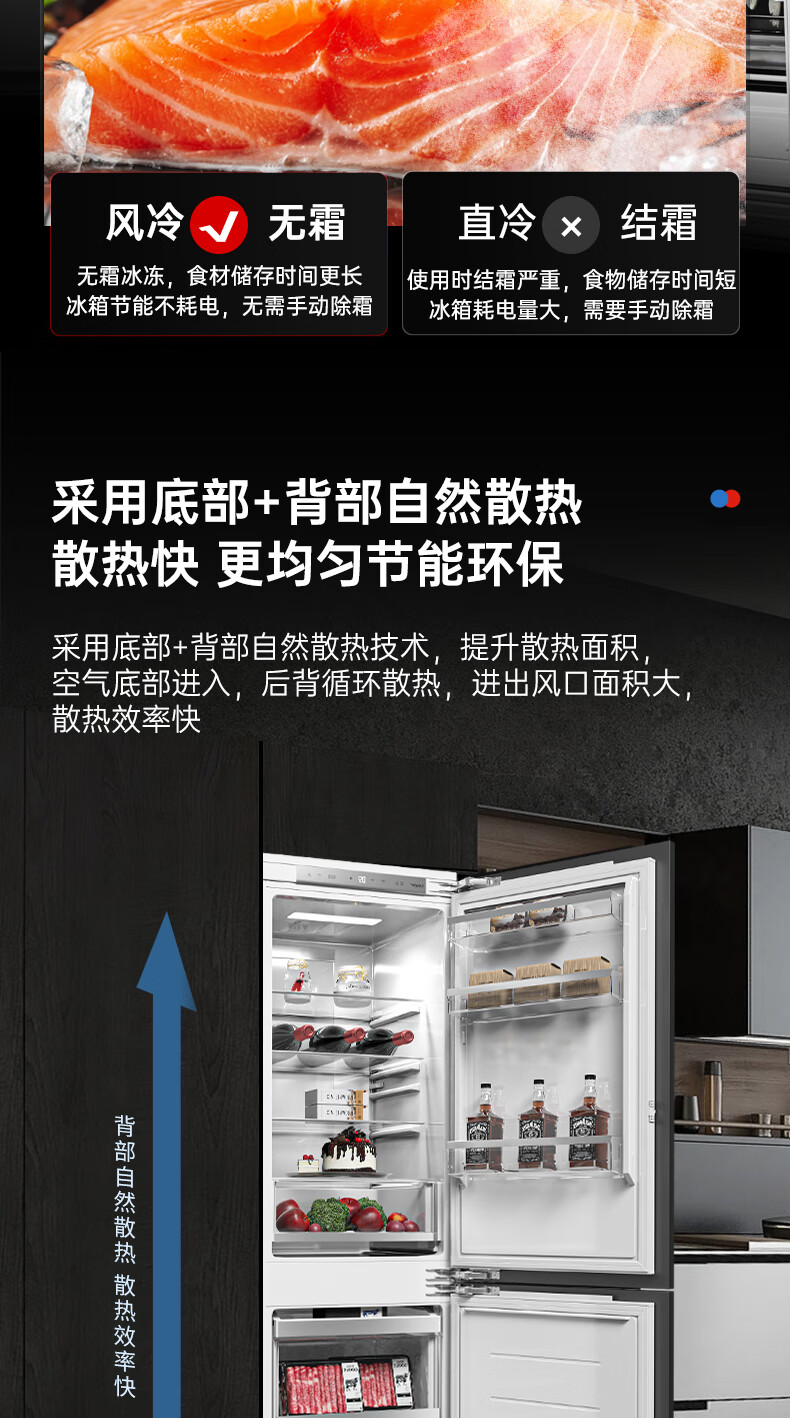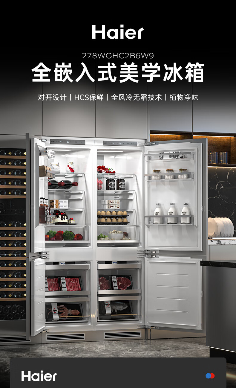 海尔全嵌入式冰箱278L隐藏式橱柜一体内嵌600mm超薄双开门
