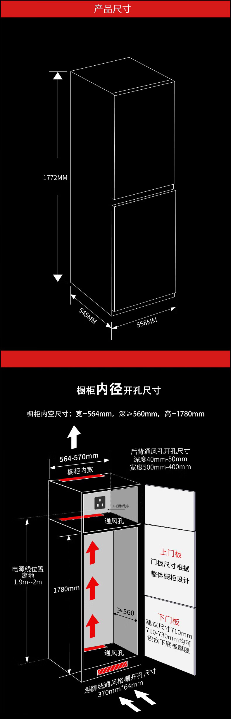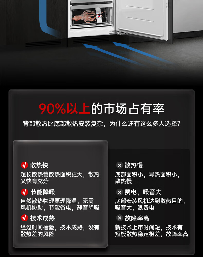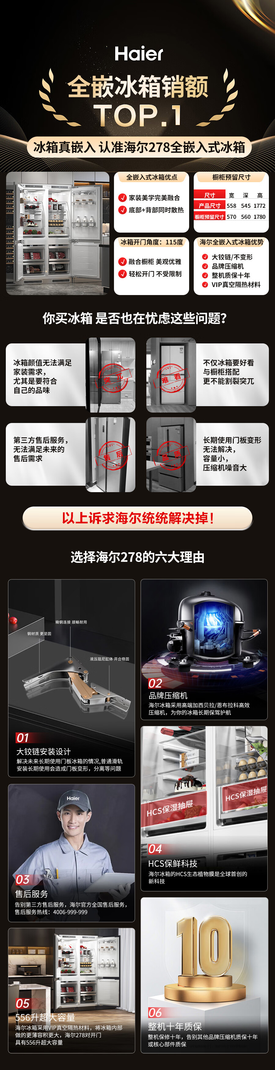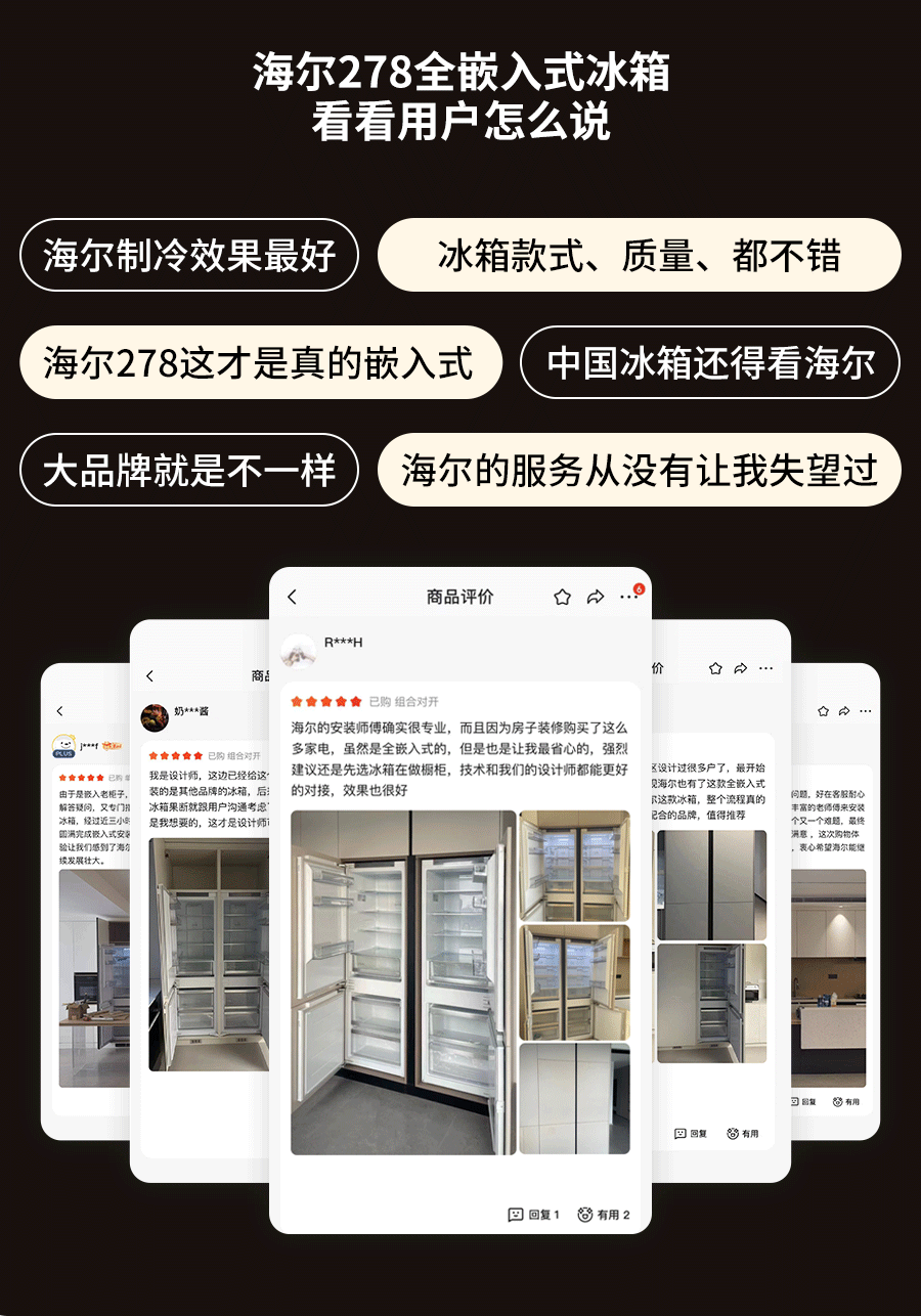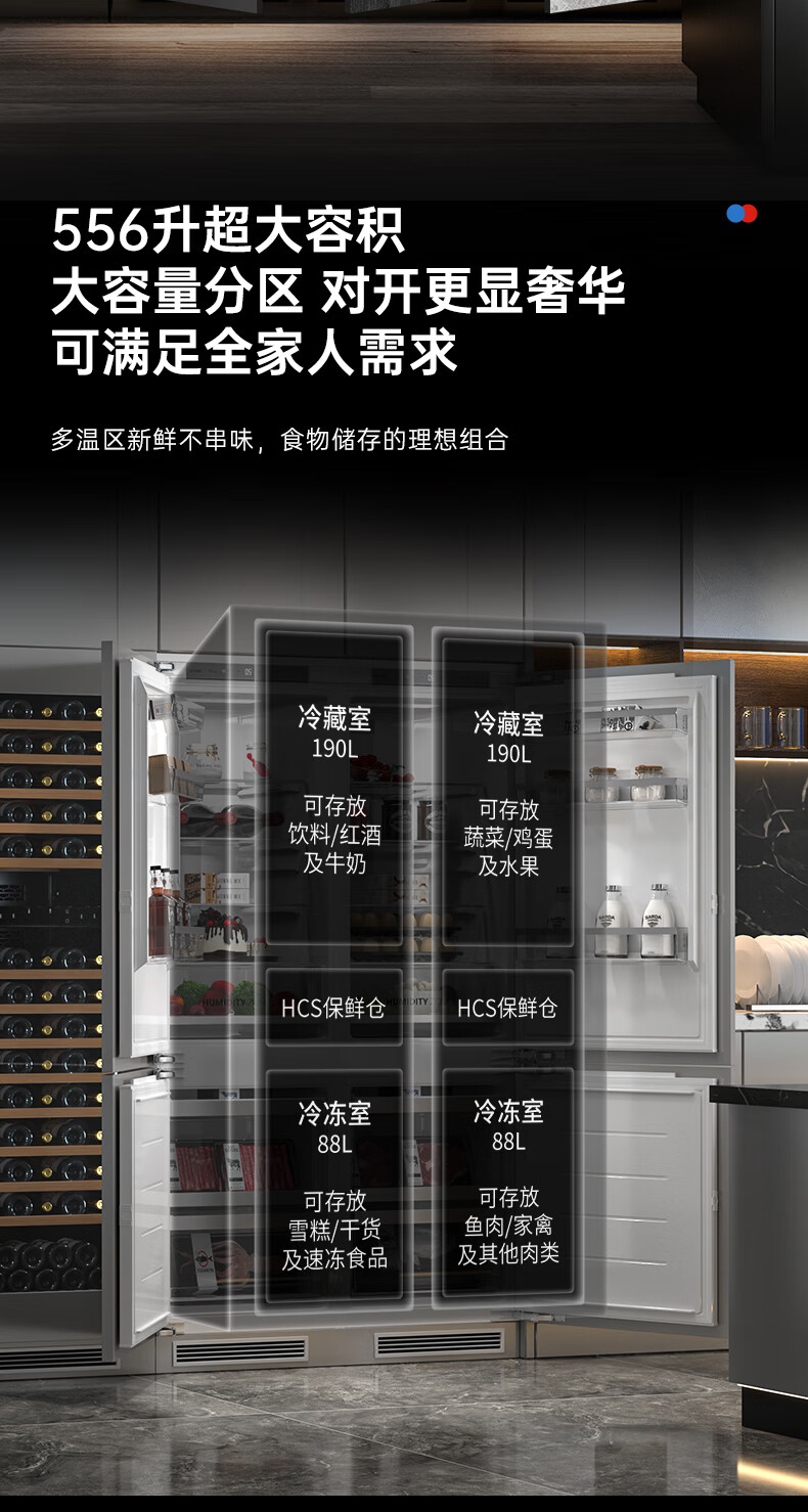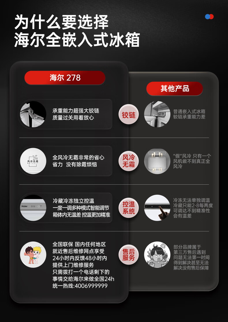 海尔全嵌入式冰箱278L隐藏式橱柜一体内嵌600mm超薄双开门