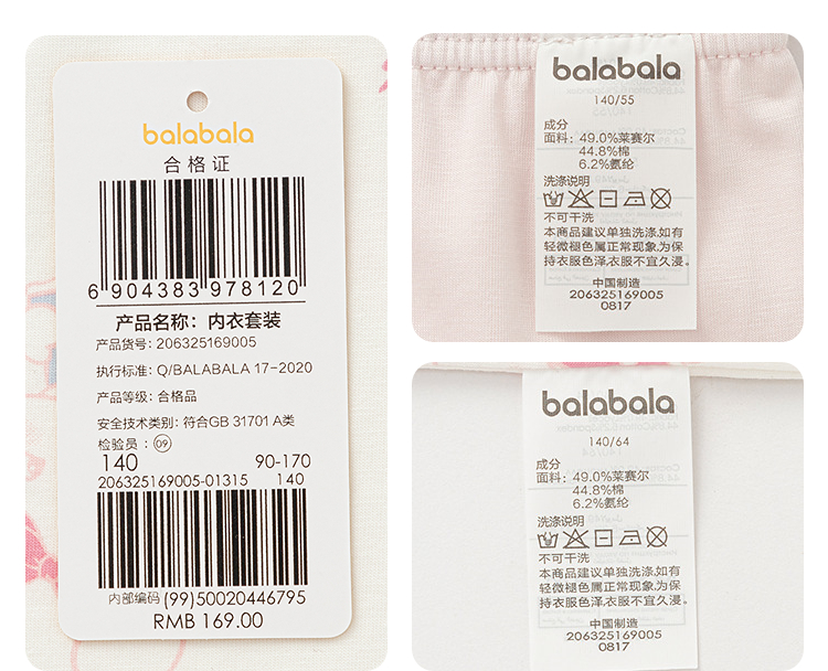 【商场同款】巴拉巴拉女童秋衣秋裤套装儿童保暖内衣秋季新品抗菌