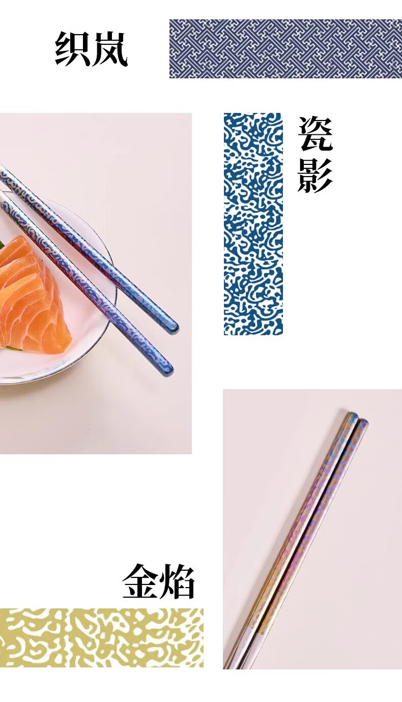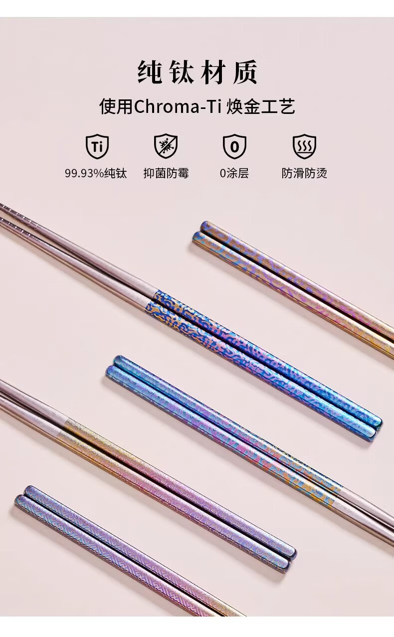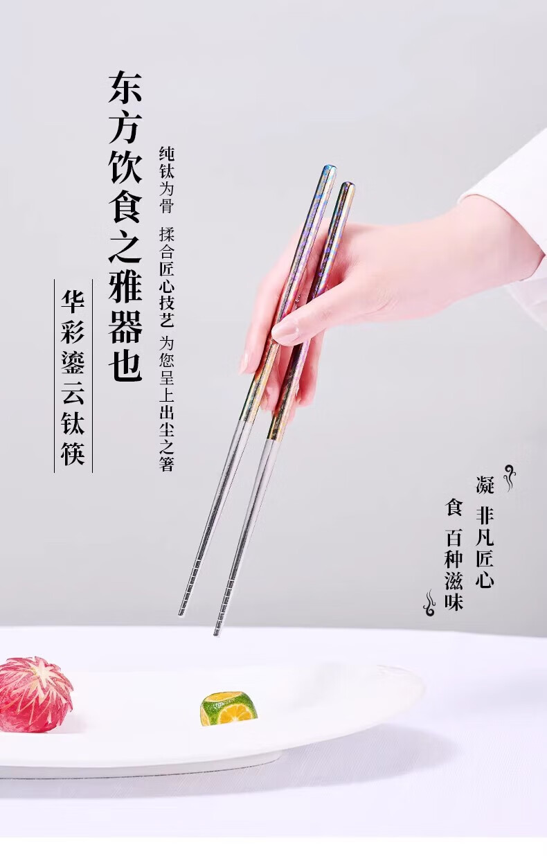 採光华彩鎏云钛筷(五双装)/盒 筷子